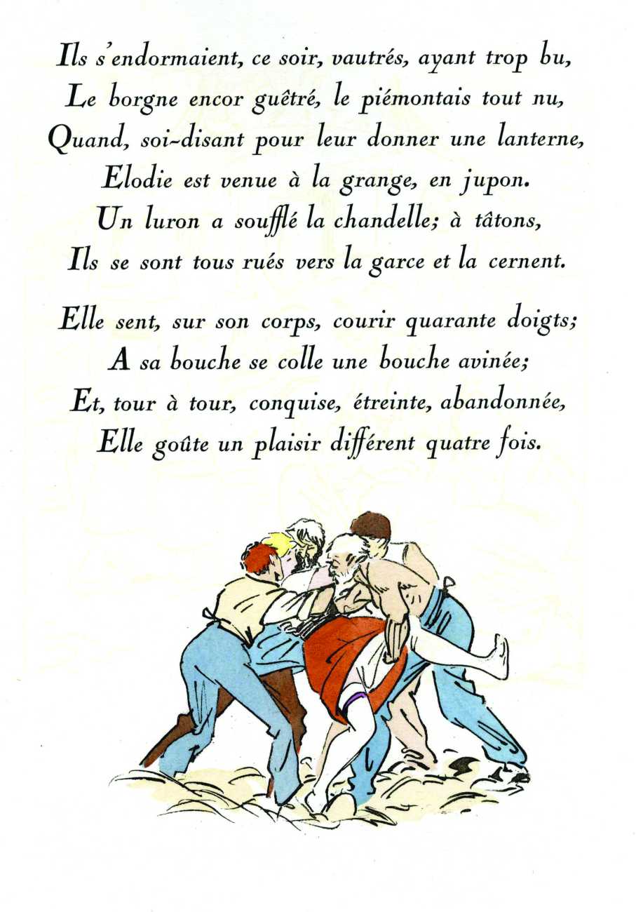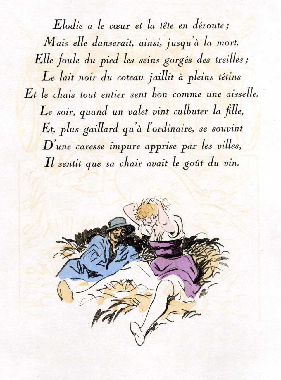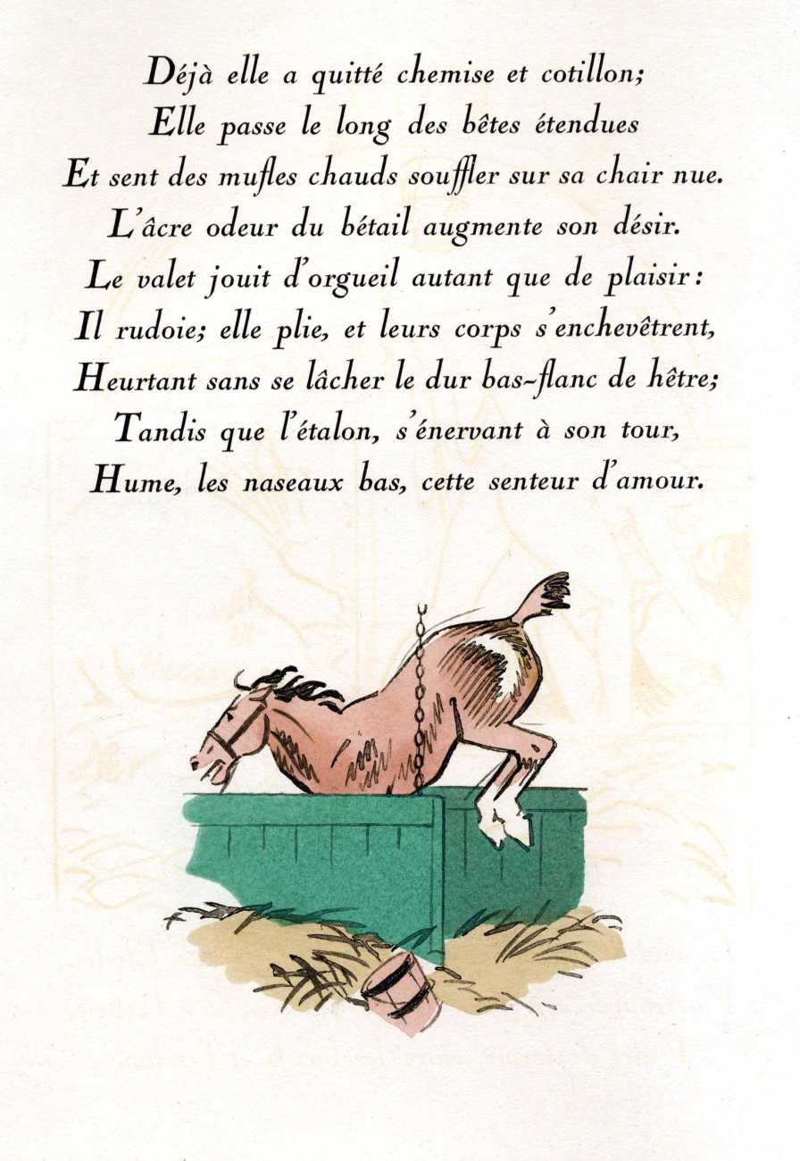 La fermière nu (The Naked Farmgirl) is the only known poetry collection by Louis-Charles Royer (1885–1970), a Parisian writer who specialised in popular erotic literature with titles like Love Camp, La maîtresse noire, Unrepentant Sinners, L’amour en Allemagne, The Redhead from Chicago, The Harem, La danseuse de Singapour, African Mistress, and L’amour chez les Soviets. On average he churned out one or two a year, from 1928 to the early 1960s, and some were regularly reprinted in both French and English.