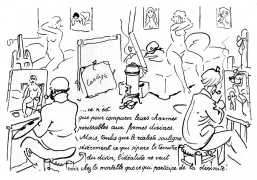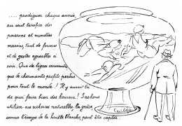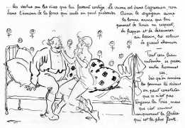 Leafing through this album, I thought of the things an excellent writer might write for a Paris newspaper, the alert qualities that current events demand: a lively, witty verve, a dense truth, cruel criticism, all written with a barely restrained pen topped with a sparkling froth of wit. But the truth is that these drawings are, in their own way, a lively Parisian chronicle. They are pleasant and light, as life should be.