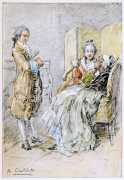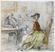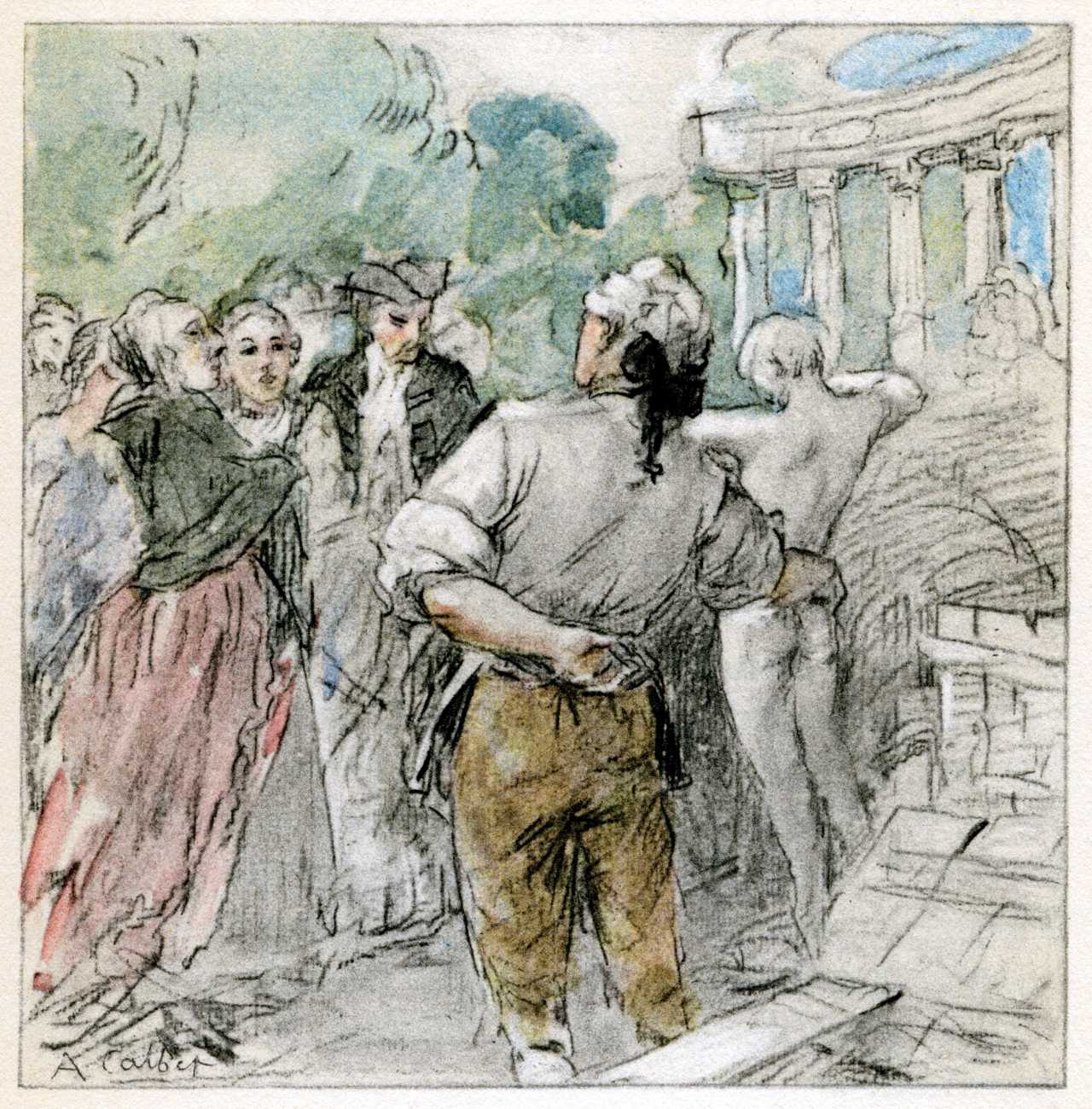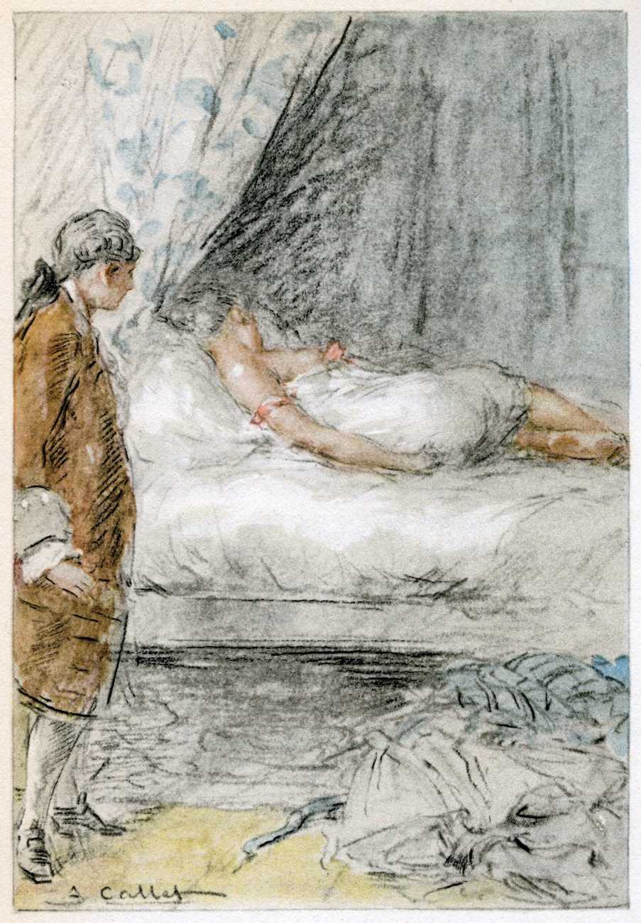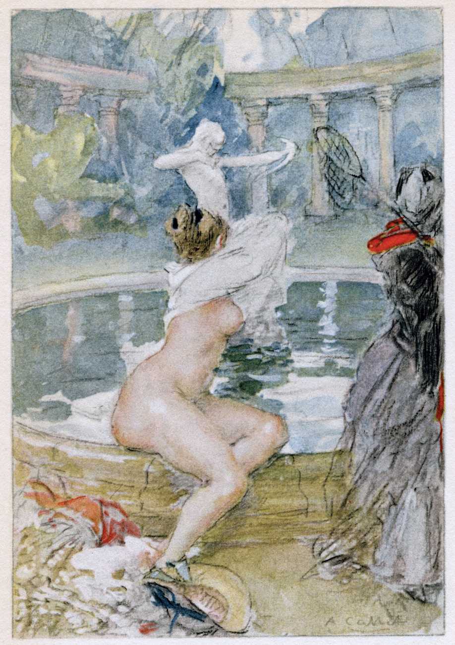 As the years go by, Ninon gives birth to a little girl, Jacquette. It is agreed that the child should be kept away from the shameless spectacle of the statue, so Cupid and the pool are hidden in the heart of a labyrinth. These precautions, however, prove insufficient, so Jacquette’s godmother and housekeeper set about emasculating the statue. Meanwhile Ninon succumbs to the charms of Monsieur de Châteaubedeau, barely out of childhood, to the great despair of the Chevalier Dieutegard, who is secretly in love with Ninon. Dieutegard flees the castle and takes refuge in the hovel of a former gardener who also worships the Marquise. Both come secretly to maintain the labyrinth, the basin and the statue. Much heartbreak and a sudden death punctuate the narrative, but the novel ends with Jacquette’s godfather, the Baron de Chemillé, taking the opportunity to explain what she should know about the role and expression of love in all its forms.