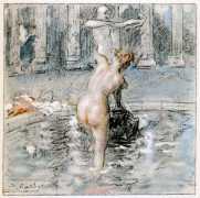 The author of La leçon d’amour dans un parc (Love Lesson in a Park), René Boylesve (1867–1926), thought it was the best and most serious of his dozen novels, the saucy tale actually concealing a philosophical study, ‘combining the earthiness of Rabelais and the analytical mind of Voltaire’. Unfortunately La leçon d’amour has never been translated into English, but there is an online French text at the Gutenberg Project, which you can find here.