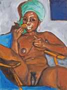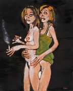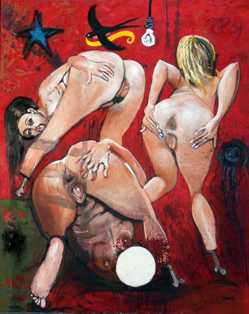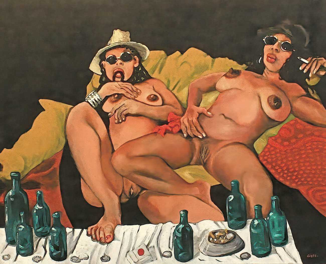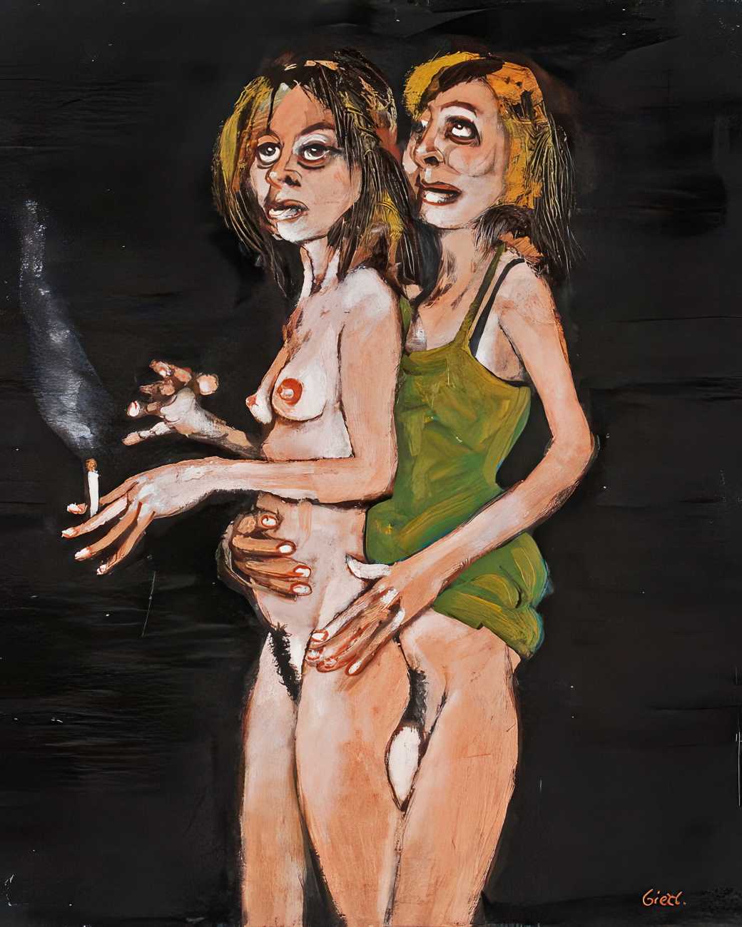 There is no doubting that Karl Gietl loves women, ideally naked women with their legs apart, displaying artistic vulvas and pubic hair. And it also seems that the women in his paintings are pretty comfortable displaying what they have to offer in these colourful canvases.