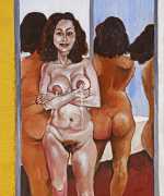 And no prizes for recognising the artist being undressed by three female companions in the last of this collection, titled Paris by Night (2013).