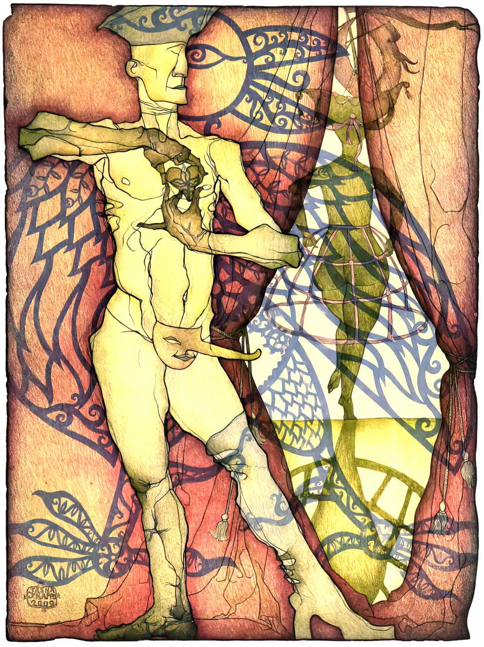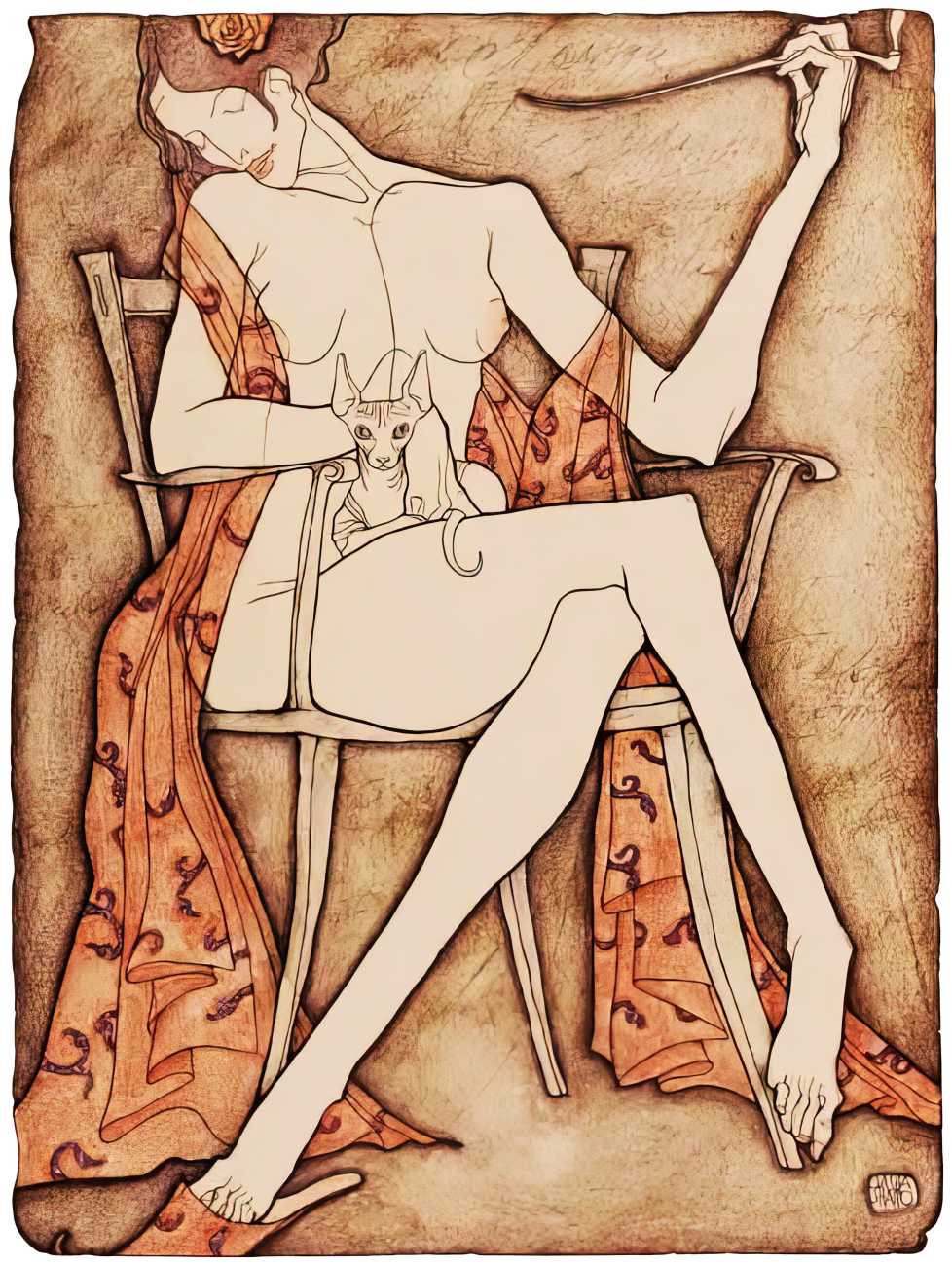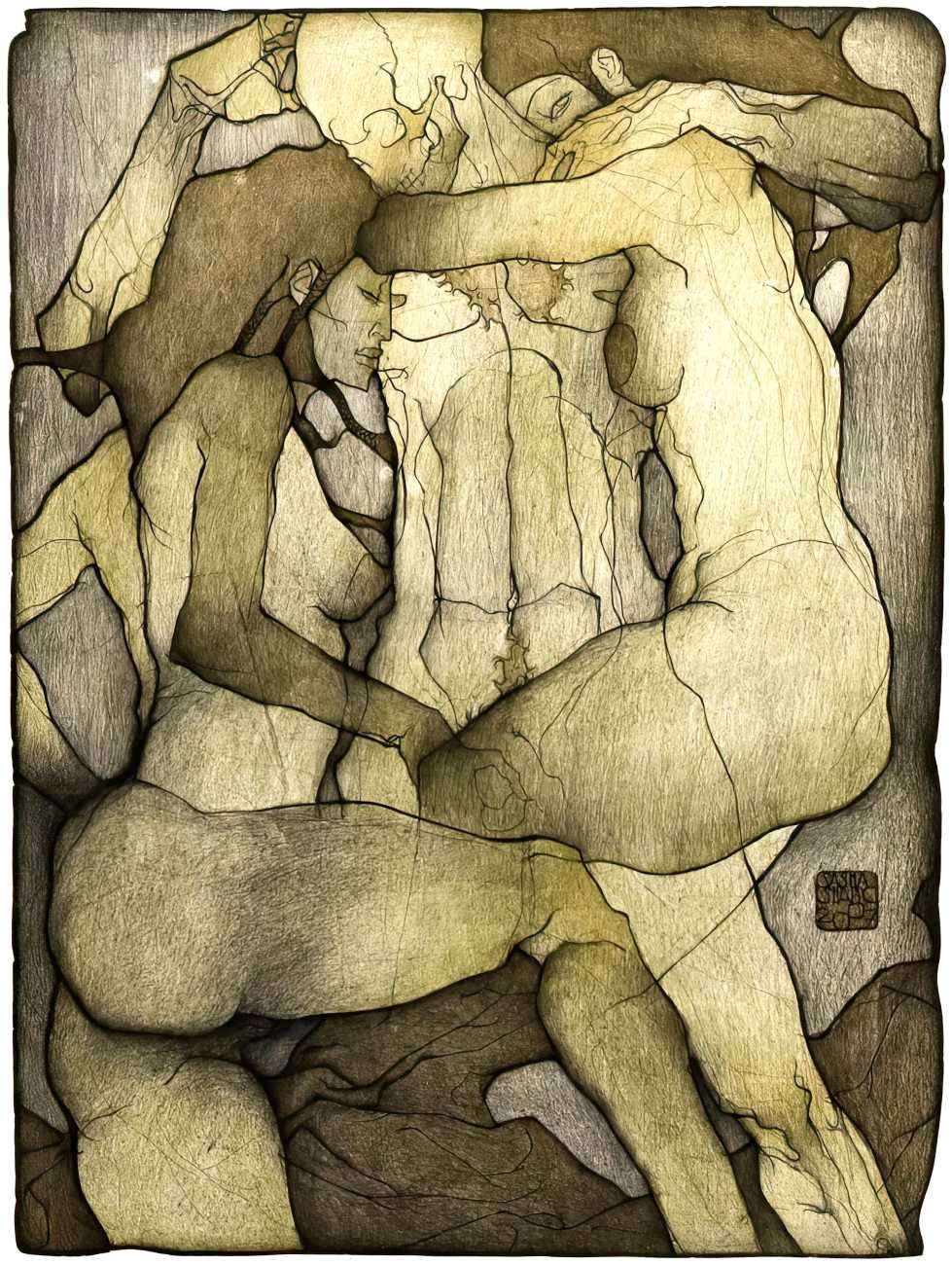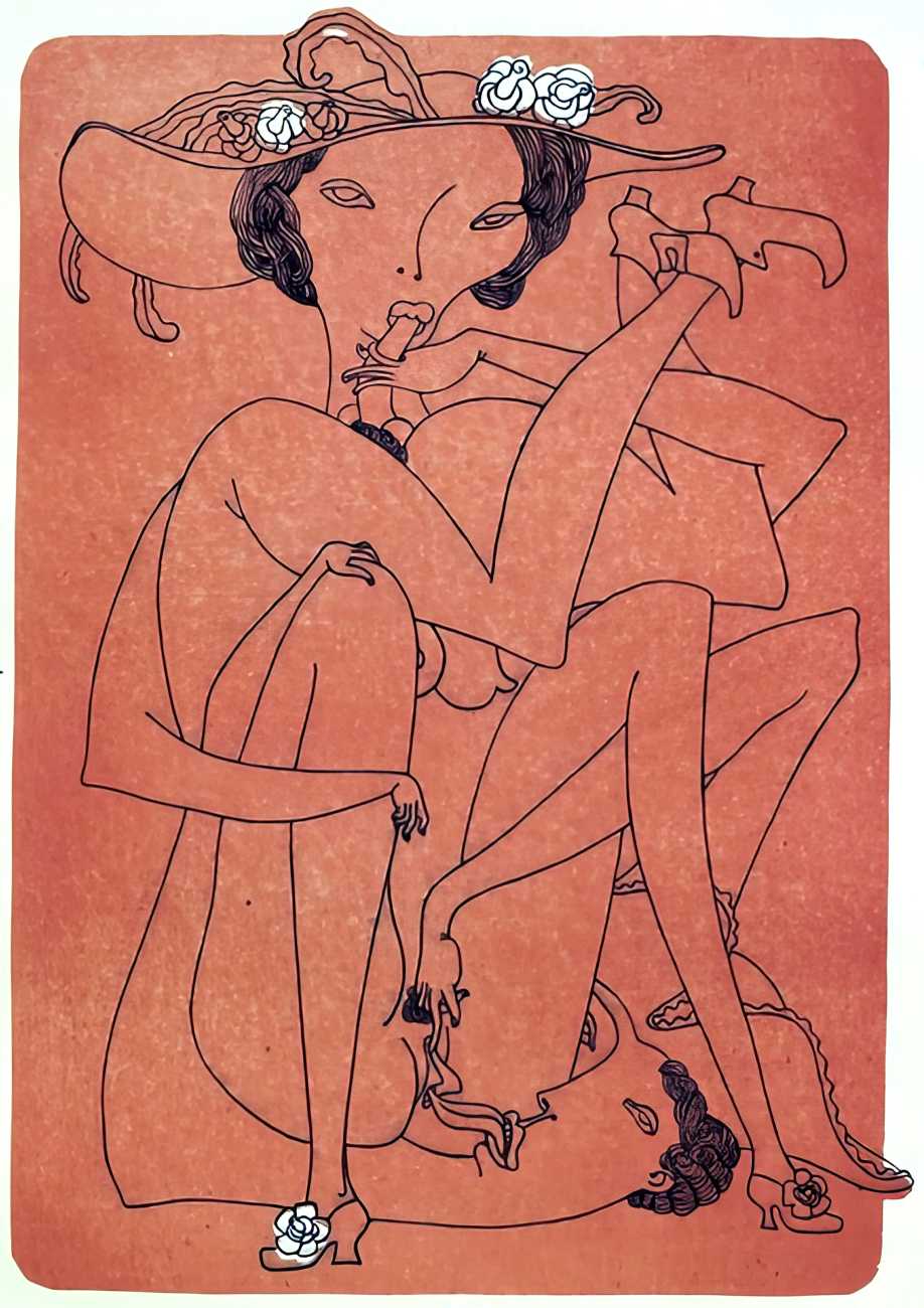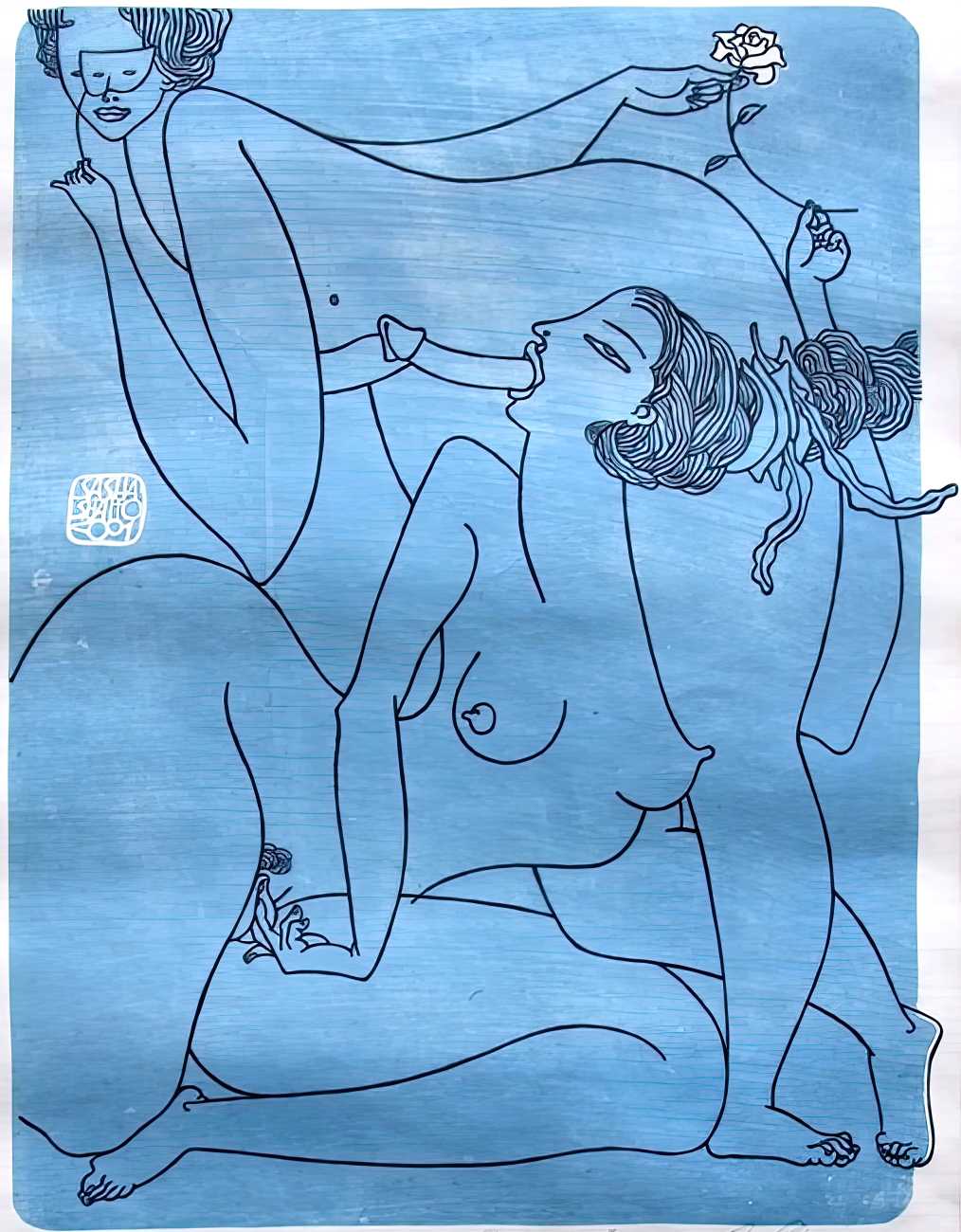 In 2006 Alexander Shappo held a personal exhibition titled Ecce Femina at the Museum of Modern Fine Art in Minsk, Belarus, which gives us the title for this portfolio. Consisting almost entirely of colour lithographs, he is clearly engrossed in the exploration of the naked human form, and often in explicitly sexual engagement.