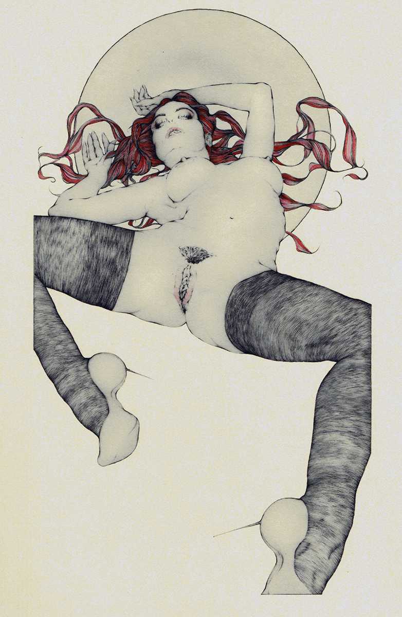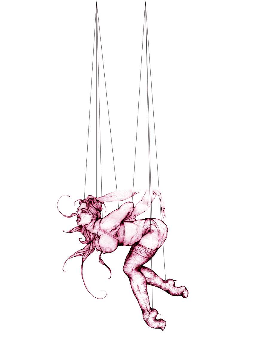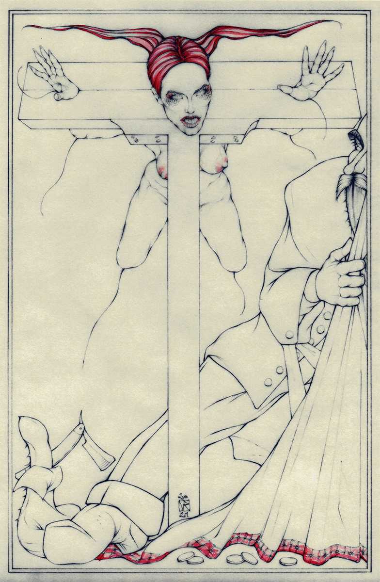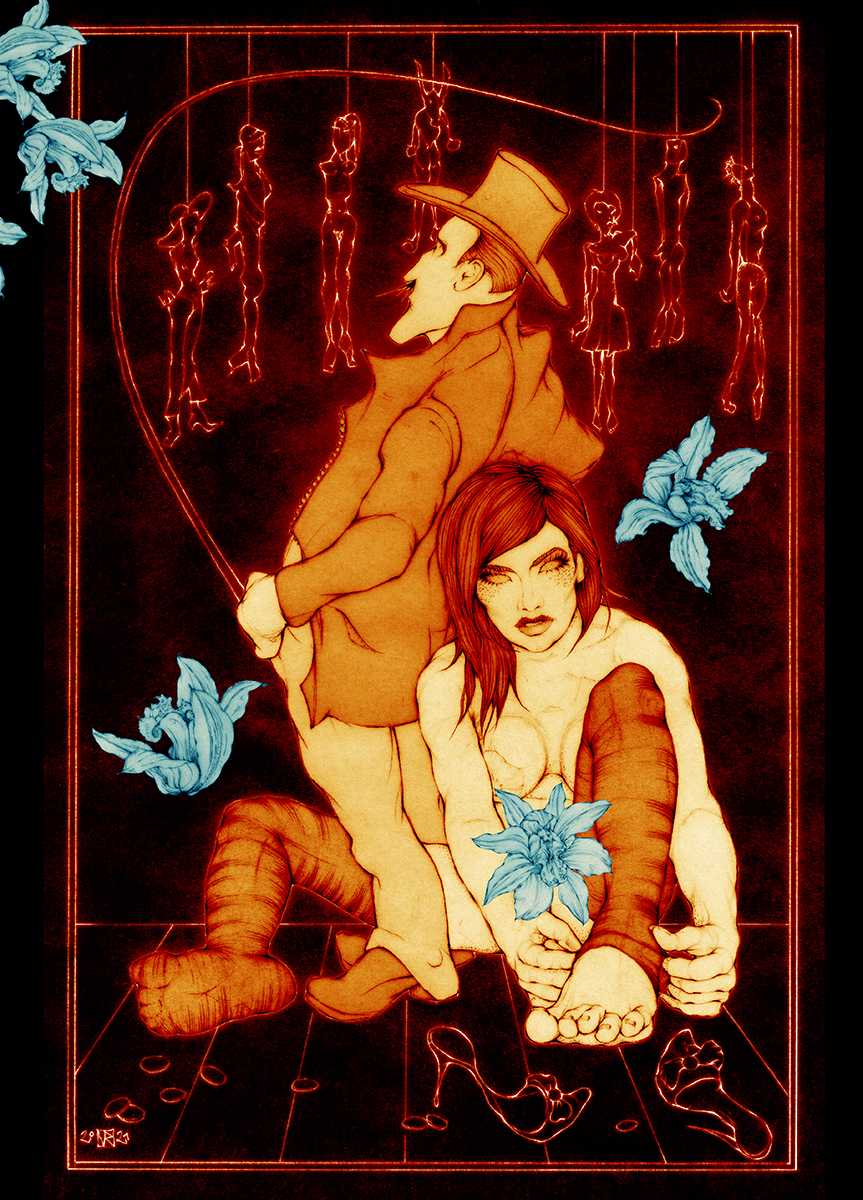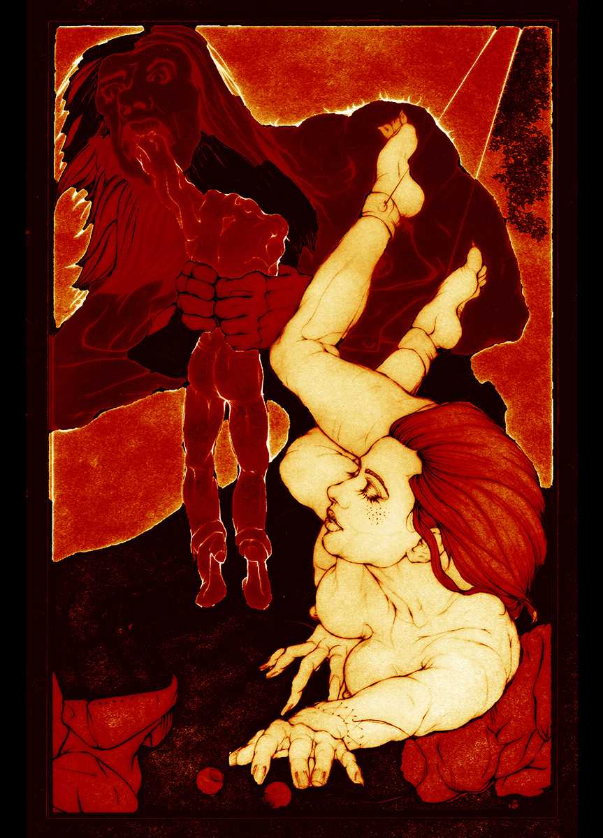 Thus for this reincarnation of Querida a new approach was agreed. Carlos alone would spell out the story of the sufferings and self-empowerment of the female puppet, ironing out the creases and unifying the narrator’s voice. The result is a perfectly balanced piece of work, a marriage of fantastic literature and eroticism. To match the new text, Jan van Rijn produced a new set of illustrations, based on the earlier version but introducing much more colour and variety.