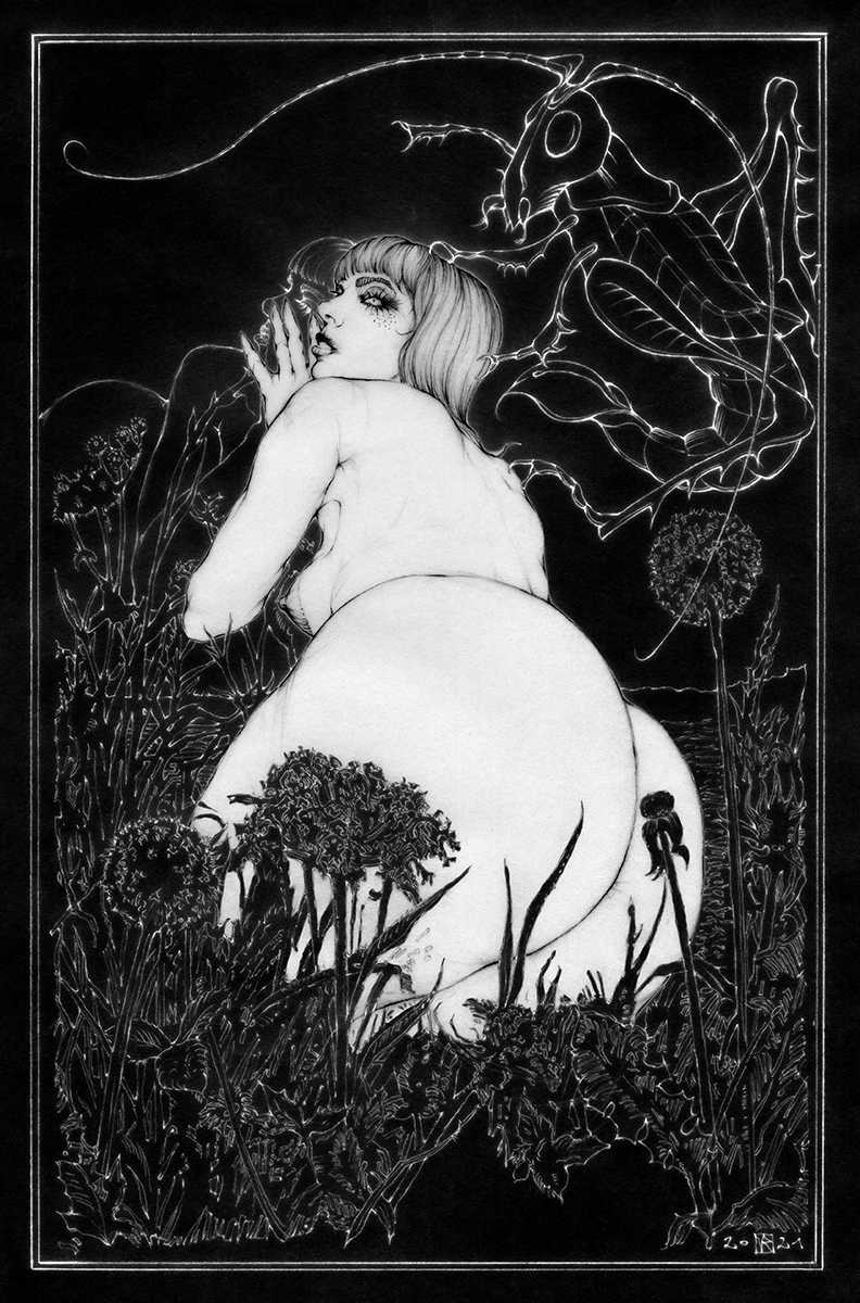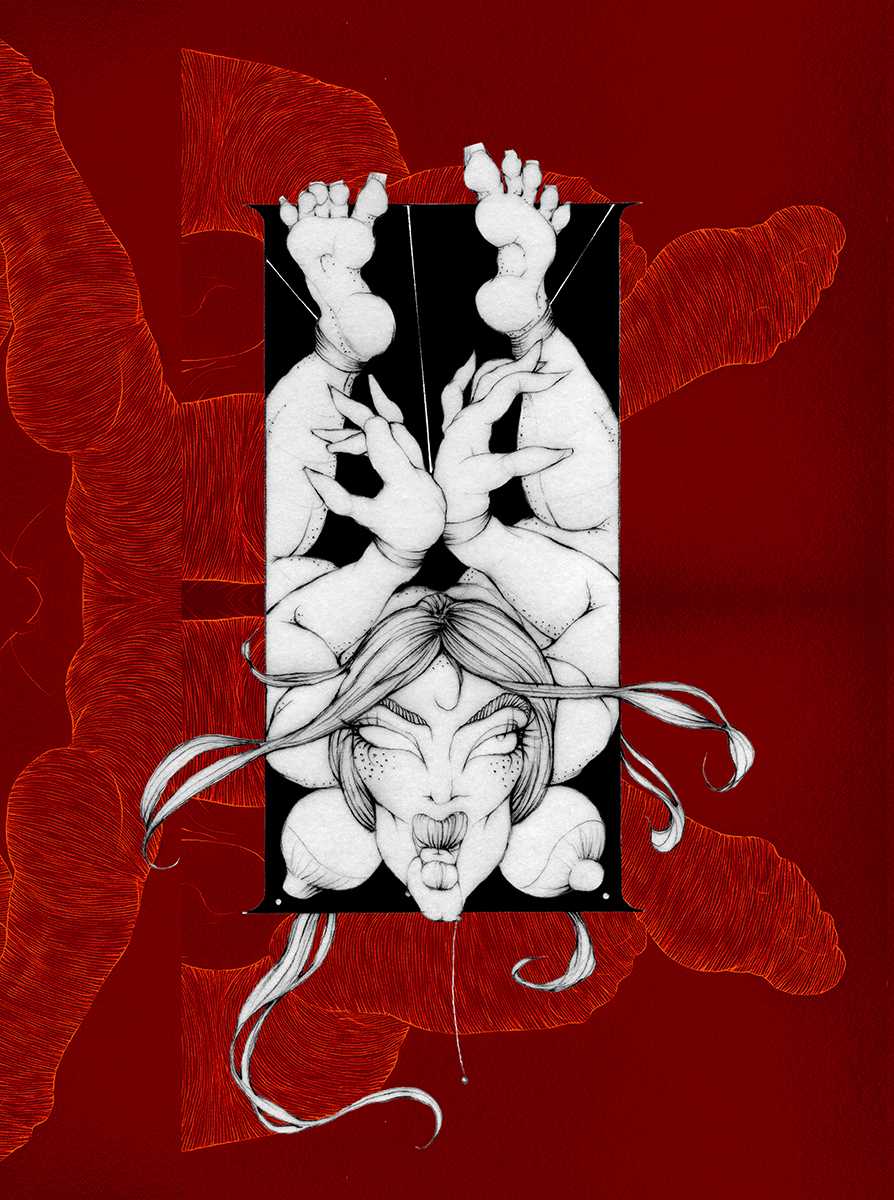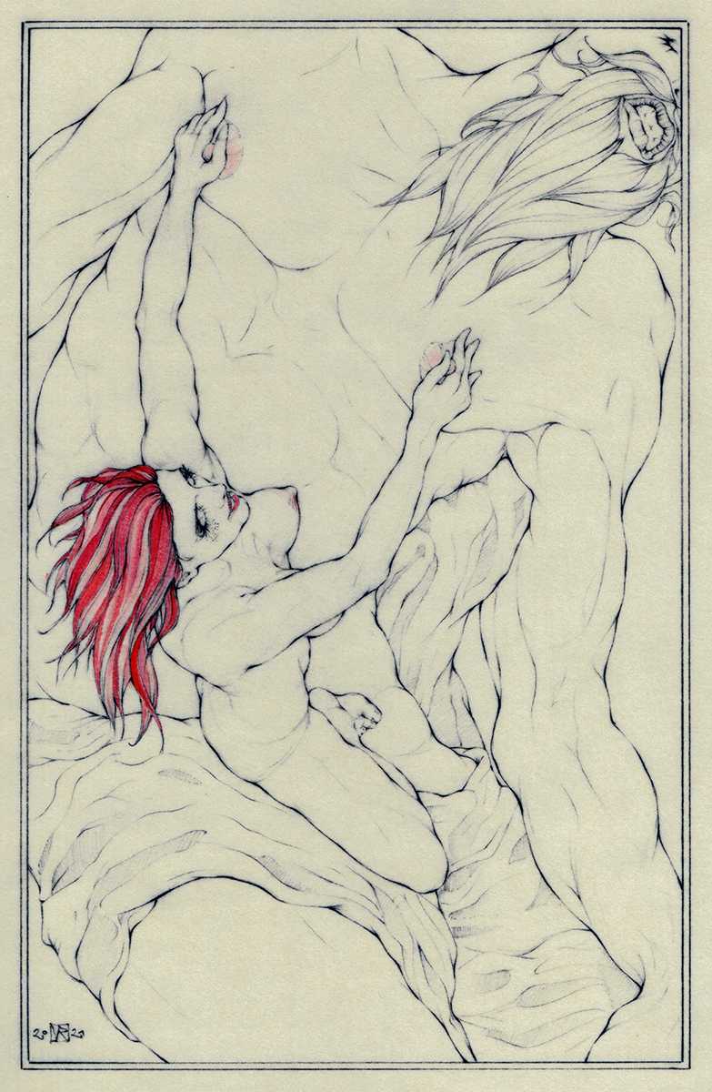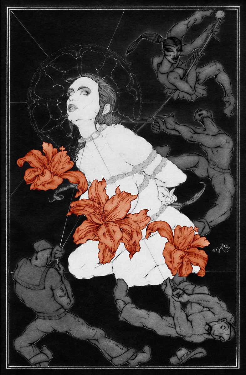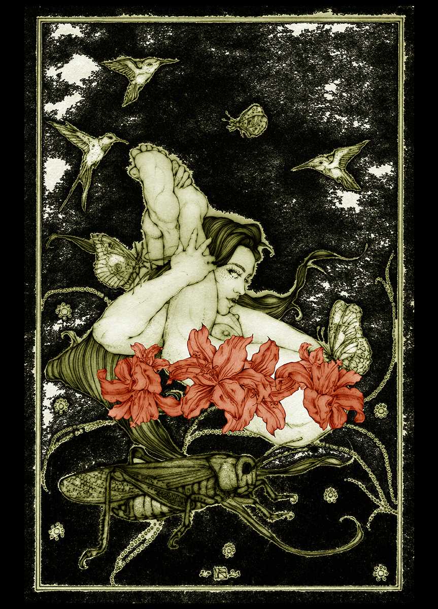 Thus for this reincarnation of Querida a new approach was agreed. Carlos alone would spell out the story of the sufferings and self-empowerment of the female puppet, ironing out the creases and unifying the narrator’s voice. The result is a perfectly balanced piece of work, a marriage of fantastic literature and eroticism. To match the new text, Jan van Rijn produced a new set of illustrations, based on the earlier version but introducing much more colour and variety.