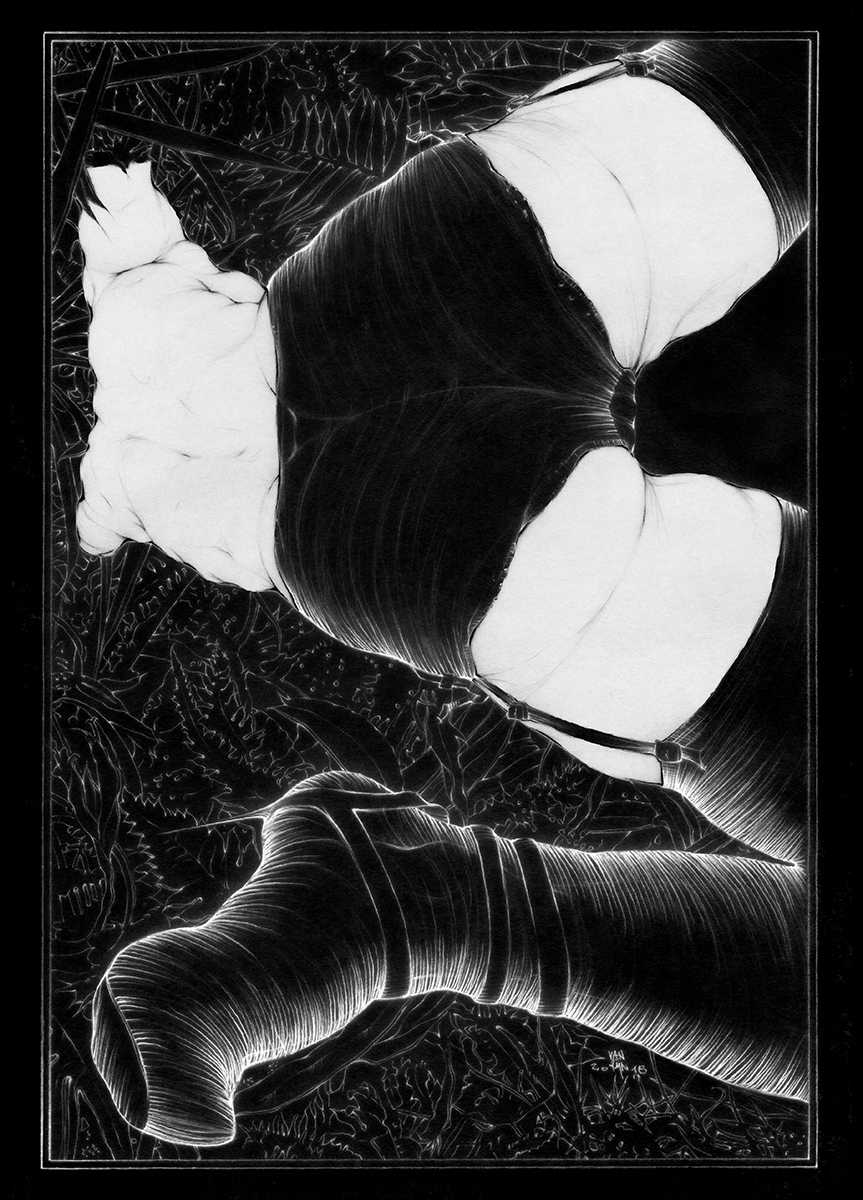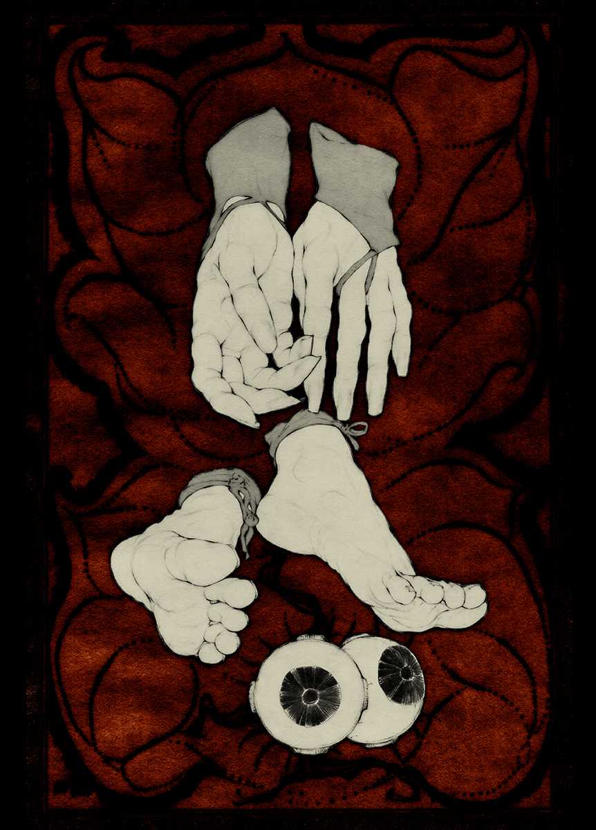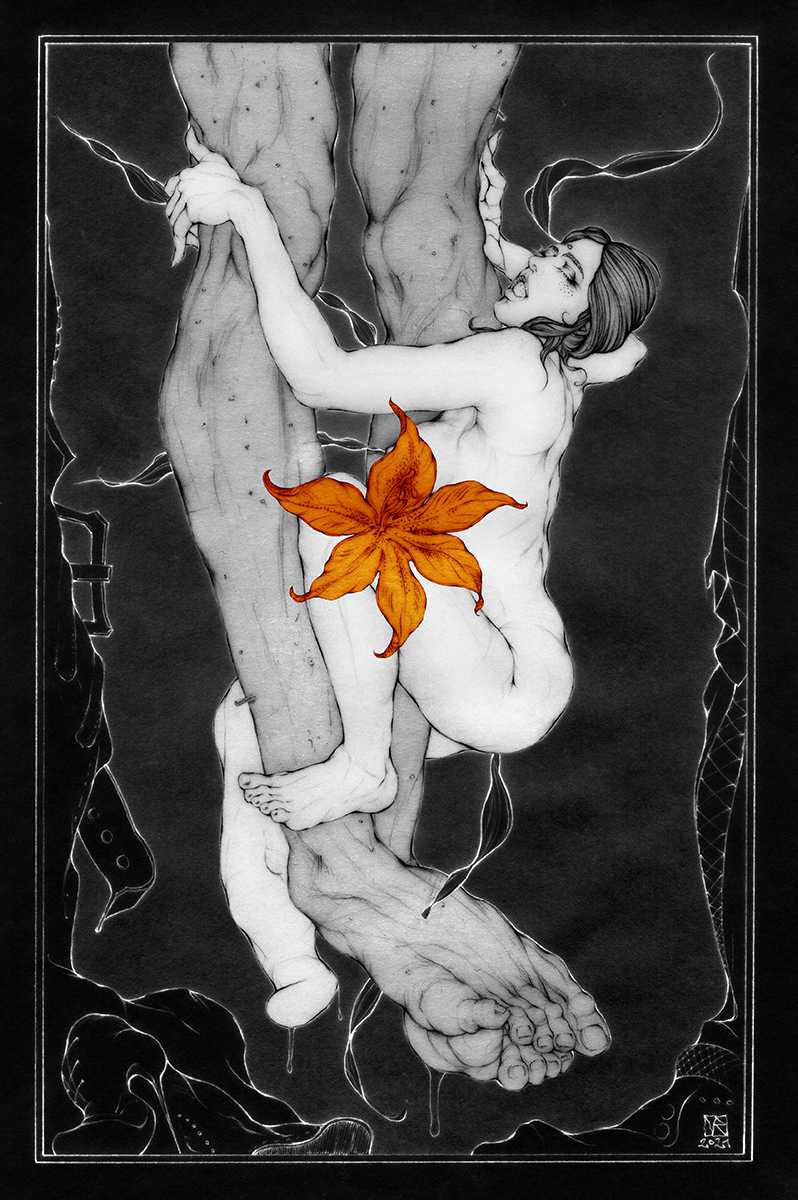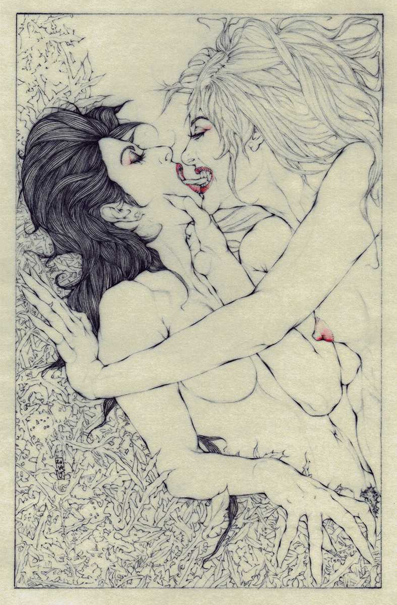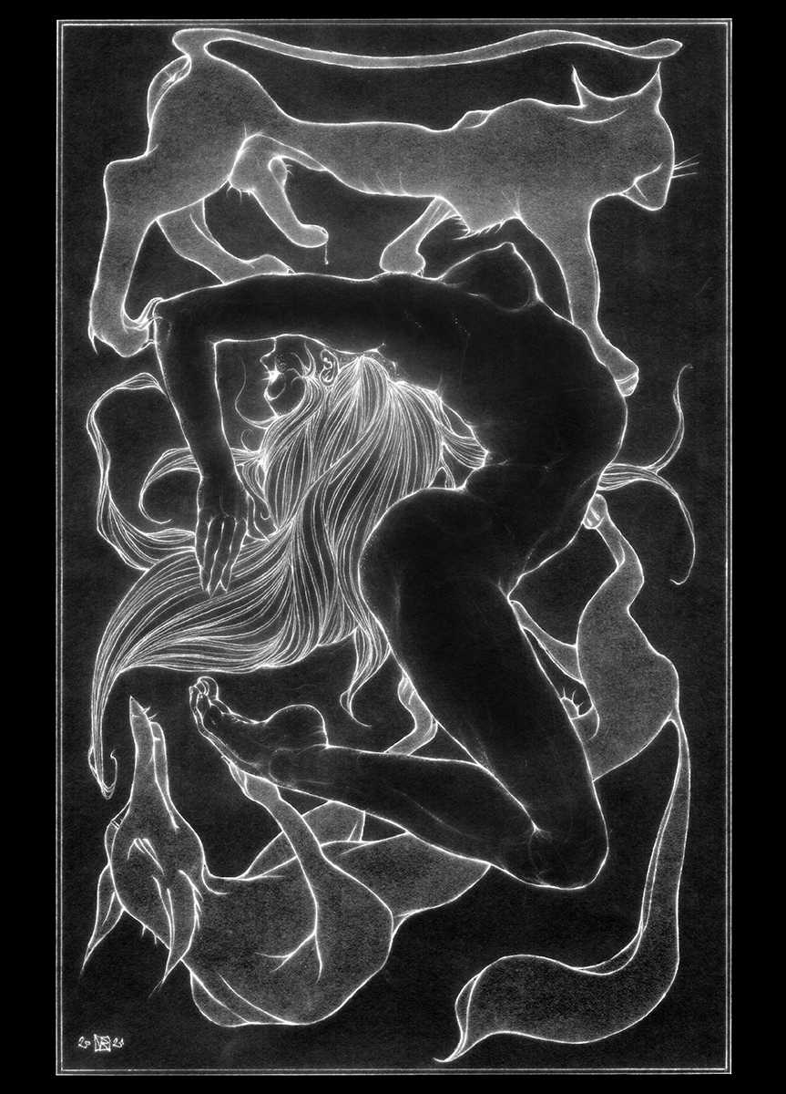 Thus for this reincarnation of Querida a new approach was agreed. Carlos alone would spell out the story of the sufferings and self-empowerment of the female puppet, ironing out the creases and unifying the narrator’s voice. The result is a perfectly balanced piece of work, a marriage of fantastic literature and eroticism. To match the new text, Jan van Rijn produced a new set of illustrations, based on the earlier version but introducing much more colour and variety.