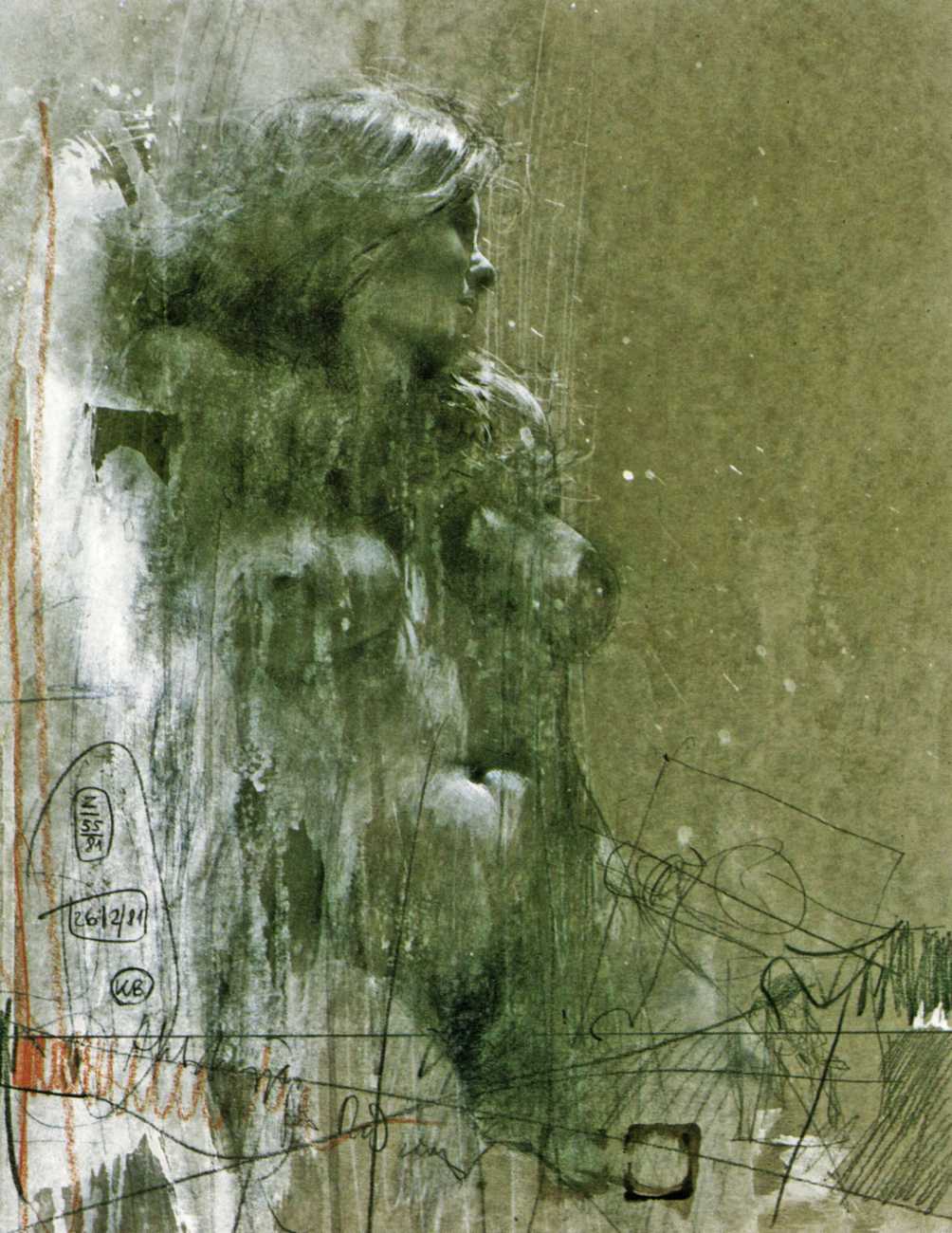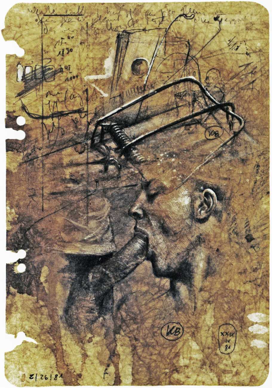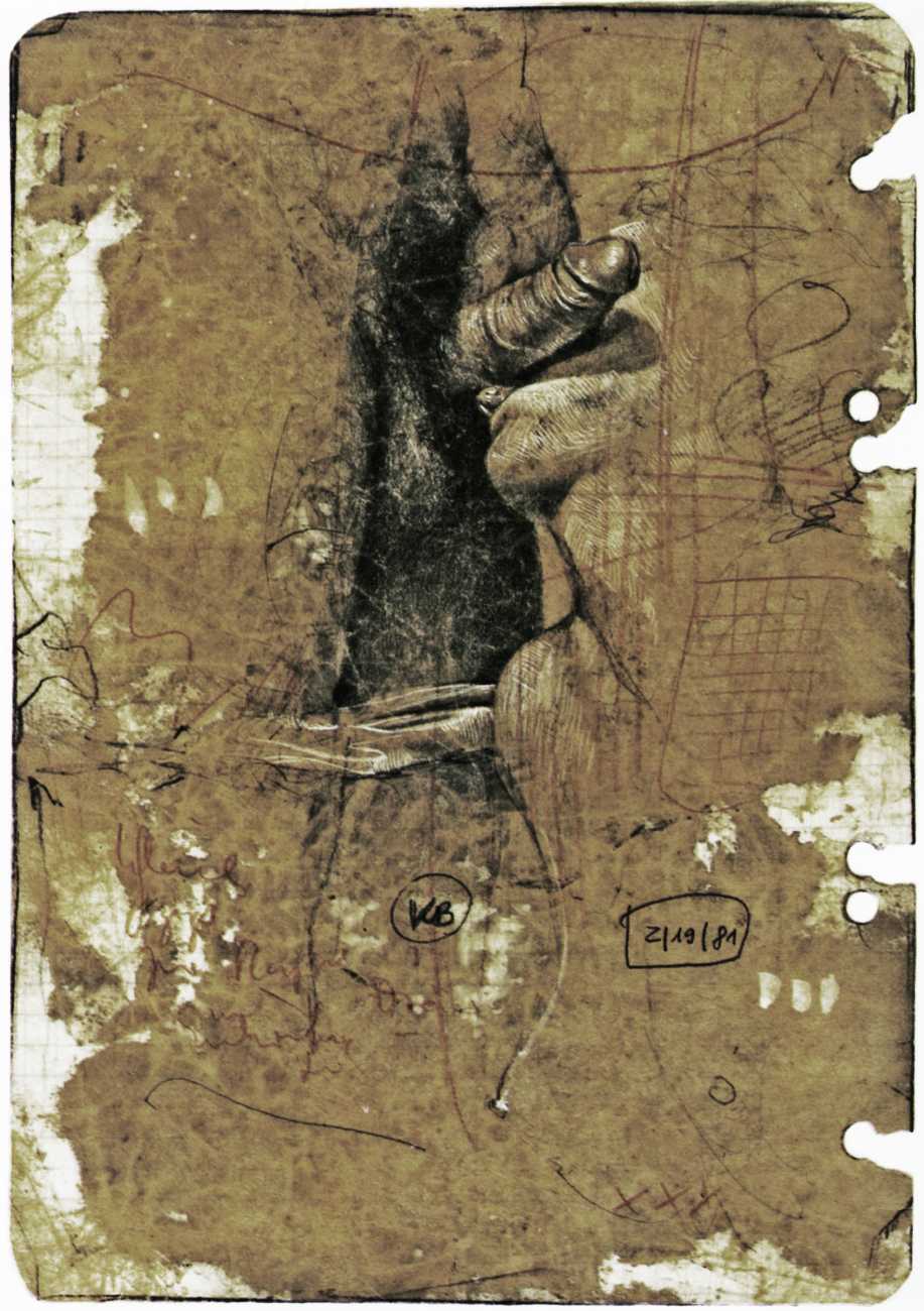 In the end ‘la petite mort’ is the way by which life renews itself – at least physically. In many of these plates, limbs drawn with astonishing verisimilitude intertwine in a giddying array of different postures. And Böttger was put on earth to celebrate the endless erotic parallels between sex and death. There is in these drawings a profound understanding that life is not well-ordered and rational. It is chaotic, passionate, unreasonable and spontaneous. This is particularly evident in the artist’s attitude towards his own incomparable technique. He is arguably one of the finest illusionistic draftsmen of this century. Although he could draw anything he wanted, as he wanted it and with great ease, Böttger also seems to have been at pains to discount his own facility. On a number of these sheets he has marked and rubbed, cut and torn, stained and scored his drawings, as if he were trying to eviscerate the wonderful products of his imagination. He was both iconographer and iconoclast; at one and the same time both proposer and disposer. At times he even goes beyond the limits of artistry to become, Shiva-like, an exterminating deity.