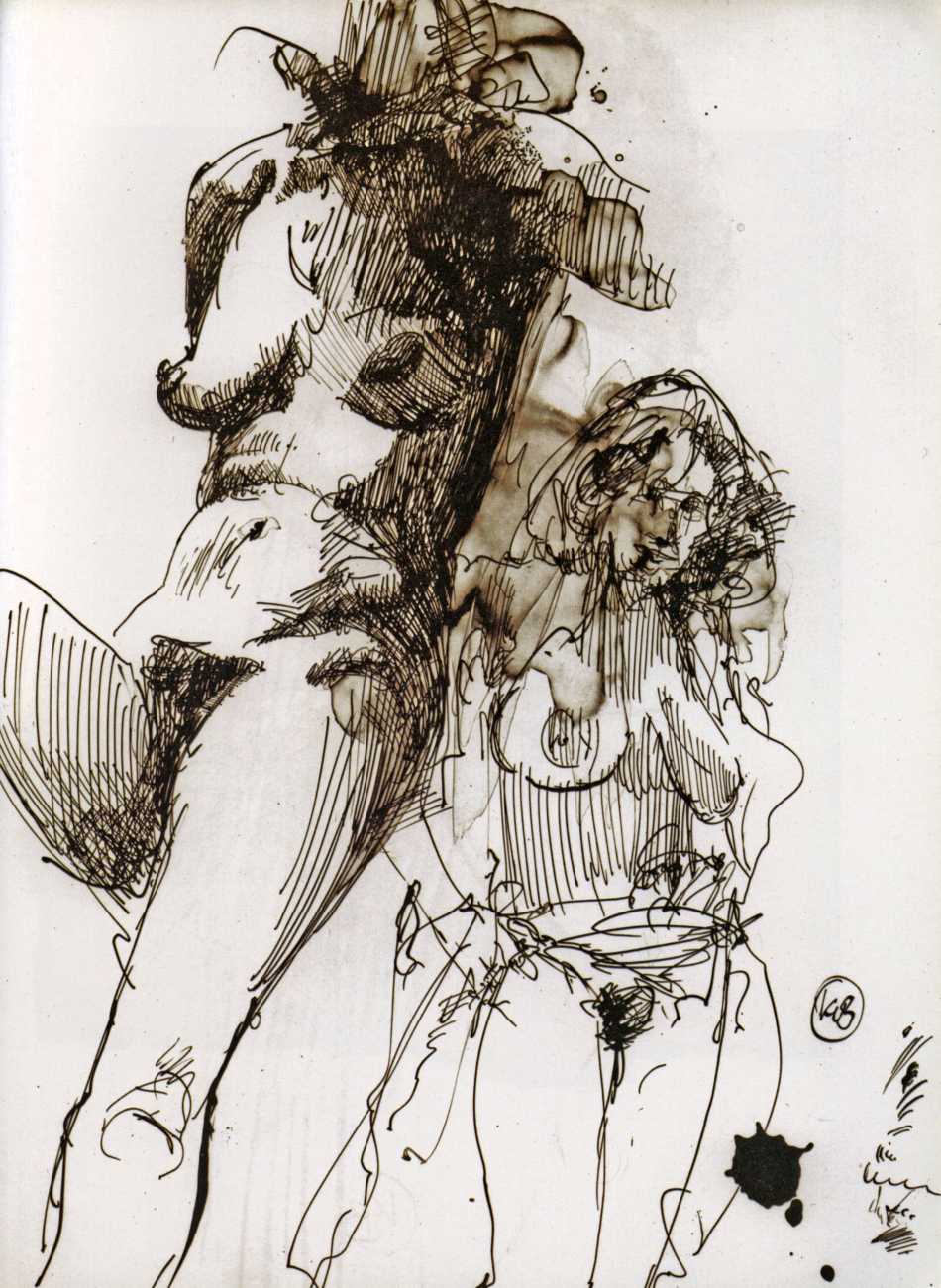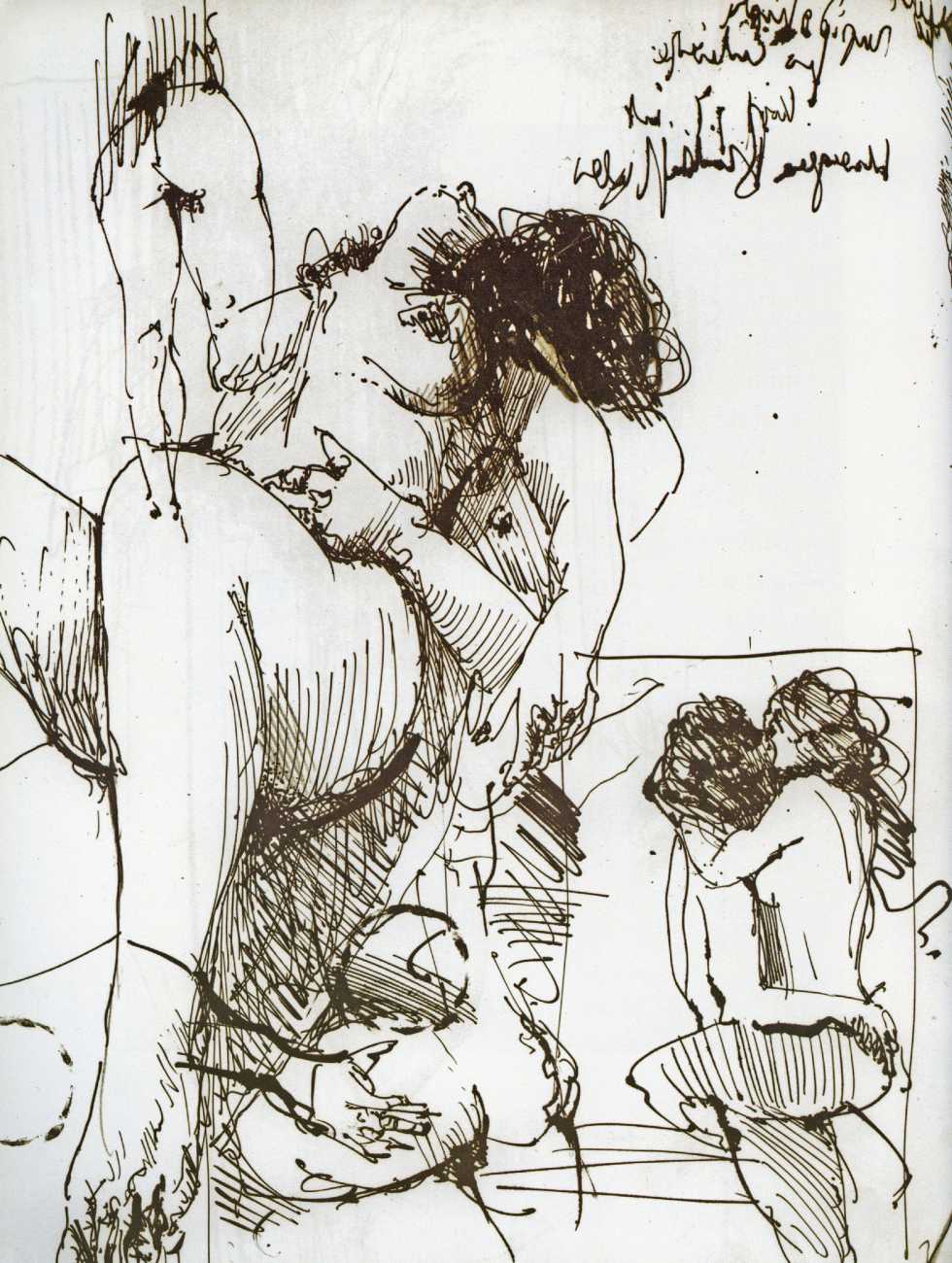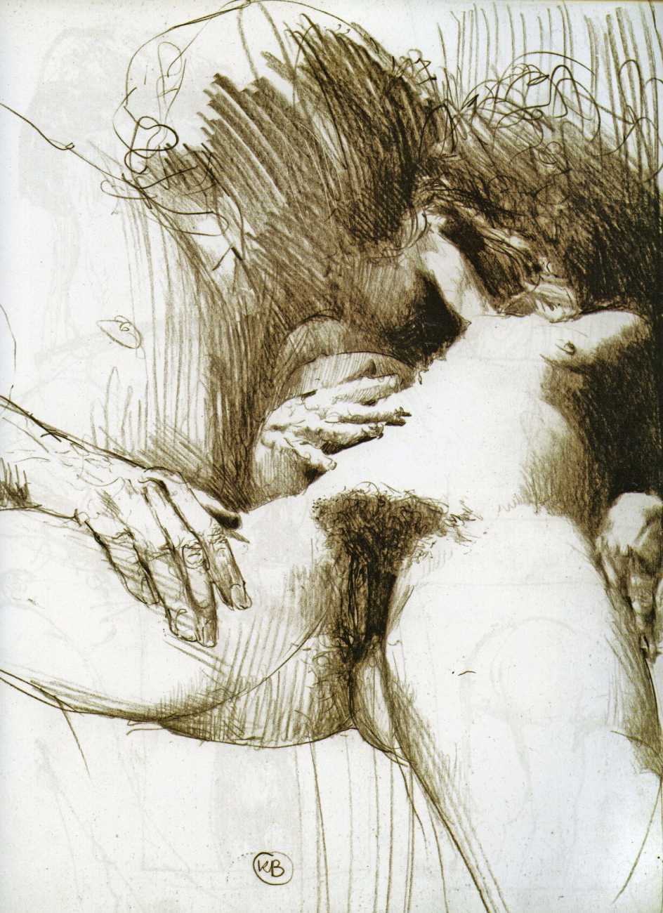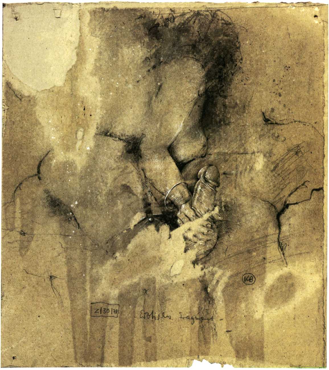 Imagine Dürer’s sketches, in silverpoint with pen and ink, now yellowed and, despite the care of generations of collectors, stained and torn by the ravages of time. Imagine that everything Dürer did had been destroyed, apart from an uncatalogued sheaf of erotic drawings. But what I found were not drawings by Dürer; they are by Klaus Böttger, a twentieth century master of similar instruments and techniques, whose recent death at the age of fifty came before he could receive the recognition which was his due. It is from more than seventy of the best of these drawings and lithographs that Eros & Thanatos has been selected.