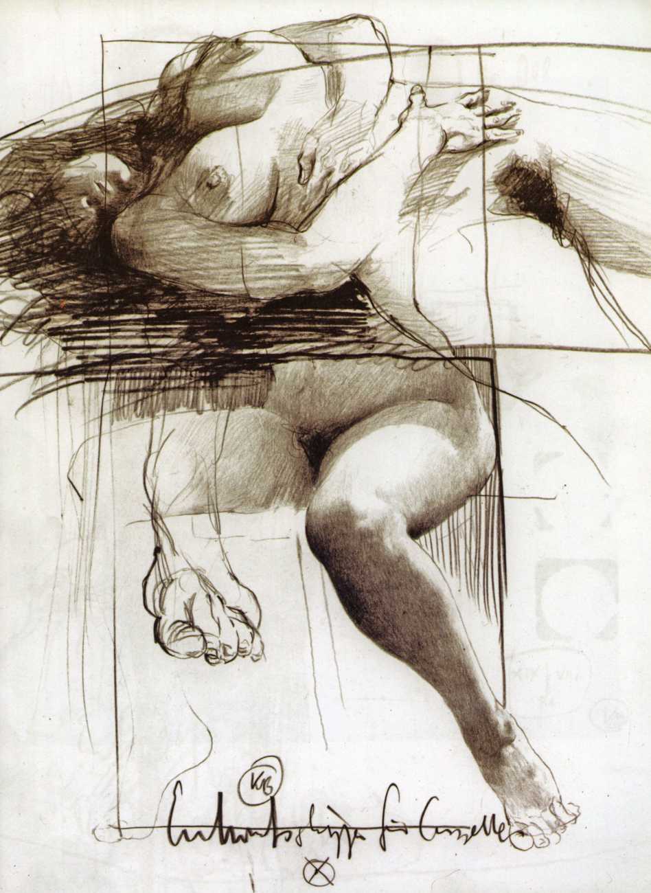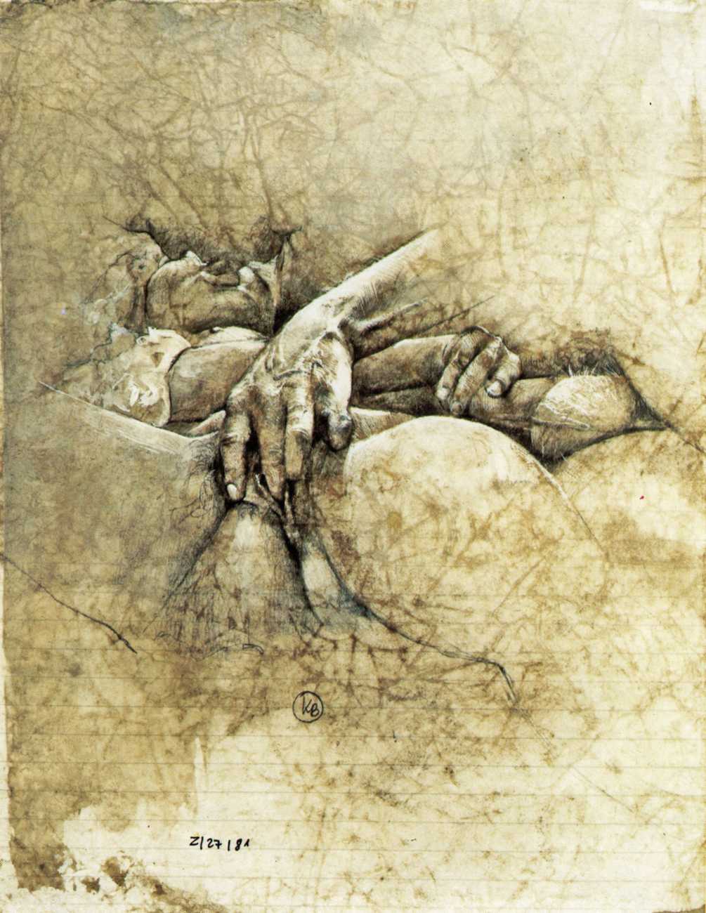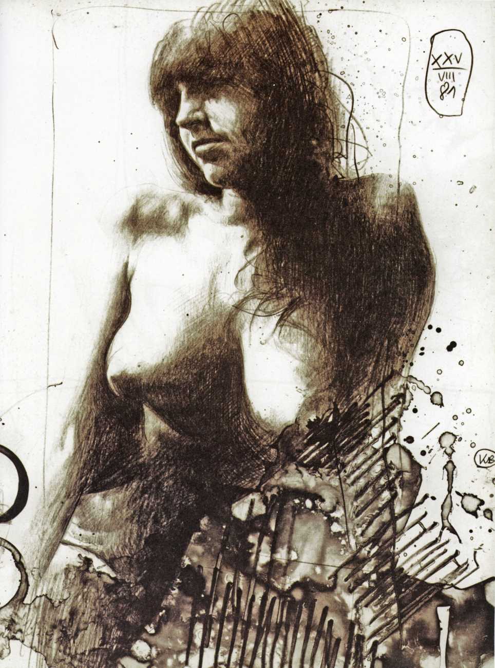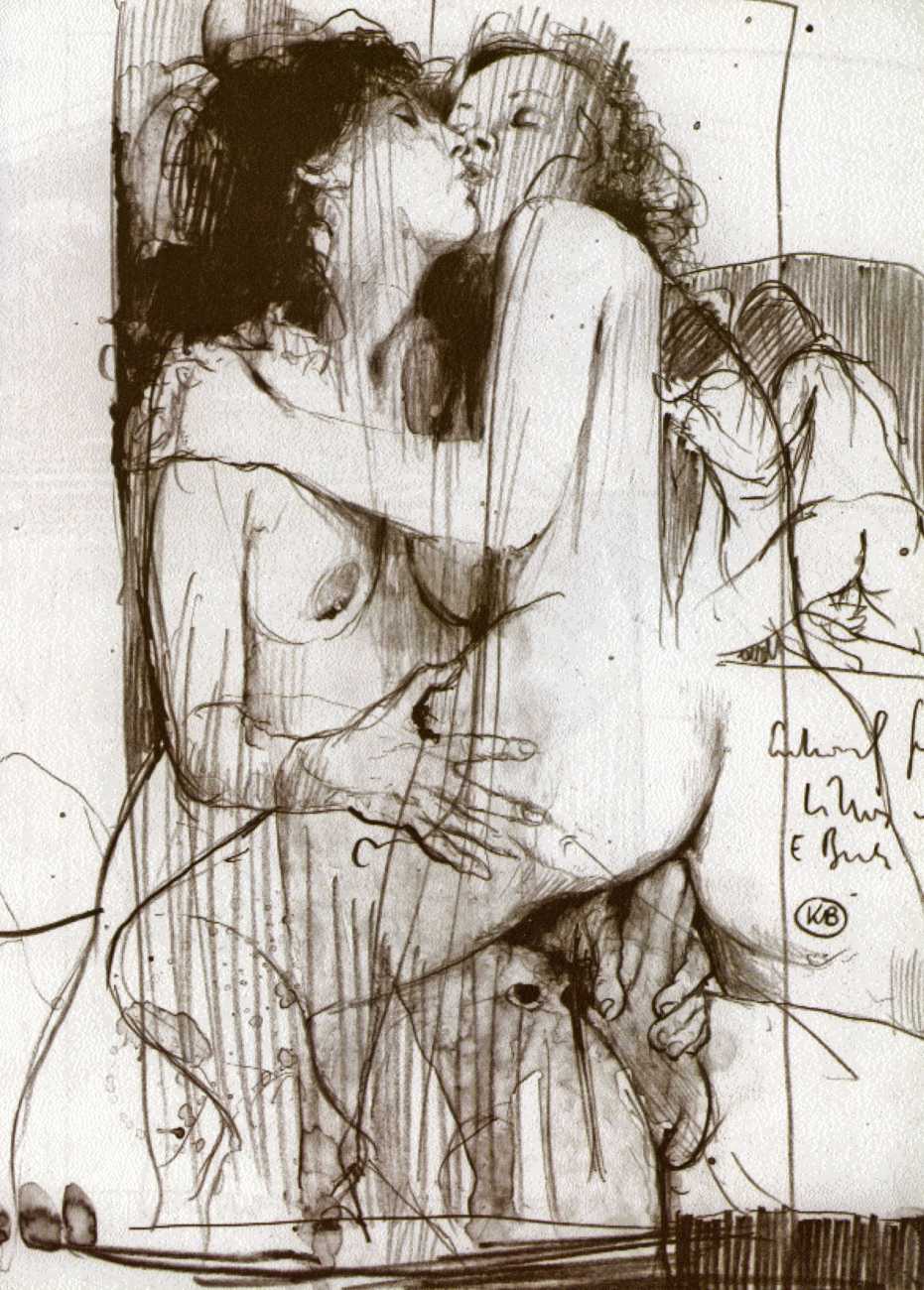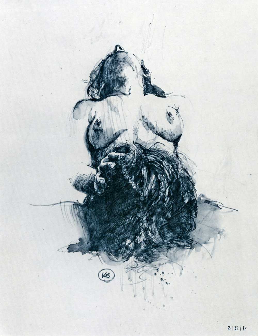 Imagine Dürer’s sketches, in silverpoint with pen and ink, now yellowed and, despite the care of generations of collectors, stained and torn by the ravages of time. Imagine that everything Dürer did had been destroyed, apart from an uncatalogued sheaf of erotic drawings. But what I found were not drawings by Dürer; they are by Klaus Böttger, a twentieth century master of similar instruments and techniques, whose recent death at the age of fifty came before he could receive the recognition which was his due. It is from more than seventy of the best of these drawings and lithographs that Eros & Thanatos has been selected.