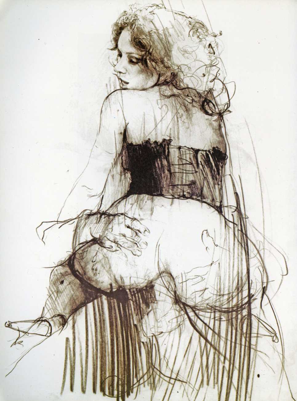 Every erotic artist (indeed any artist who is interested in drama and emotion) has the ambition to portray credible facial expressions. Few succeed, and in one sense it is as portraiture that we should look at Böttger’s oeuvre. Admittedly some of the drawings are headless, and in others, as in several of the pen and ink studies, the heads are obscured in violent movement. In some of the lithographs the models, Eve-like, reverentially contemplate their eternal womanliness and desirability; in others the girls swoon with a frenzied paroxysm which seems nearer to pain than pleasure. In my experience, these works succeed, as do few others, in capturing facial expression in extremes of emotion. Had he been an artist of, say, still lifes or marine subjects, Klaus Böttger would probably have become a household name in his own lifetime. But, because he was a chronicler of sexual desire, he has been unjustly neglected. In the realm of the erotic, Böttger’s art is the most accomplished that I have ever seen.