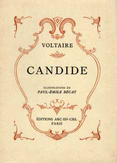 It was virtually inevitable that at some point Bécat would be commissioned to illustrate the best-known and widely-read French writer of the eighteenth century, and this five-volume collection of Voltaire’s works includes all of his most famous stories and novels – Candide (1759), Zadig (1747), Micromégas (1738), Le taureau blanc (1774), La princesse de Babylone (1768), Lettres d’Amabed (1769), L’ingenu (1767), Le blanc et le noir (1764), and L’homme aux quarante écus (1768).