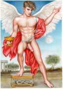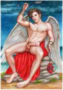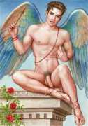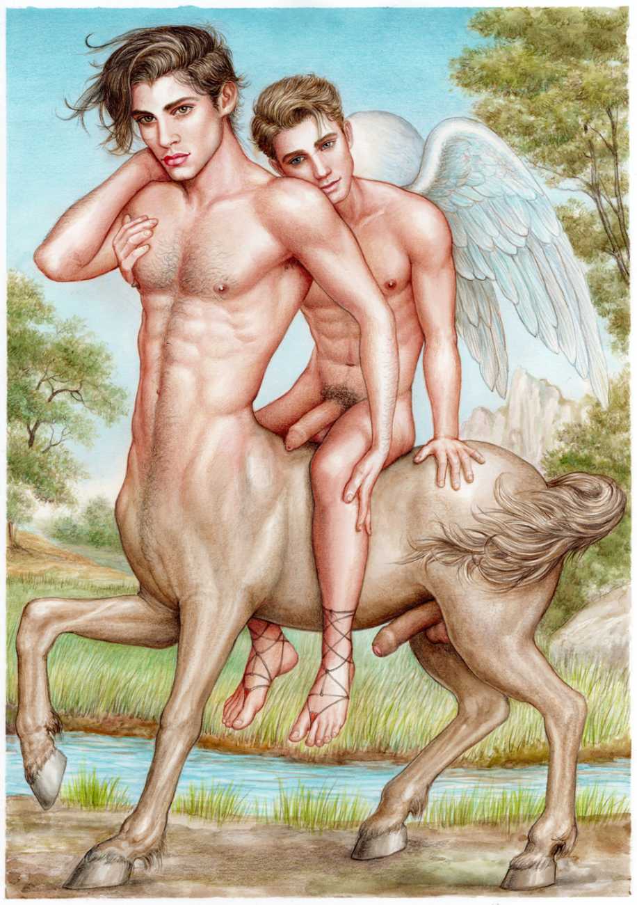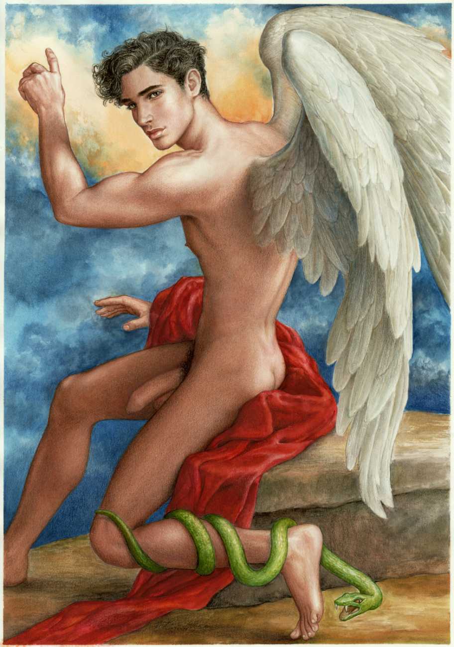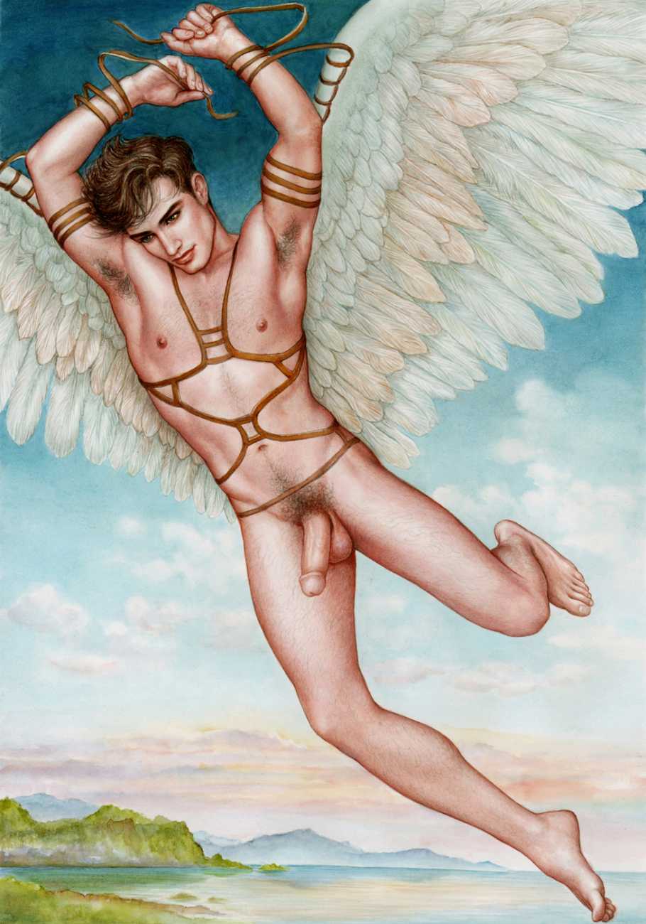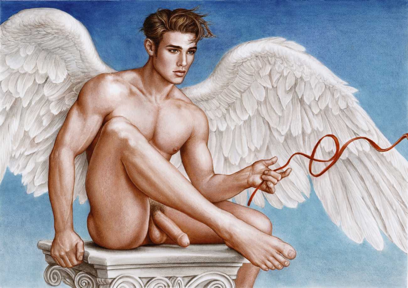 He portrays them with the same unconscious eroticism and sensual beauty of his mythological and historic characters, explaining that ‘we humans invoke them when we feel lost and helpless, seeking help or consolation from these beings of pure energy and wisdom, offering intercession with the supreme divine’.