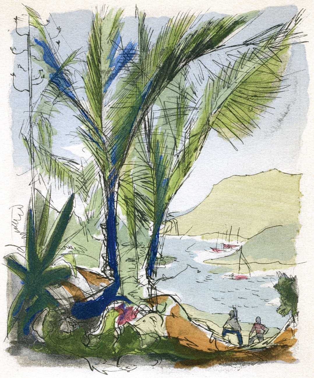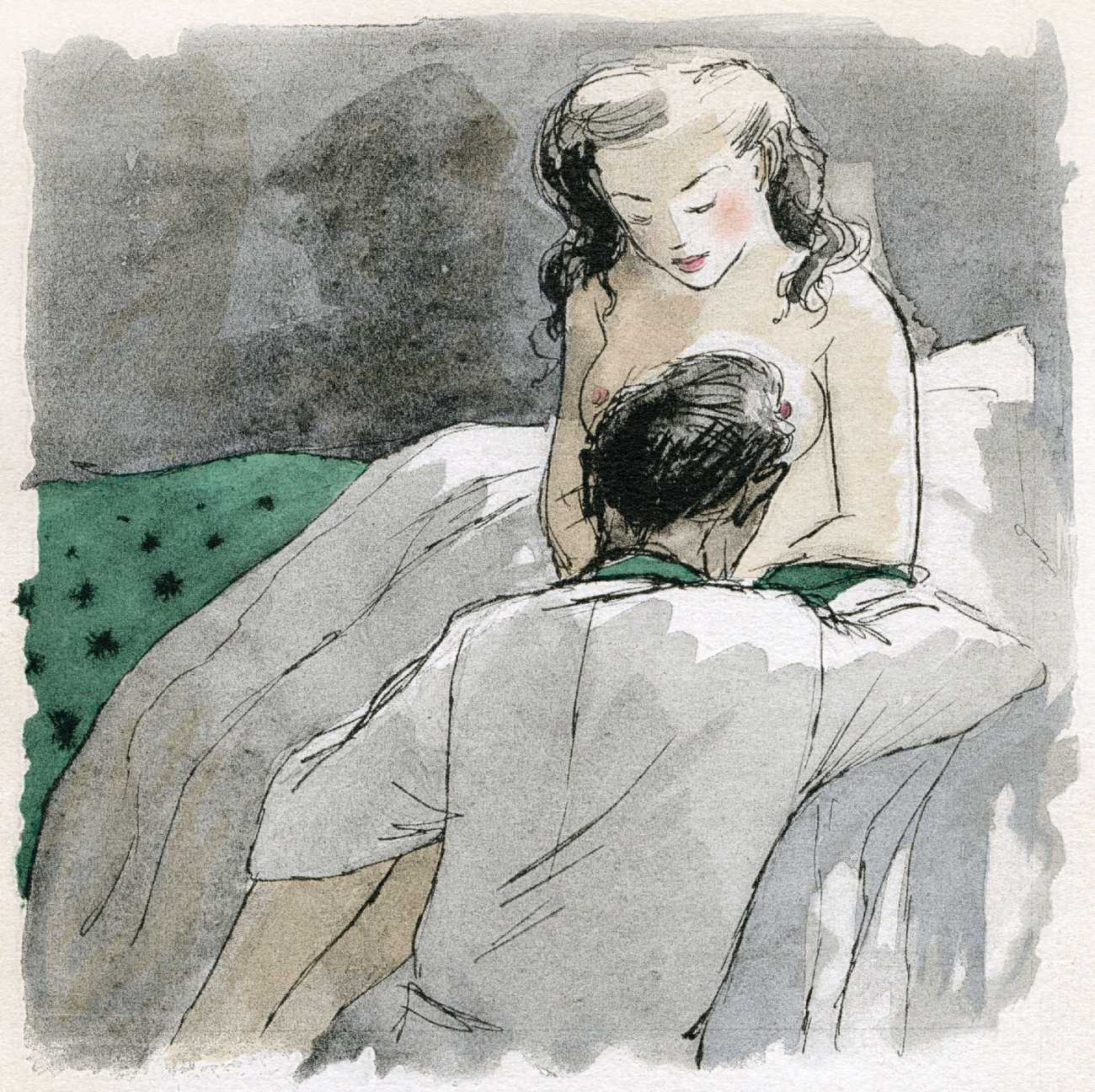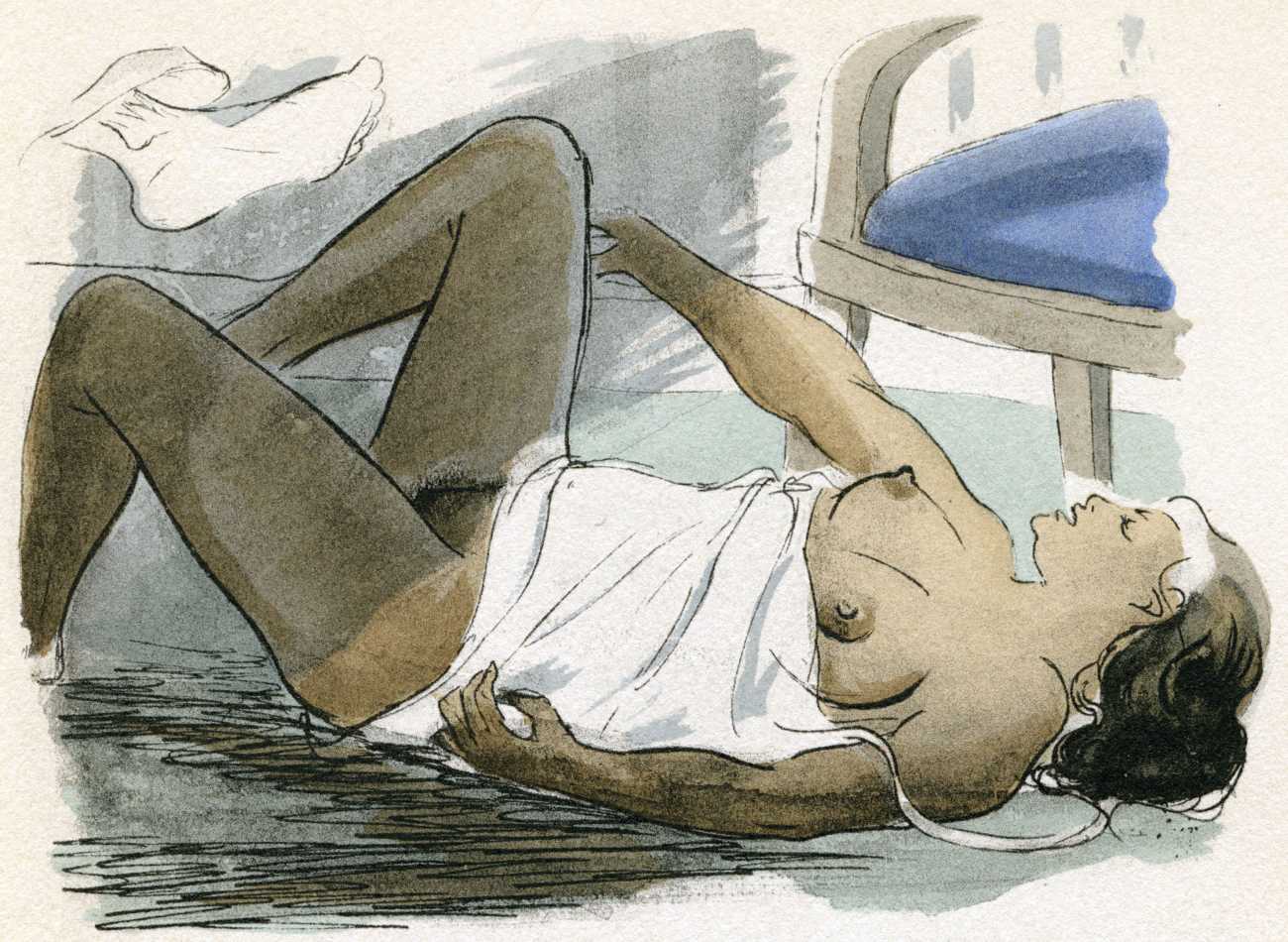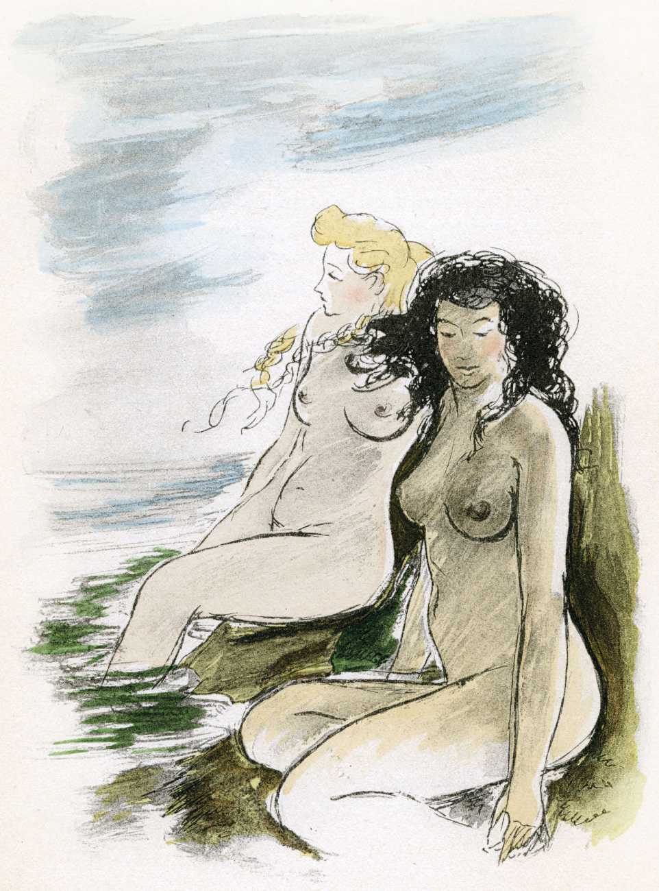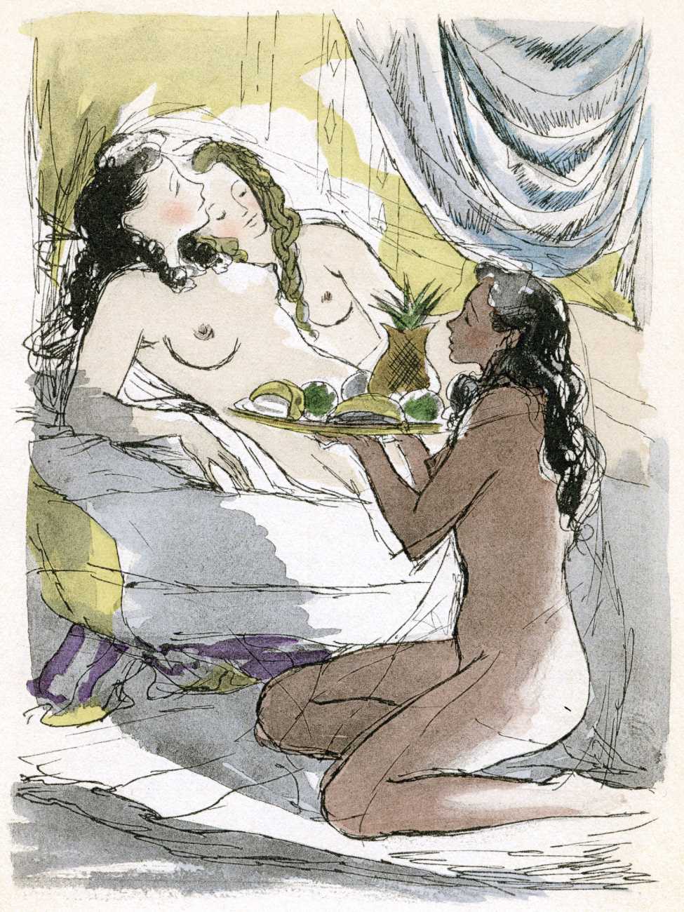 Le sérail (The Harem) was first published in 1931, and centres on a painter, Michel Faulcroix, who abandons his respectable Parisian banker life to become part of a Mediterranean paradise, a kind of erotic commune, with his brother Bernard and three beautiful young women, Jacqueline, Lore and Irene, all living and loving together. The three women become Michel’s ‘harem’, pursuing a pact of group marriage and shared sensual experiences.