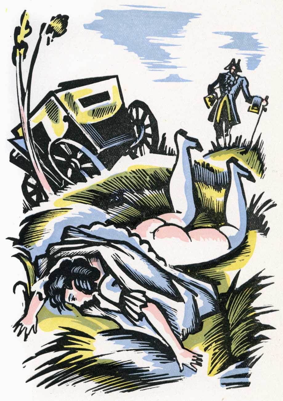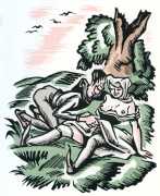 Collot’s ten plates commissioned to accompany the text are coloured woodcuts, demonstrating his mastery of simple yet refined composition and colouring.