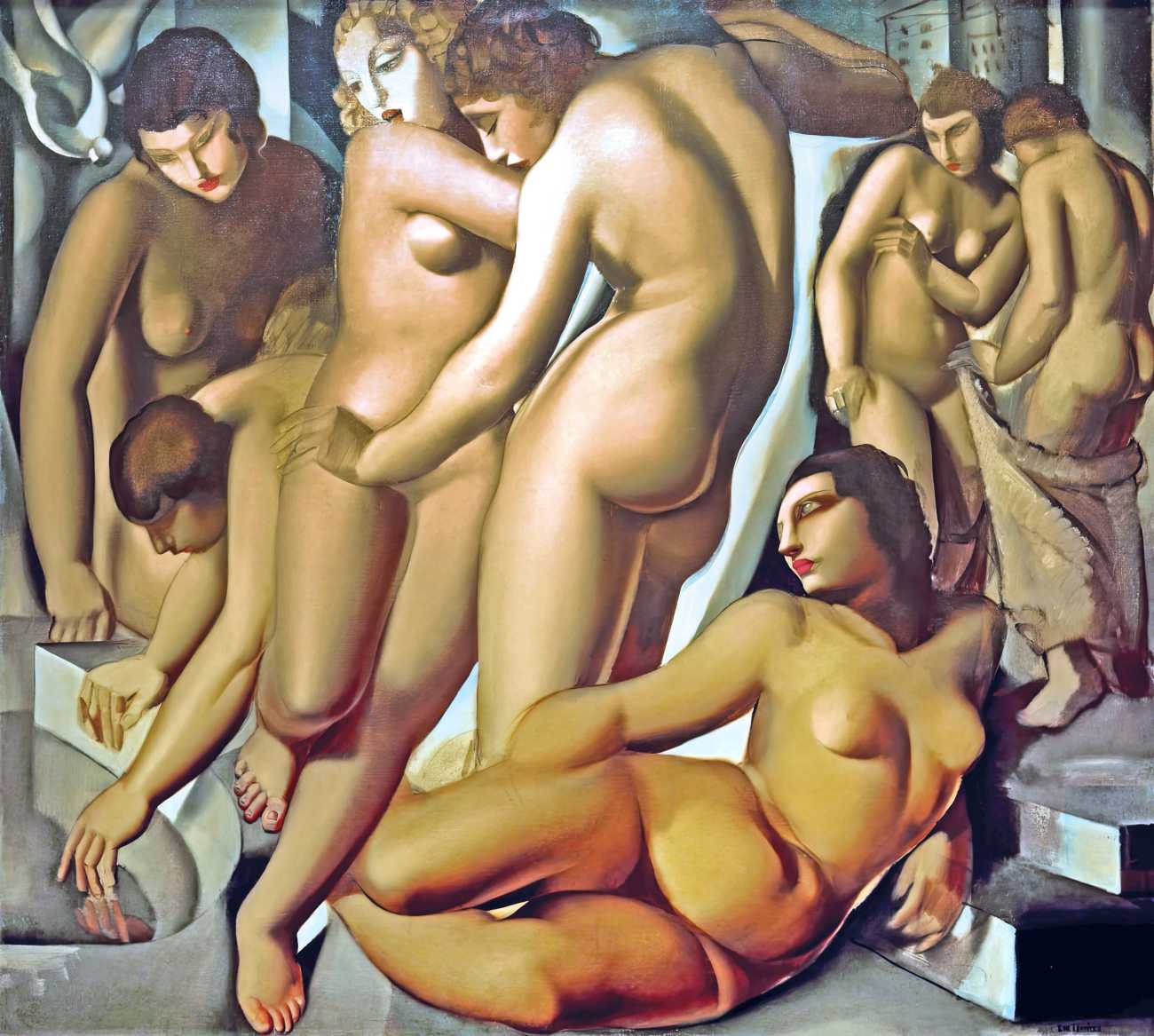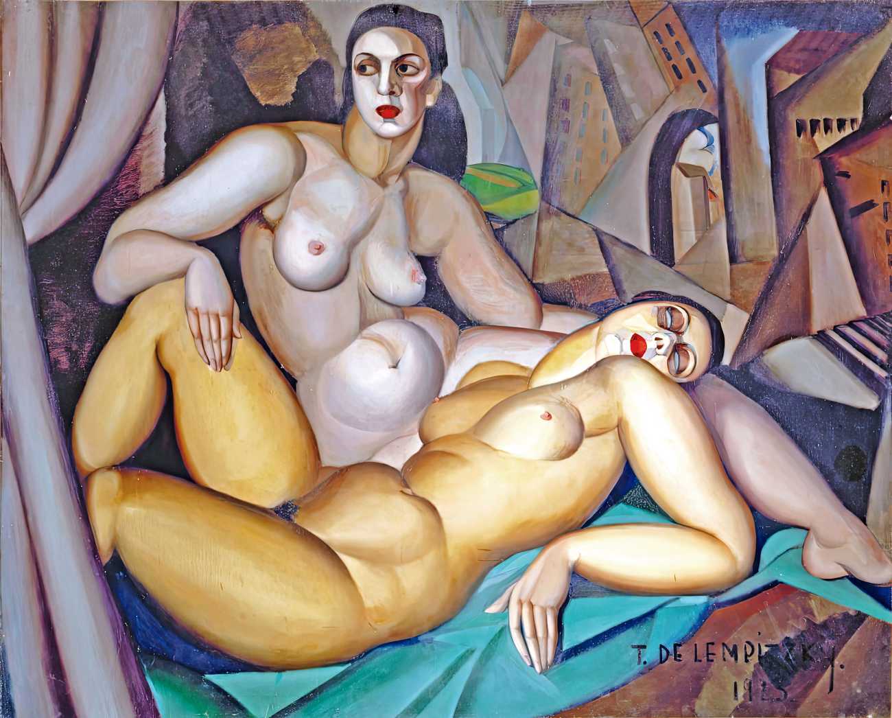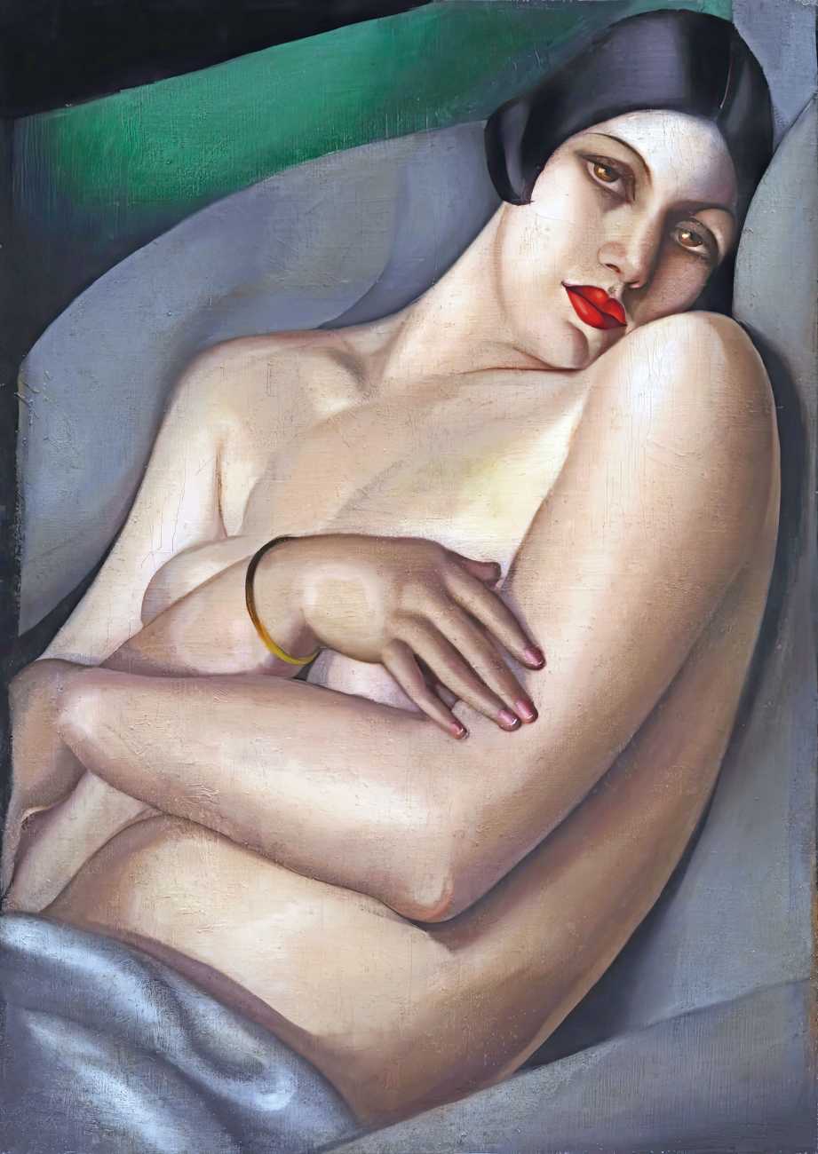 Her most overtly erotic works derive much of their power from the artist’s gaze. De Lempicka’s women are not passive objects of male desire but assertive, self-possessed figures who meet the viewer’s eyes or recline with deliberate confidence. The erotic charge lies less in the nudity itself than in attitude: the languid pose, parted lips, heavy eyelids, and sculpted curves signal pleasure without submission. In this sense, her eroticism aligns closely with her personal life and bisexual relationships, offering a distinctly queer female perspective. De Lempicka’s eroticism is inseparable from power, luxury and modernity. Her figures inhabit a world of wealth, speed, and urban sophistication, where sexuality is a form of agency rather than transgression.