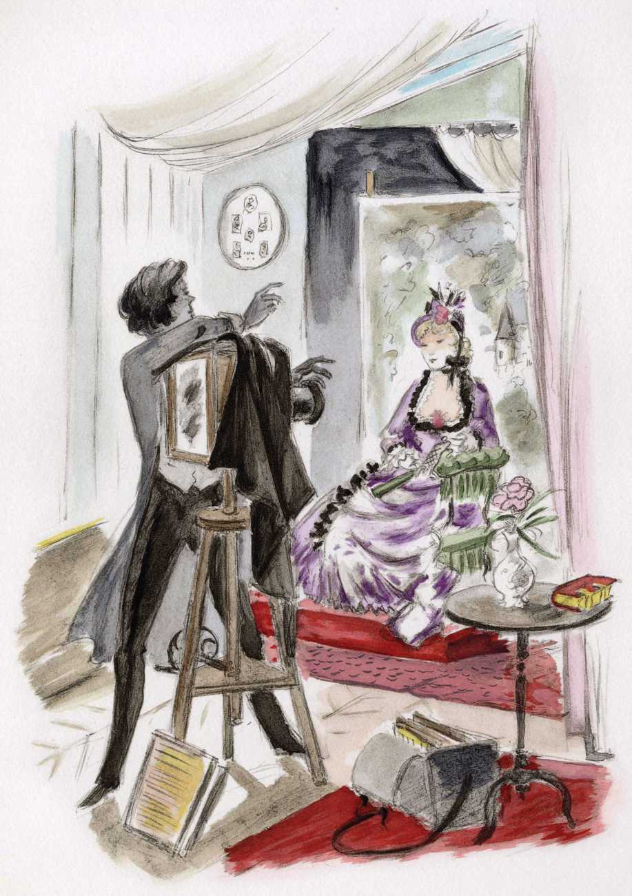 Léautaud’s Amours was one of André Dignimont’s last book commissions, and the sensitive images, faithfully reproduced from his pencil and colour wash originals, capture accurately both the tenderness of the author’s feelings and the details of the city which the lovers inhabit. Several of the images extend over double-page spreads, giving additional scope for fascinating detail.