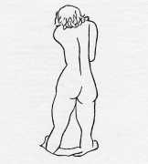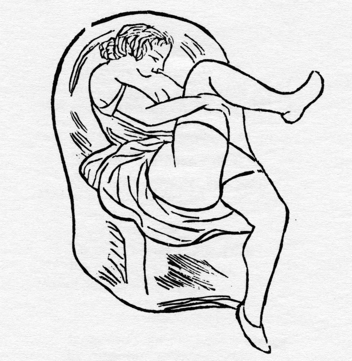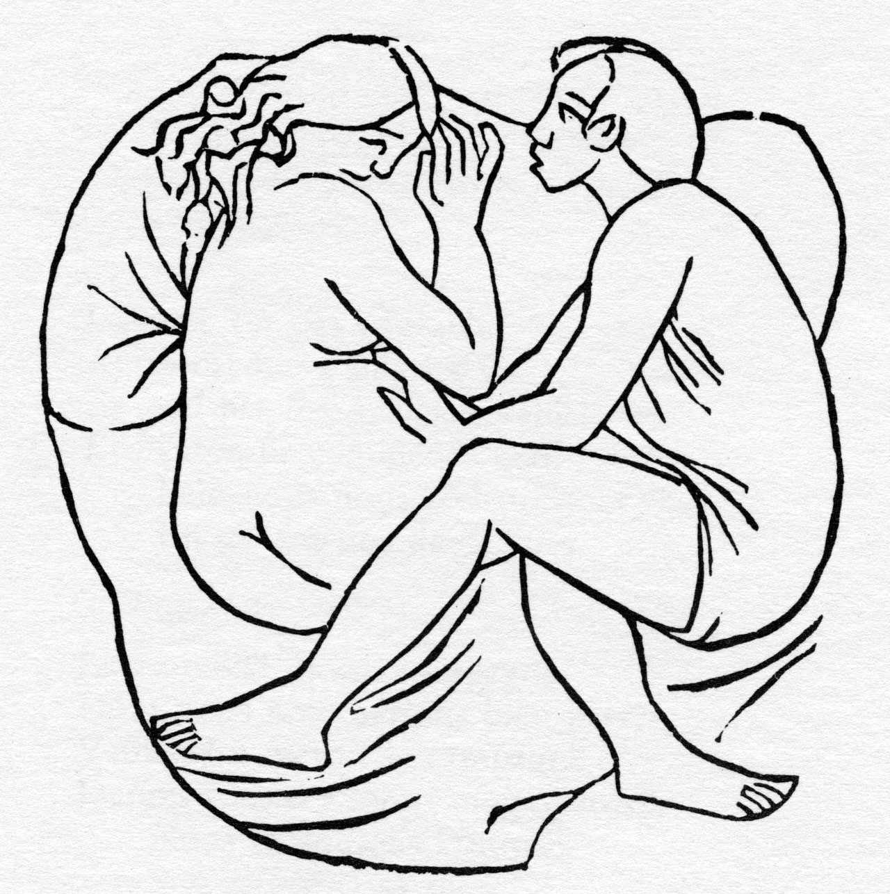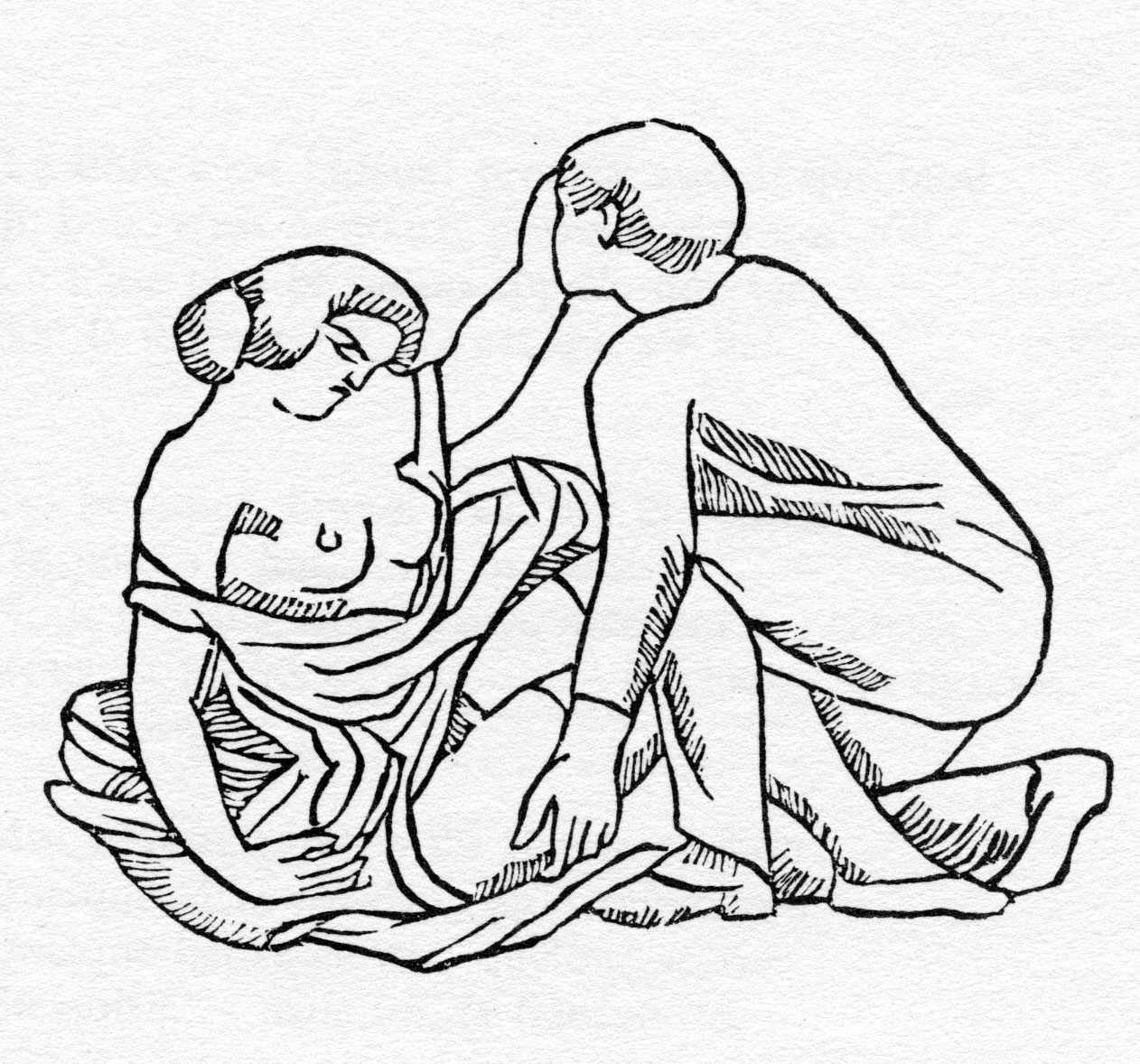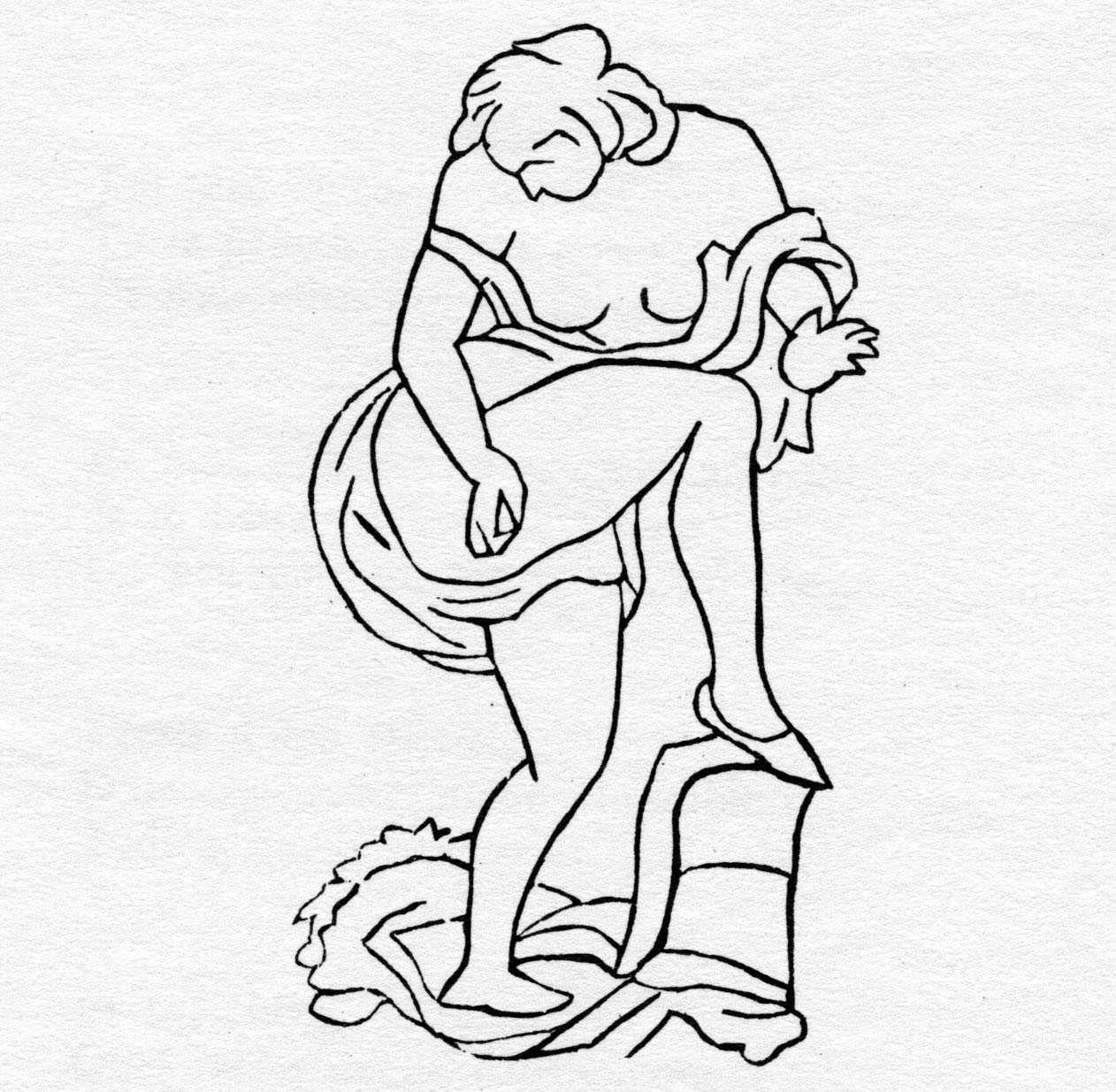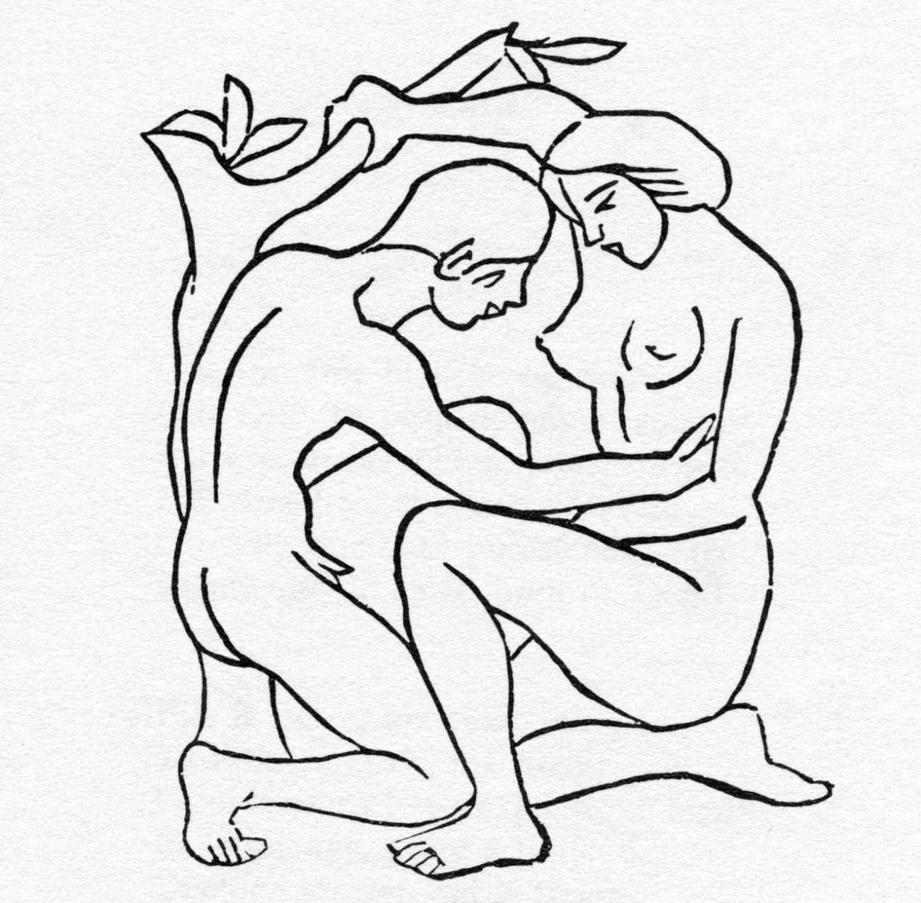 In 1906 the Parisian publisher Ambroise Vollard commissioned Maillol to illustrate a deluxe edition of Chansons pour elle, issued in 1907 in a small, carefully controlled print run aimed at bibliophiles. Maillol’s illustrated Verlaine’s poems with woodcuts, a medium he was exploring intensively at the time. They are spare and classical in tone, naked or lightly draped female figures, often standing or reclining in shallow, almost timeless spaces. Rather than illustrating specific moments from Verlaine’s poems, Maillol provided a parallel vision – sensuous but calm. His women are solid, self-contained and sculptural, anticipating Maillol’s mature sculpture. Sexuality is conveyed through weight, balance and repose rather than gesture or narrative. This restraint was deliberate – Maillol rejected the symbolist eroticism of contemporaries like Félicien Rops, offering instead an idealised, Mediterranean sensuality.