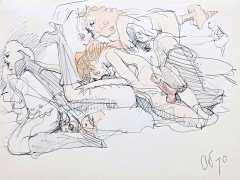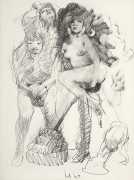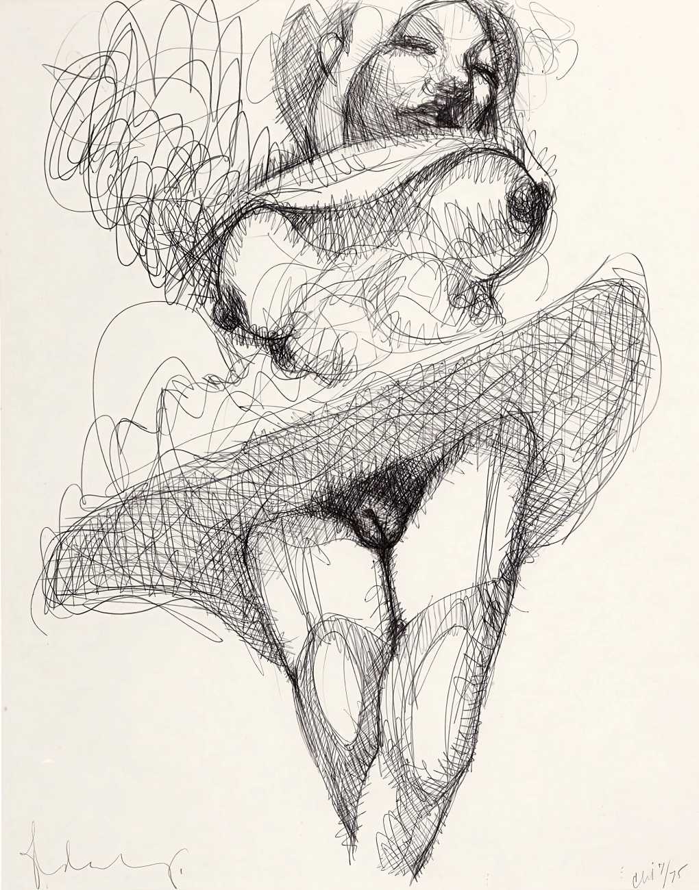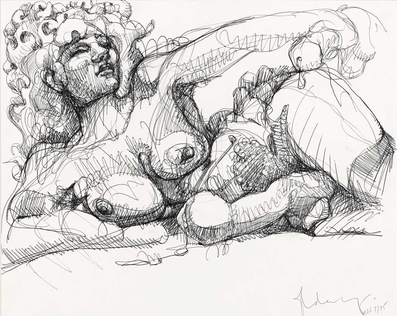 Most of his erotic drawings and etchings were produced in brief bursts in the 1960s and 1970s while the artist was travelling. Often executed in hotels, the works evince a sense of open, unrestricted possibility offered by anonymity in interchangeable rooms.