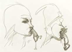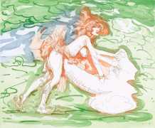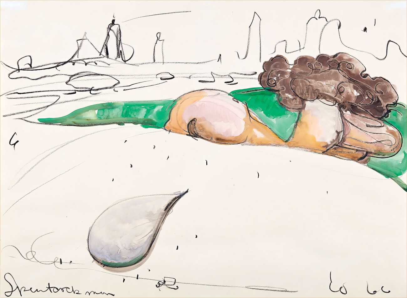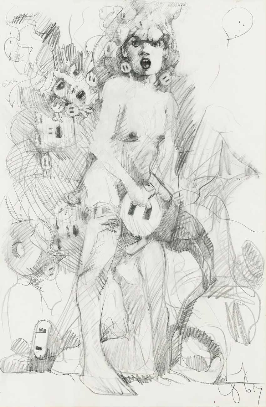 Oldenburg’s erotic fantasies were executed with a combination of startlingly explicit and imaginative sexual acts, combined with scholarly art historical references that range from Watteau to Medusa and the Sphinx. Elsewhere, Oldenburg’s favourite household objects such as vacuum cleaners and telephones are regularly animated and imbued with sexual intent.