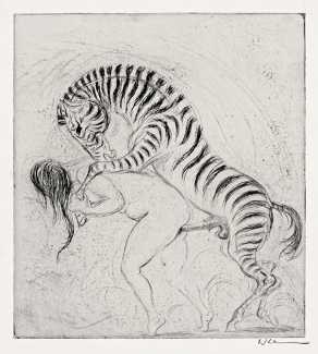 A game of cat and mouse began for endangered artists. Many works were published anonymously or pseudonymously. To be on the safe side Otto Schoff’s portfolios Orgien and Liebesspiele der Venus appeared without any indication of place, publisher or year. The Fritz Gurlitt publishing house published Schoff’s portfolio Knabenliebe anonymously. Heinrich Zille’s Hurengespräche appeared under the pseudonym W. Pfeifer and with a false publication date of 1913; nevertheless the work was banned by the Prussian censors on the spot. After he came into conflict with the judiciary with his portfolio Erbsünde, Walter Klemm only dared to produce a single copy of the already-finished plates for the Die Dirne. Censorship acted as self-censorship, and it is salutory to consider how many similar works never saw the light of day.