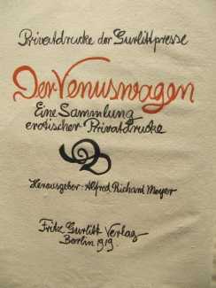 In his 1931 classic survey of erotic literature, Irrgarten der Erotik (The Erotic Labyrinth), Paul Englisch describes the trial of the Berlin-based Gurlitt when in 1919 it published the nine-volume Der Venuswagen (The Chariot of Venus). The entire production was condemned, and what (mercifully little) was left in the company’s warehouse was confiscated. The court ruling was that ‘The decisive factor should be the degree of artistic perfection. Those creations that touch the sexual should be allowed only if it is guaranteed that they will only be in the hands of experts, or at least of mature men and women’. Of course, since the Gurlitt portfolios were sold widely through the book trade and the brochure advertising it through bookshops, anyone who could afford it, whether expert or not, mature or not, could procure a copy of Der Venuswagen – which is precisely what the court, in interpreting the law, said it was attempting to avoid.