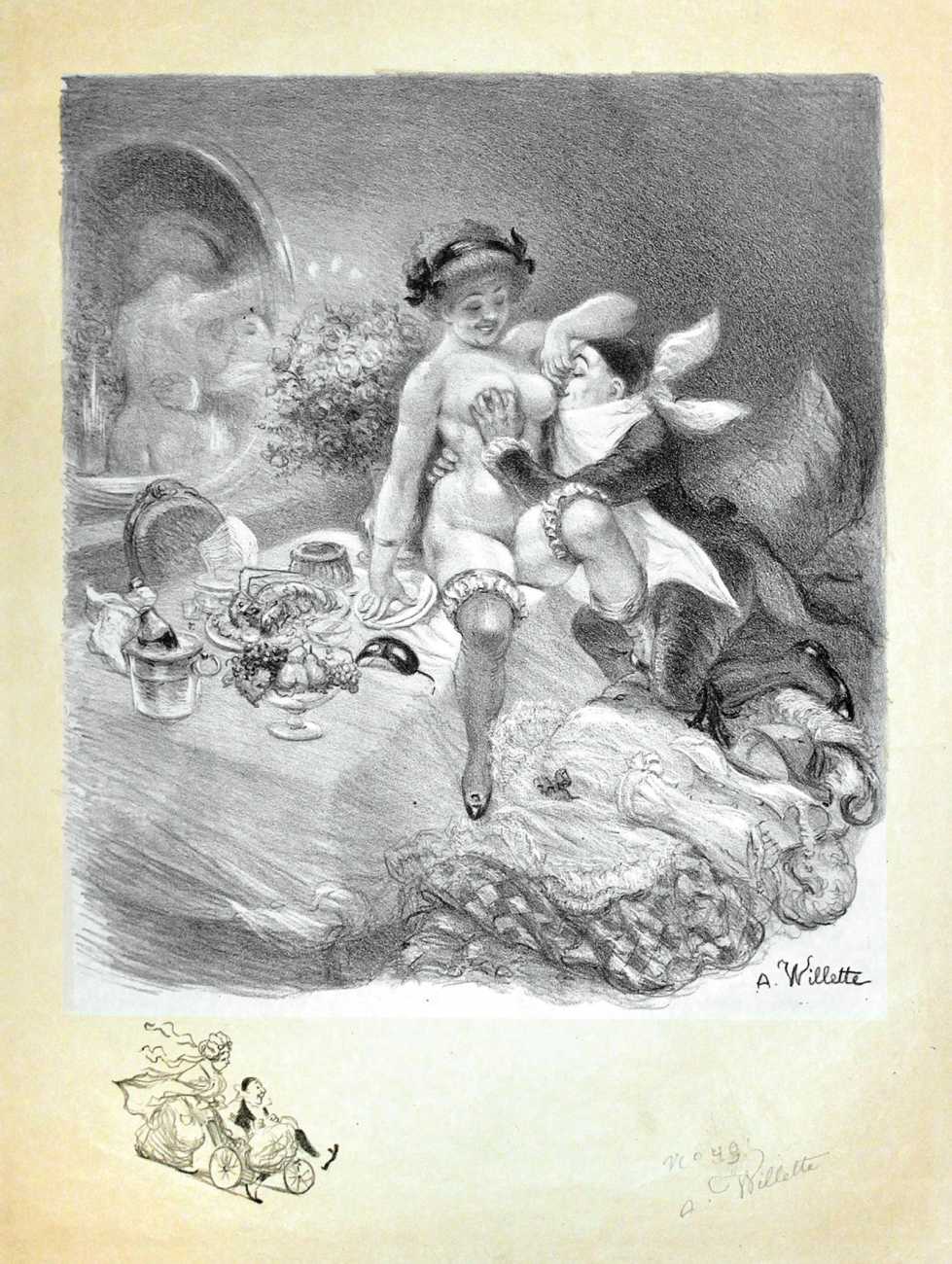 The author and playwright Claude Roger wrote of Willette, ‘his work is striking in its liveliness, its contrasts and the abundance of life that it exalts. His work is a reaction against the sadness of the generation which followed the war of 1870, expressing the joy of breathing freely again, of enjoying the world with frankness and honesty.’