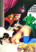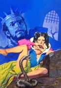 Erotic horror comics, ‘sexy fumetti’, began to appear in Italy in the late 1960s, but exploded when Renzo Barbieri set up Edifumetto to publish titles like Biancaneve, an erotic version of Snow White, and Zora la Vampira. The covers painted by Biffignandi and his contemporaries featured bare-buttocked and -breasted models, colourful monsters, and hints of sadism. The storylines covered everything from horror to history, fantasy to fairy tales, but the best feature was inevitably the eye-popping covers by Biffignandi and his contemporaries Emanuele Taglietti, Roberto Molino and Carlo Jacono. In the mid-1970s these titles sold in their millions every month, but sales had collapsed by 1984, although some titles would continue to be published until the end of the decade.