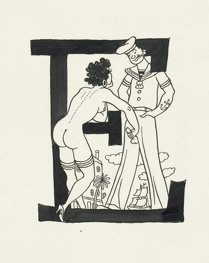1946 Kezdők és haladók kedzere (Beginners and Experts: An Erotic Alphabet), 23 black and white ink drawings and an illustrated title page.