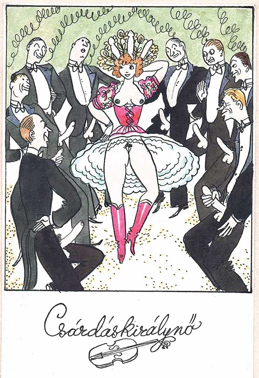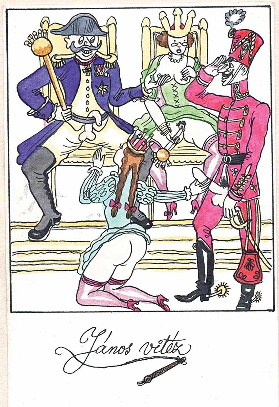 1941 Vilmas egy bécoi lamy regénye (Vilma, A Viennese Girl’s Story), 12 ink illustrations enhanced with colour on the theme of flagellation.