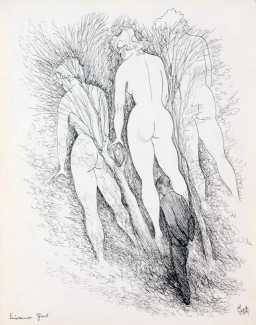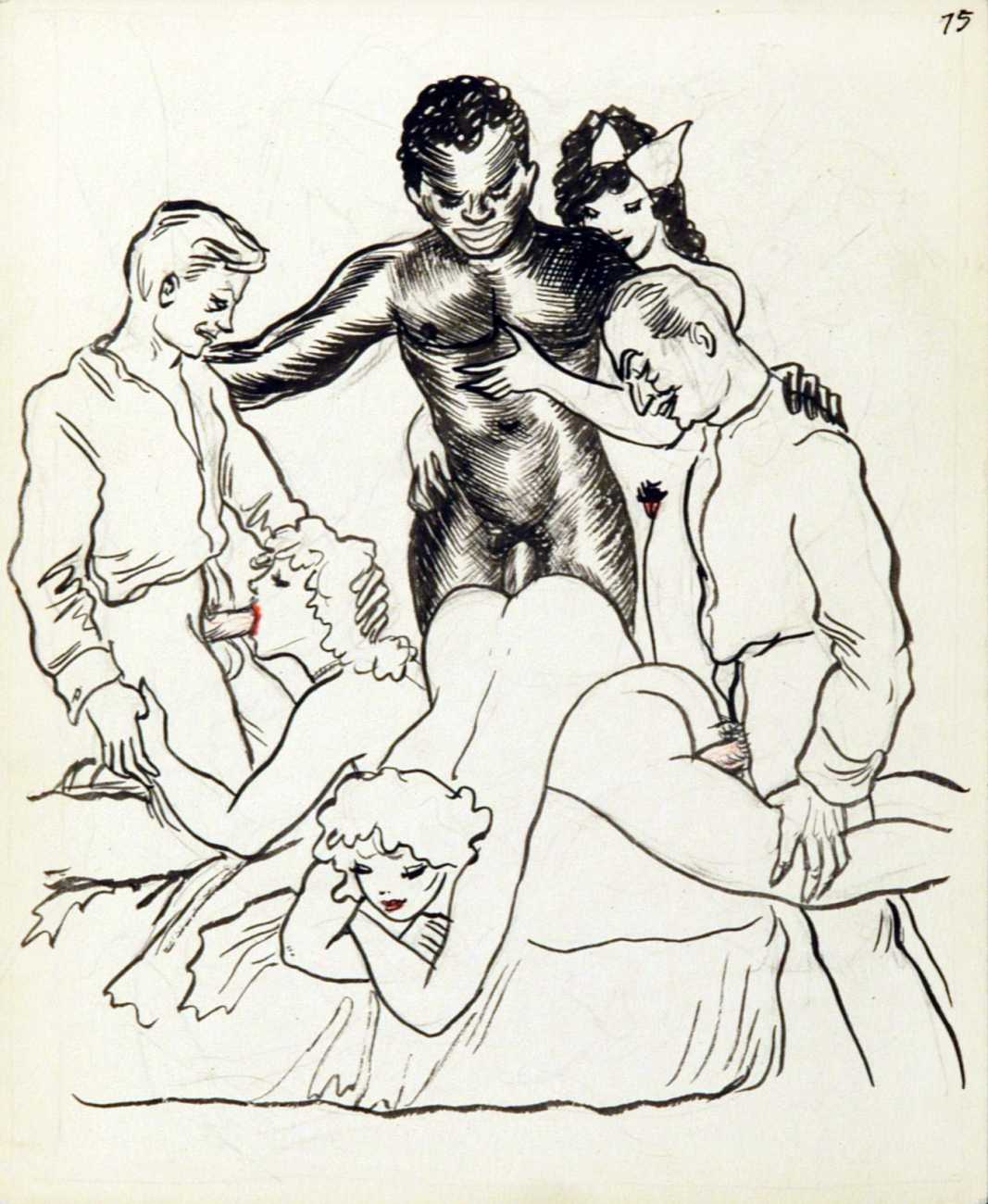 Because most of his work consists of original artwork rather than prints, the only record we have of most of his work is in the auction sales catalogues of the key erotica collections built up in the 1950s and 60s. By far the most important of these was the collection of Sieglinde and Karl Ludwig Leonhardt, sold at auction in 2009. Karl Ludwig was one of three brothers at the head of the very successful Leonhardt Group of German businesses operating in the automobile, mechanical engineering and tourism sectors. The Székely material sold at that auction consisted of over 300 illustrations in 28 portfolios.