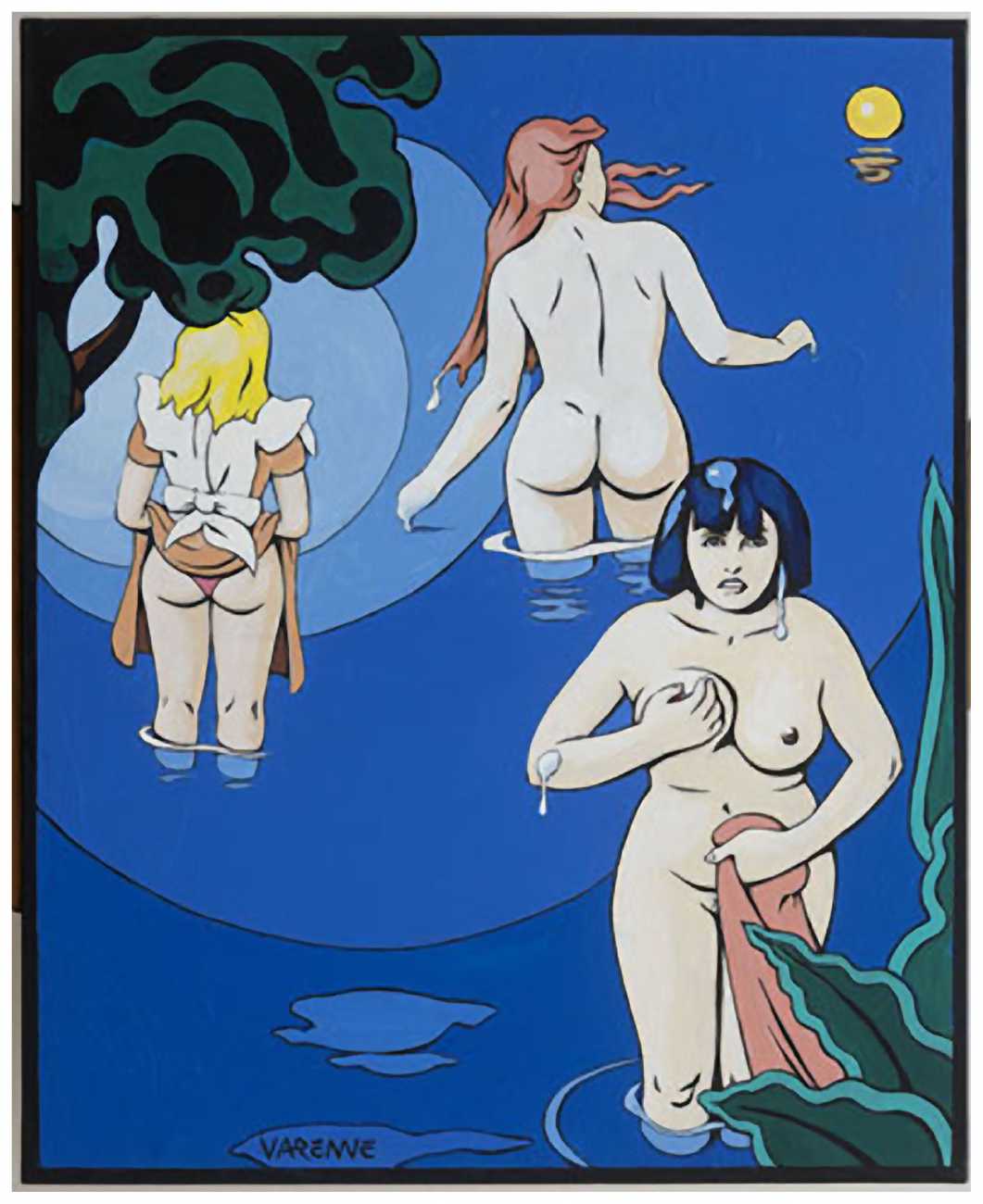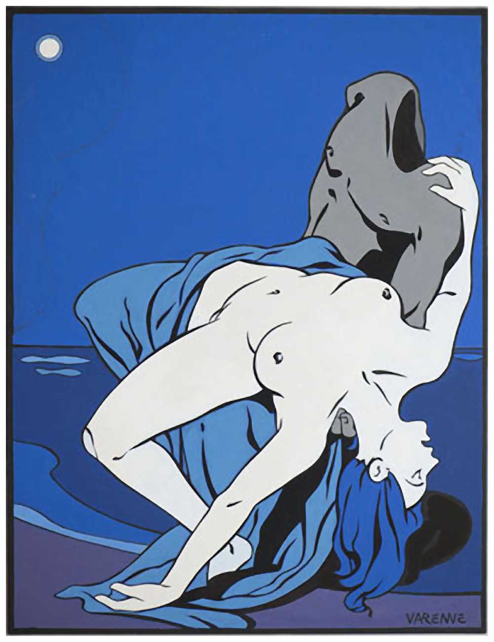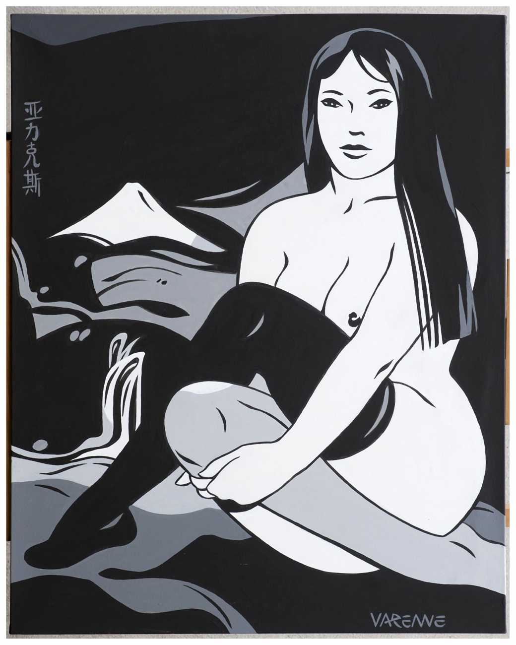 His shift towards more erotic works came from a suggestion by Georges Wolinski, the then editor of Charlie Mensuel, a great lover of the female body: ‘It was Wolinski who advised me to try my hand at the erotic genre,’ explained Varenne, ‘because he thought I drew women very well. It also fit perfectly with that stage in my life. My first erotic volume, Carré noir sur dames blanches (Black Square on White Queens), was released in 1984, and immediately did very well.’