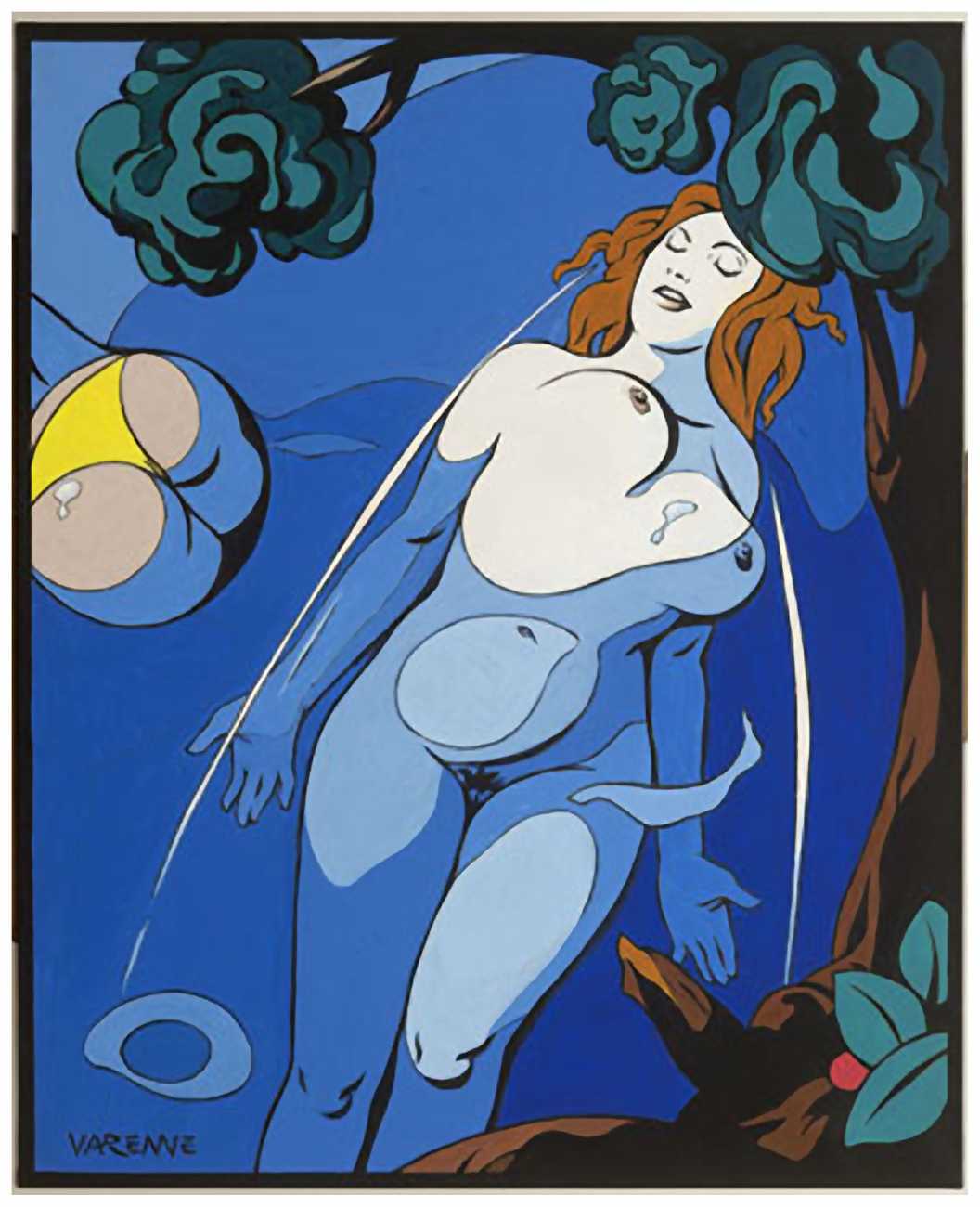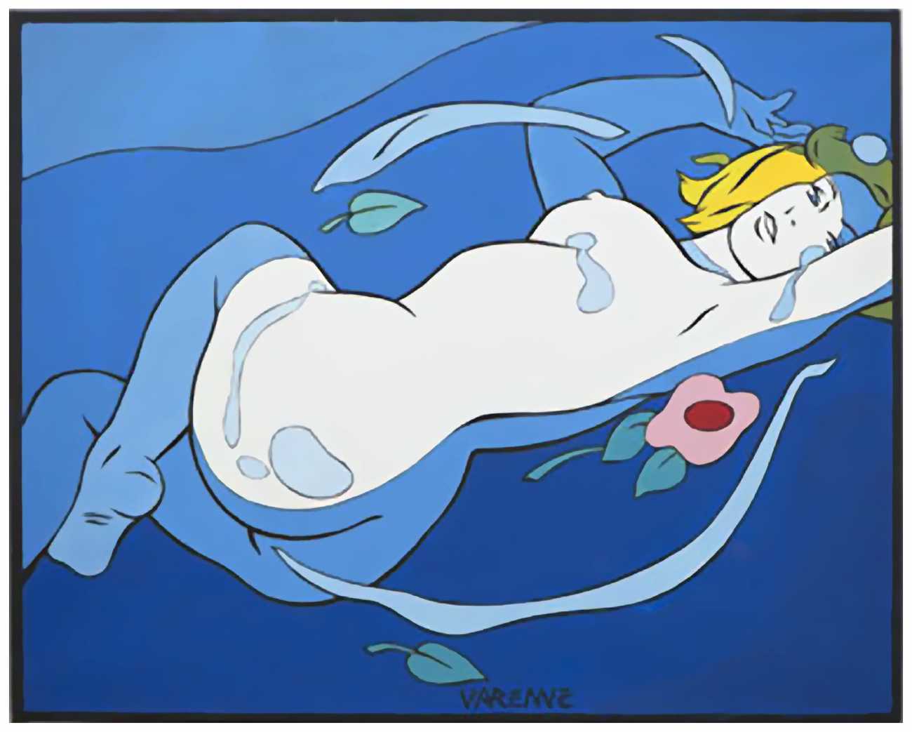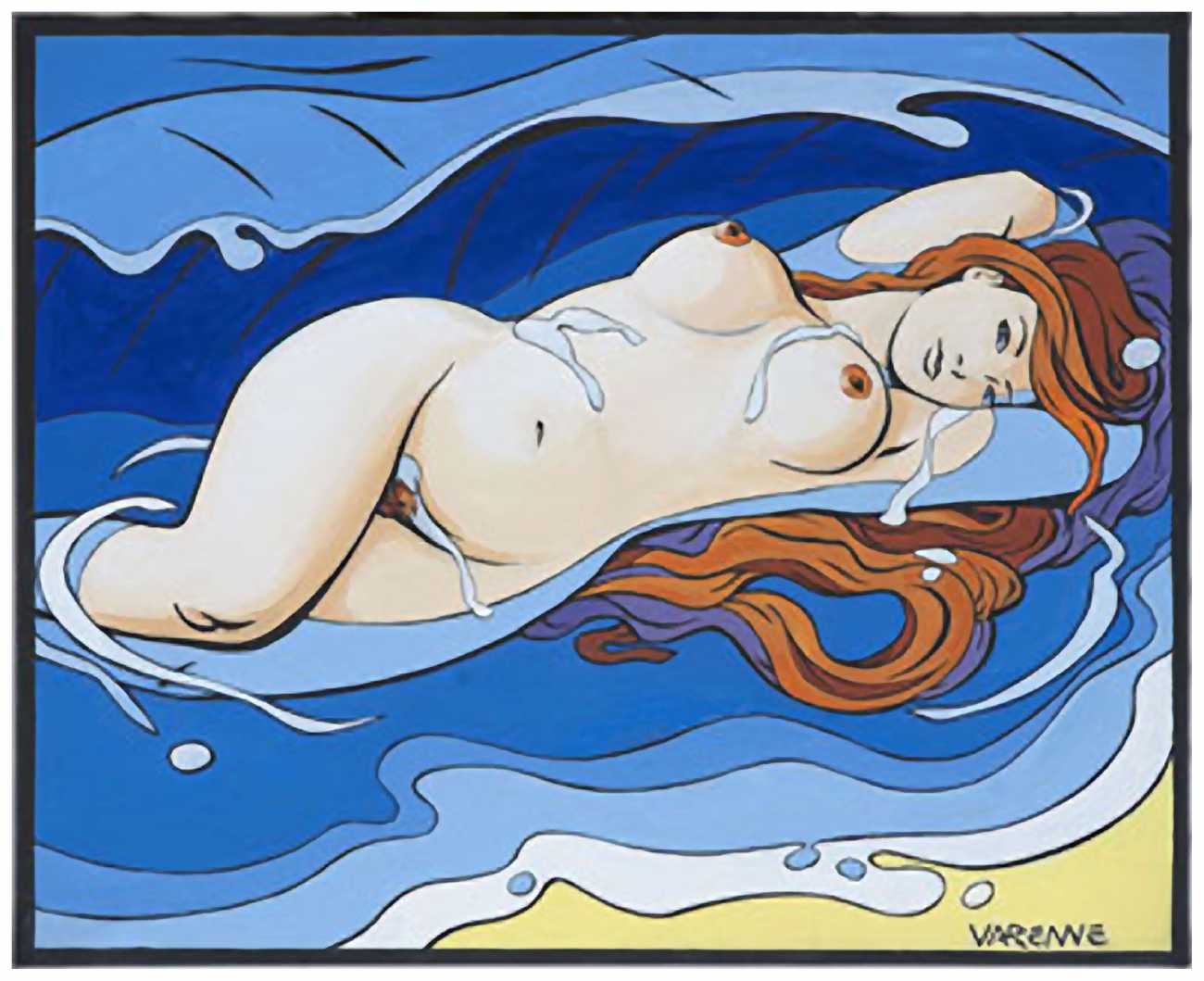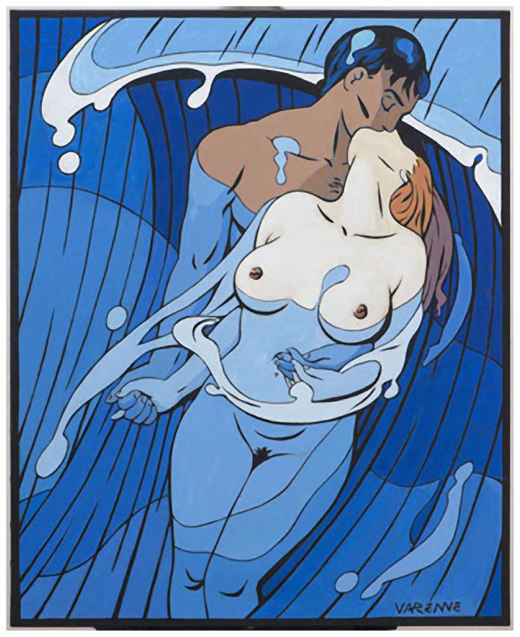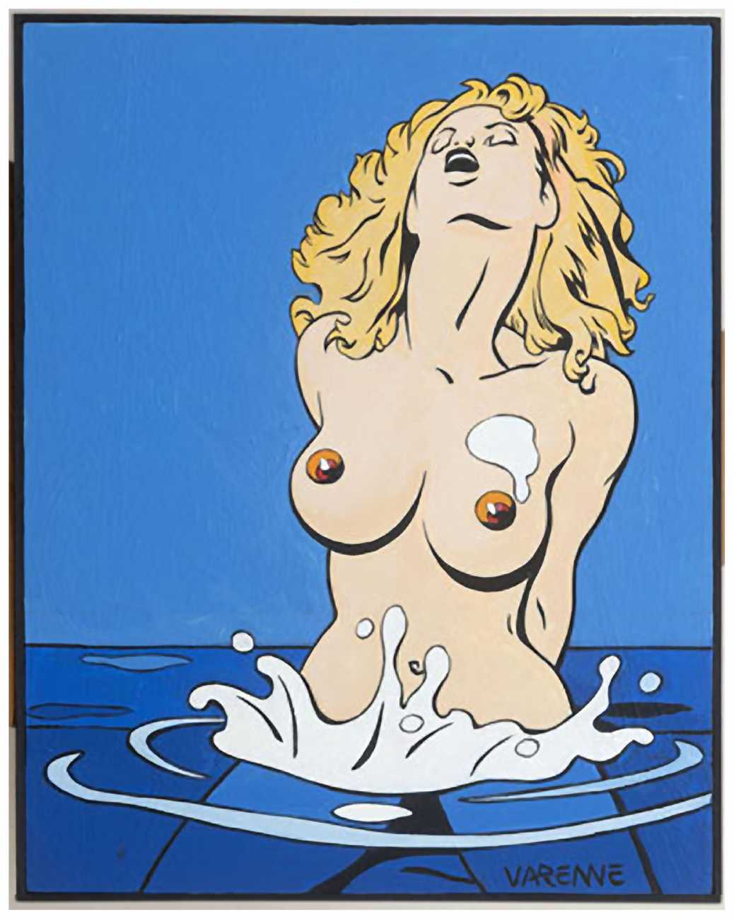 While continuing to work for Charlie Mensuel, Varenne also drew erotic stories for L’Écho des Savanes, including Erma Jaguar, later published in three volumes (1988–92), Corps à corps (Body to Body, 1987), Les larmes du sexe (The Tears of Sex, 1989), Amours fous (Mad Loves, 1991), and the portfolios Erotic Opera (1986), Fragments érotiques (1993), and Le goût des femmes (The Taste of Women, 2002). Most were published by Albin Michel, and some by Éditions Zanpano; Erma Jaguar was published in English by Catalan Communications in the United States.
