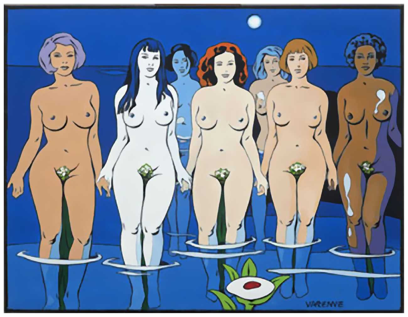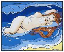 For the last decades of his life, Alex Varenne lived and worked in a studio apartment in Paris; he never married or had children, but enjoyed the company of a succession of ‘muses’, including cabaret dancer Barbara Amorosa, who in the introduction to the posthumous collection of Varenne’s work Barbara et les nouvelles Vénus (Barbara and the new Venuses, Zanpano, 2021), writes ‘Alex left us shortly after completing the creation of this comic. He drew until the end, making his life a work of art. You will find, reading between the lines and the drawings, the most intimate and authentic portrait of Alex, the man and the artist, but also an expression of his profound love for all women.’ His trademark pen and ink style, latterly enhanced with bright colour, makes his work instantly recognisable. Some may find it a little repetitive and predictable, but there is no doubt that he loved his subject matter.