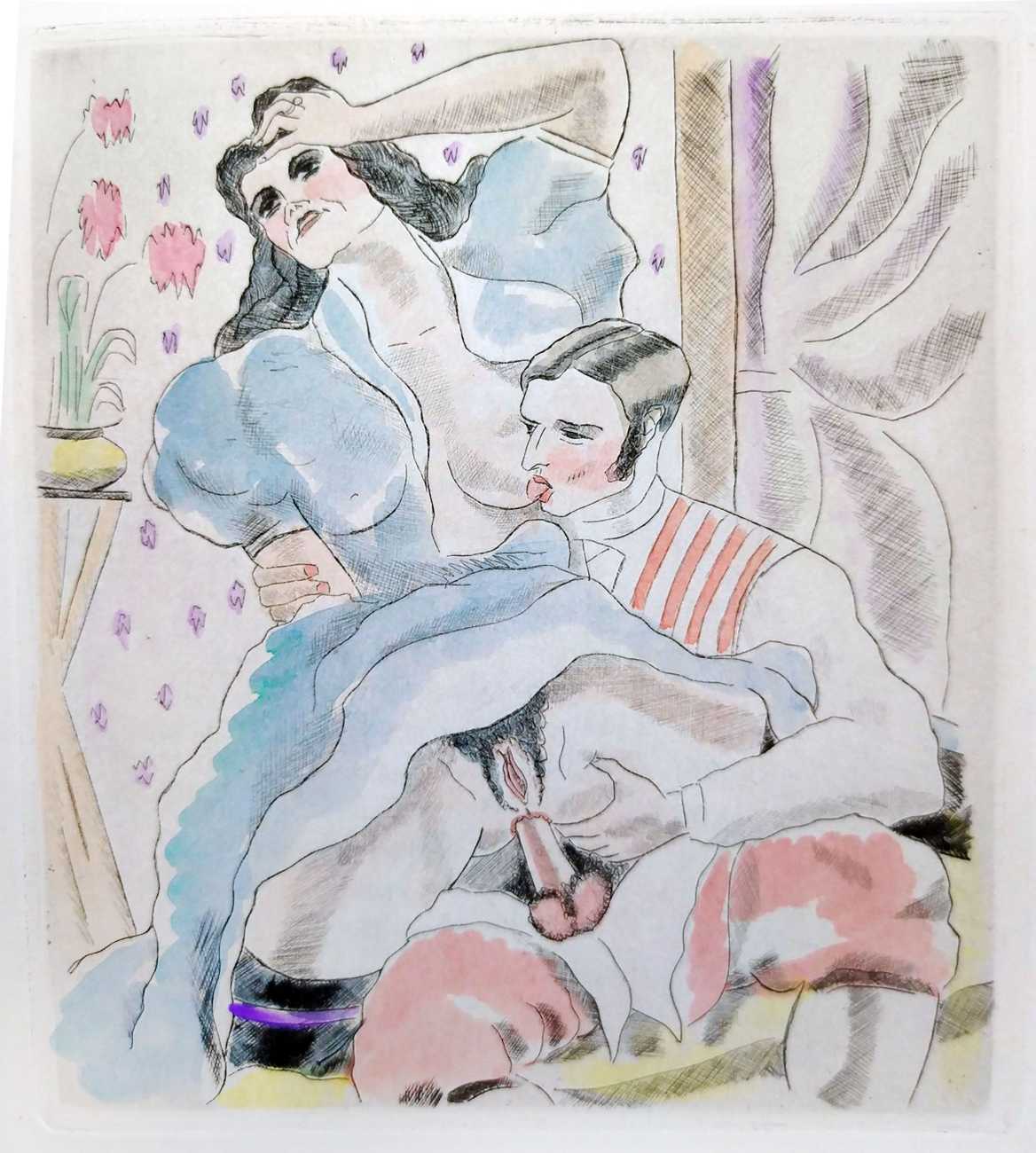 And his only known foray into erotic art in 1923? He was certainly interested in sex, and had the artistic training to match his fertile imagination. Shortly after World War I he started conducting an amorous liaison with Léontine Rachel, usually known as Alice, the high-society wife of a rich industrialist and close friend of Charles de Gaulle, Roger Olchanski. It was a marriage of convenience, and Alice would often stay with Virot in his chalet at Chamonix. When Alice fell pregnant she confided in her husband, who apparently accepted the situation, the son Daniel living happily as part of the family, with Virot as a frequent visitor. As Daniel’s daughter Sophie explained in a 2021 interview, ‘Alex was very attractive to women. Not only was he handsome, he had a free spirit that ensured he lived a very comfortable life. He never stood still, didn’t fear anything or anyone. He always lived with his luggage ready at home and a map of the train times in his pocket. He never married – he loved women far too much for that. In fact, he always told my father to avoid marriage and enjoy life.’