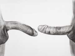 By the age of ten I became aware of my appearance. Or, more precisely, the ‘flaws’ in my appearance. Shortly after, I was aware of my sexuality and what it meant to others, specifically men. I understood early on that as a girl, those two things seemed to trump any other quality I had (besides my disagreeable personality which often got me scolded, but was probably a response to the steady stream of said objectification). Art gave me a voice and an opportunity to regain power and control and eventually the language to understand and communicate my experiences, along with therapy and gender studies. Through my work, I want to portray a heterosexual female perspective that I rarely, if ever, got to see when I was younger; one that’s assertive, unabashed, unapologetic, and clear of internalised misogyny.