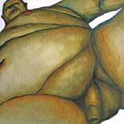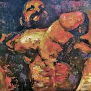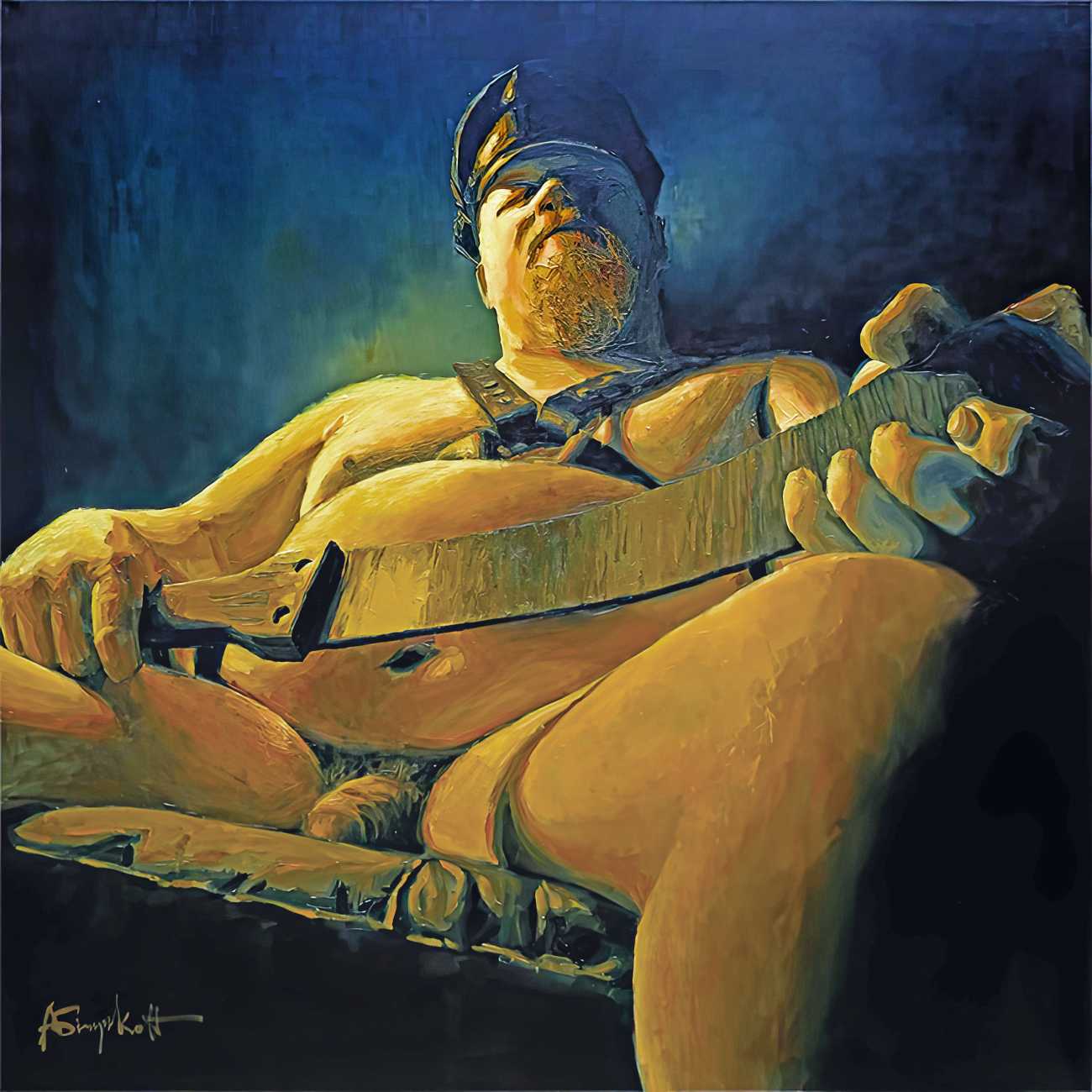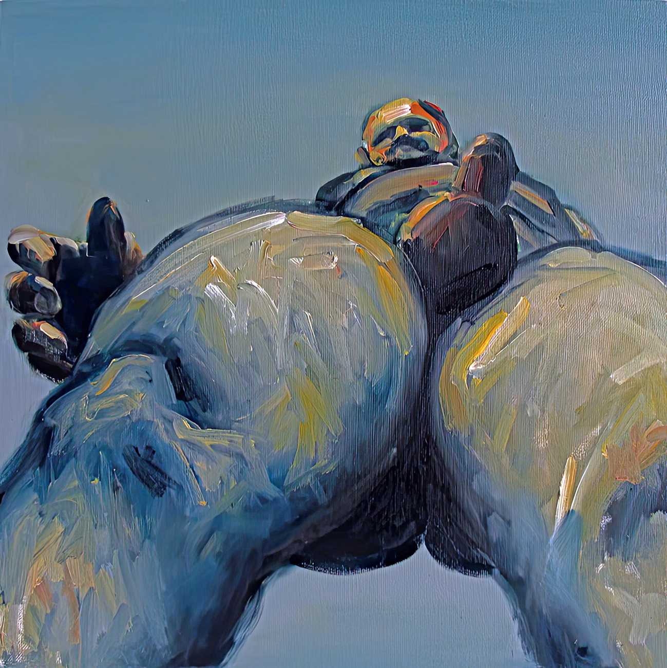Painting naked men is only one aspect of his work – one of his previous shows was dedicated to the terrorist attack in Beslan in Chechnya. He has also established a name in the experimental music scene under the stage name of Muhmood, releasing a number of records and soundtracks for art shows and collaborations with other artists.