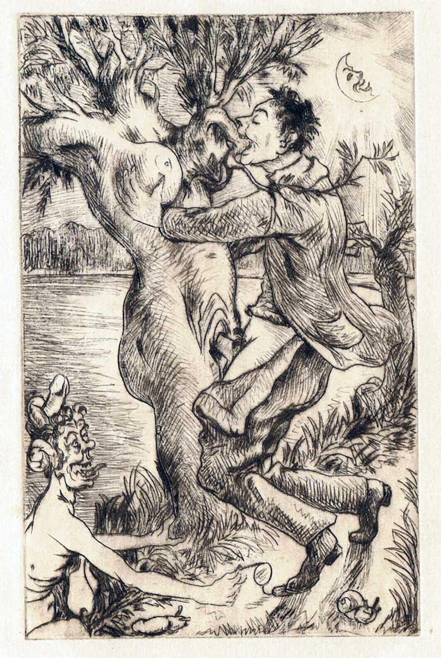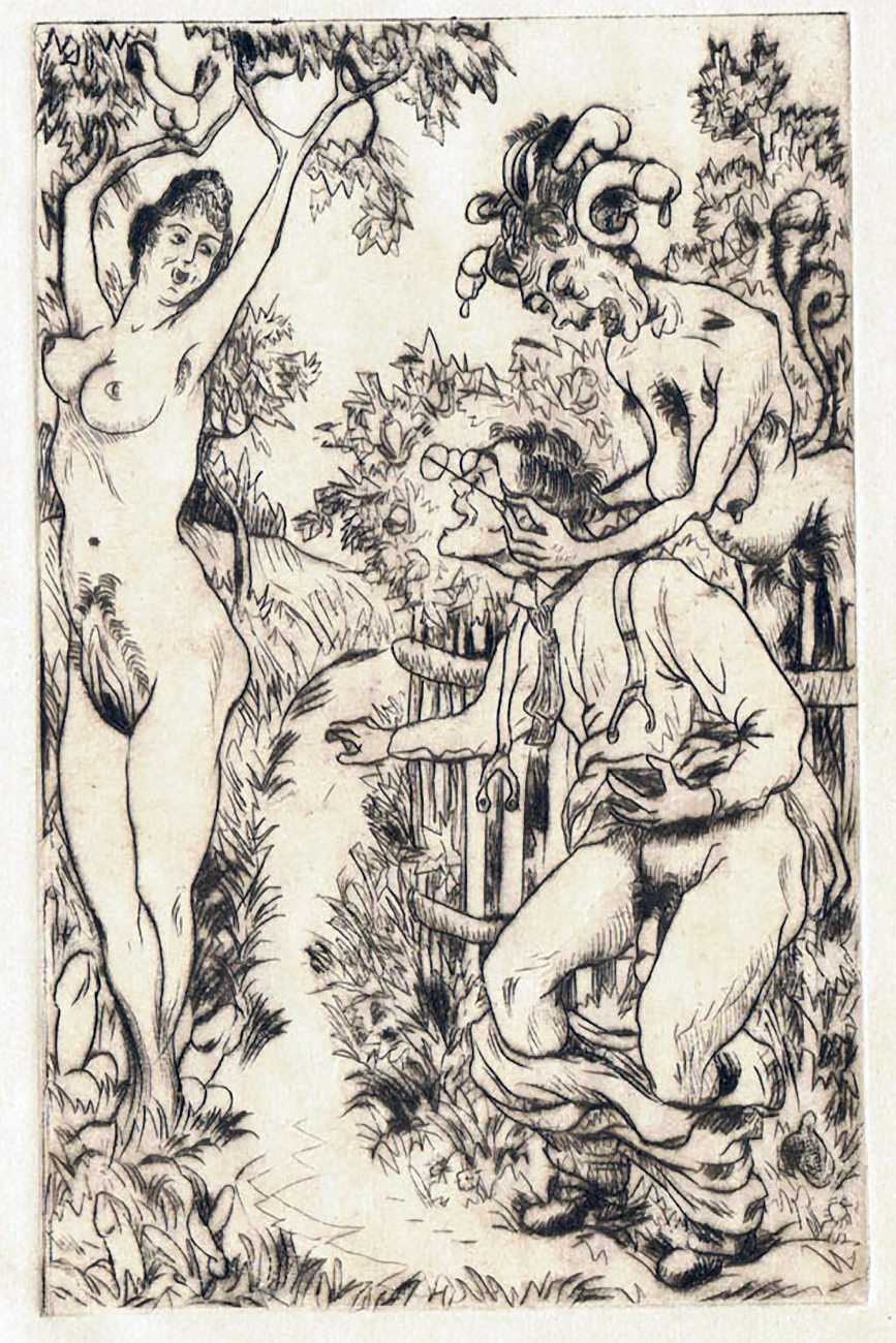 Hanf was closely linked to art life in his home town of Erfurt for over half a century, which helps explain the different styles and techniques in his work. These included pencil drawings, etchings, copperplate engravings, woodcuts, linocuts, watercolours, and oil paintings, while his subjects covered portraits, nudes, book illustrations, bookplates, commercial graphics, postcards and typeface design. He recorded much of what became known as ‘the Erfurt idyll’, an idealised landscape which was rapidly disappearing, capturing the streets, alleys and squares of Erfurt and its surroundings before wartime bombing and industrialisation changed them completely.