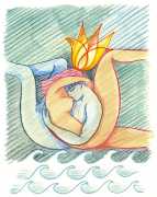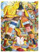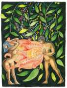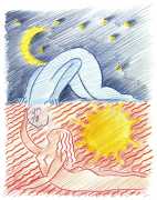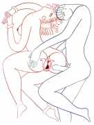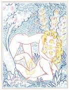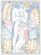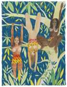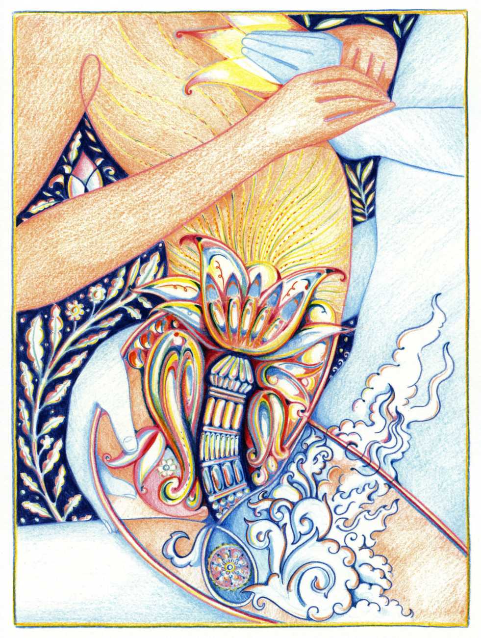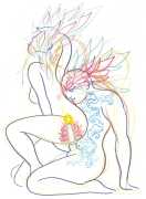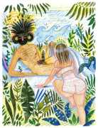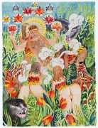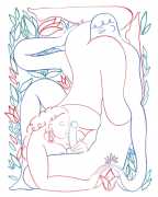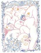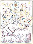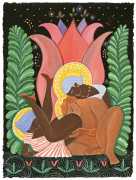 Alphachanneling’s works can look almost like children’s book illustrations, their soft palette and breezy lines conjuring a magical realm just outside the everyday. Look closer, however, and you’ll notice a couple sixty-nining, or a man eating out a giant flower, or a woman perched atop her lover’s face. For the artist, the key to finding his enchanted pleasure dome is striking a balance between the sacred and the profane without any sense of embarrassment. He explains, ‘What I think it takes is for anyone to be attracted to something comes from being activated by it, being in tune with it, being open to themself and who they are in relationship. It’s a really important feeling.’ Much of Alphachanneling’s work is inspired by Taoist tradition, in which expressing sexuality is an essential part of being in touch with the divine.