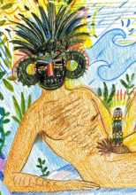 When asked about his influences, Alphachanneling mentions indigenous art, Robert Crumb’s drawings, BDSM, and Federico Fellini’s dream journals – ‘He documented his dreams every day, had to get them out on paper, often as simple drawings. I identify with that. I don’t need to make it beautiful, I just need to get it on paper. A lot of children’s art doesn’t always make sense, but you can tell that it comes directly from their world of experience and impression. They’re vessels for a larger meaning, a way of opening up the viewer to different kinds of energy.’