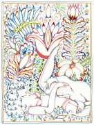 Why ‘Alphachanneling’? In true Bay Area hippy-psychedelic tradition he describes alphachanneling as ‘a simple thought experiment, a sanctified space within my imagination, the exclusive realm of all that amplifies me; my dreams, my joys, my desire, entirely free of self-censorship. I call this personal space The Utopian Erotic, and the boundaries of this world are simple: all the good things, only the good things.’ Although he maintains that he’s trying to avoid a male-centric expression as an artist, and many of his audience have assumed from his use of pastel colours that Alphachanneling must be a woman, there are signs that he can sometimes tend towards a more conventional male-dominant, penetrative model of sexuality.
