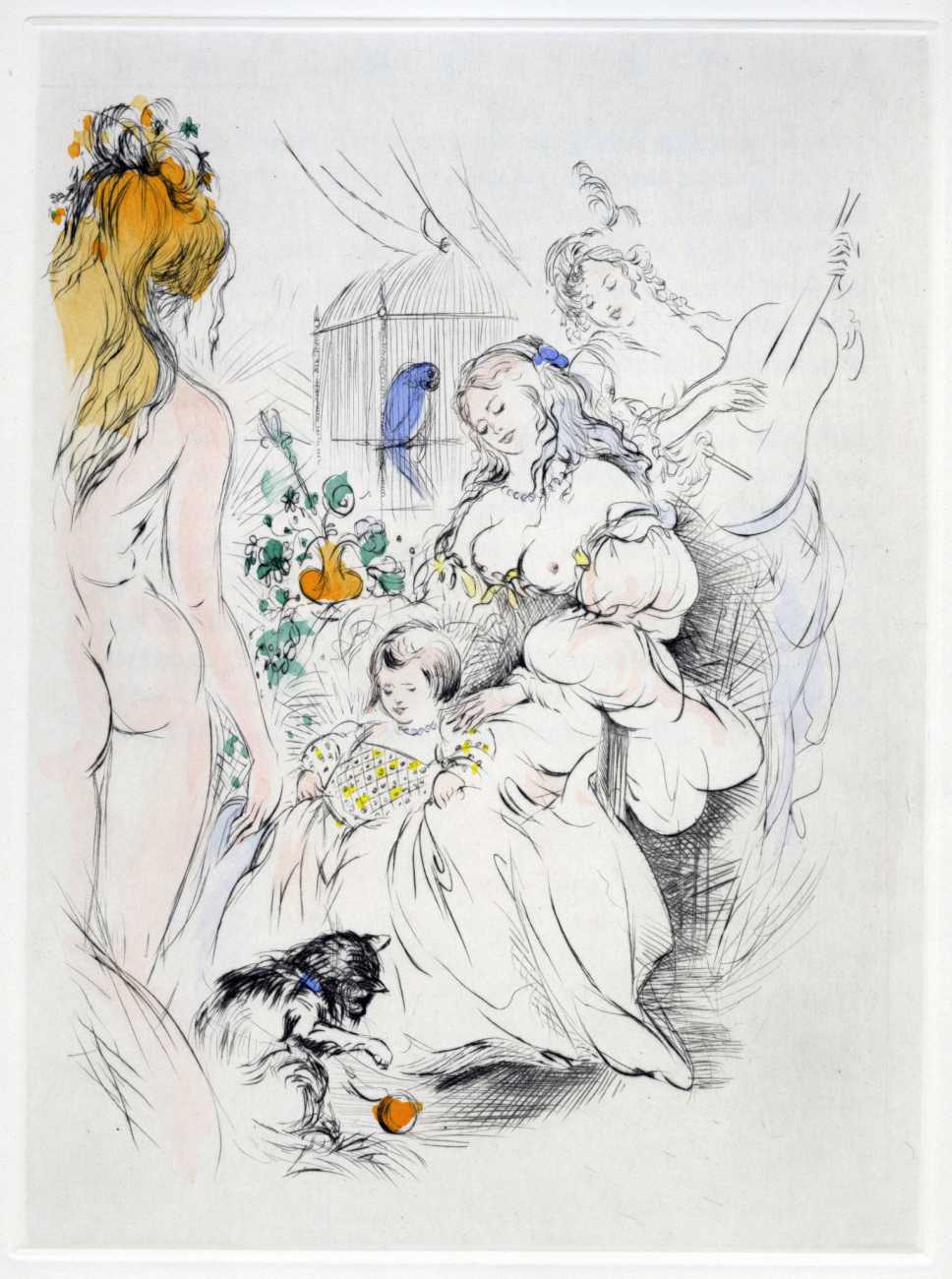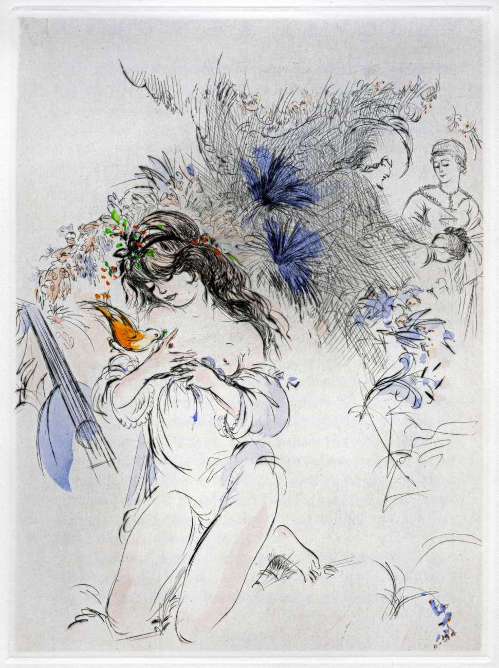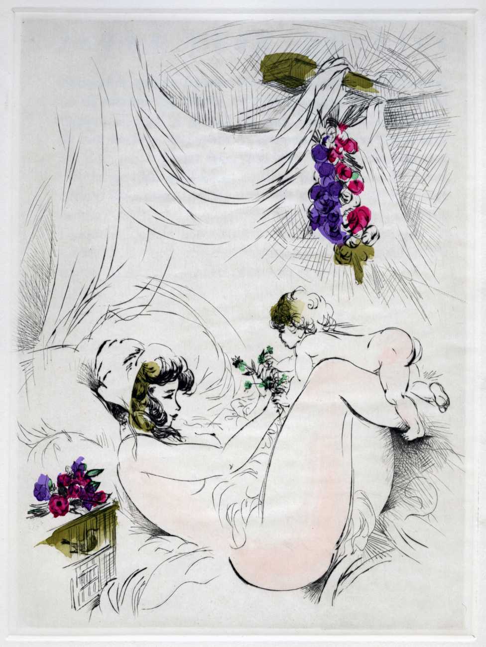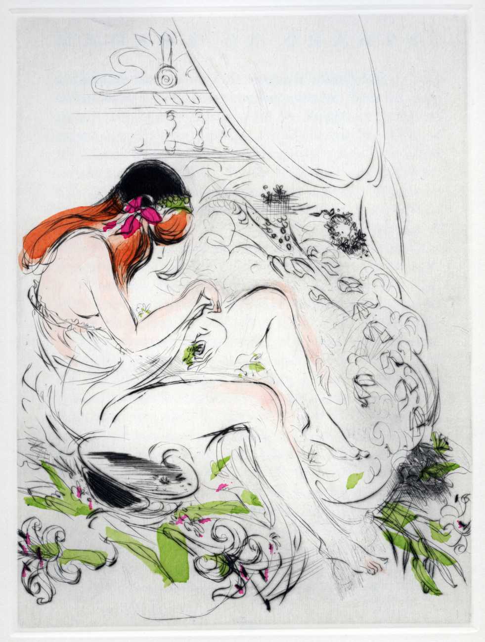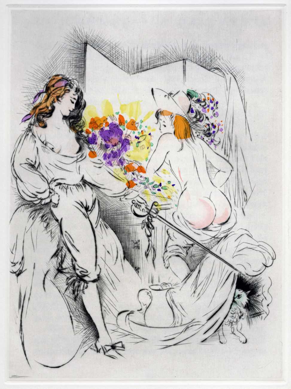 Not wanting to embarrass her family, she chose the pseudonym ‘Madame ***’ for her more explicit work, of which Florilège is by far the most original and daring. In addition to book illustrations she produced numerous watercolours, drawings and engravings which she exhibited regularly at the Salon d’Automne.