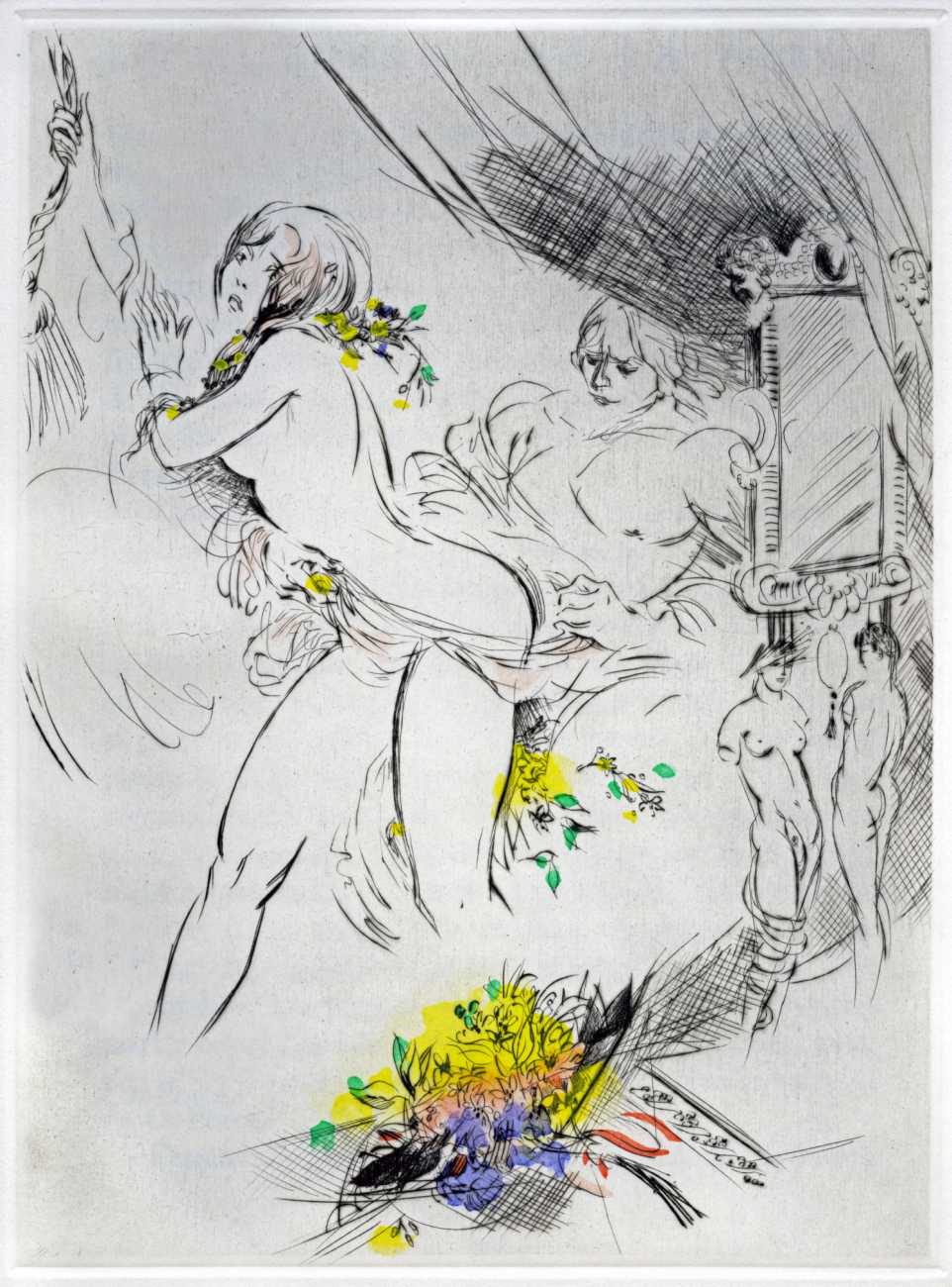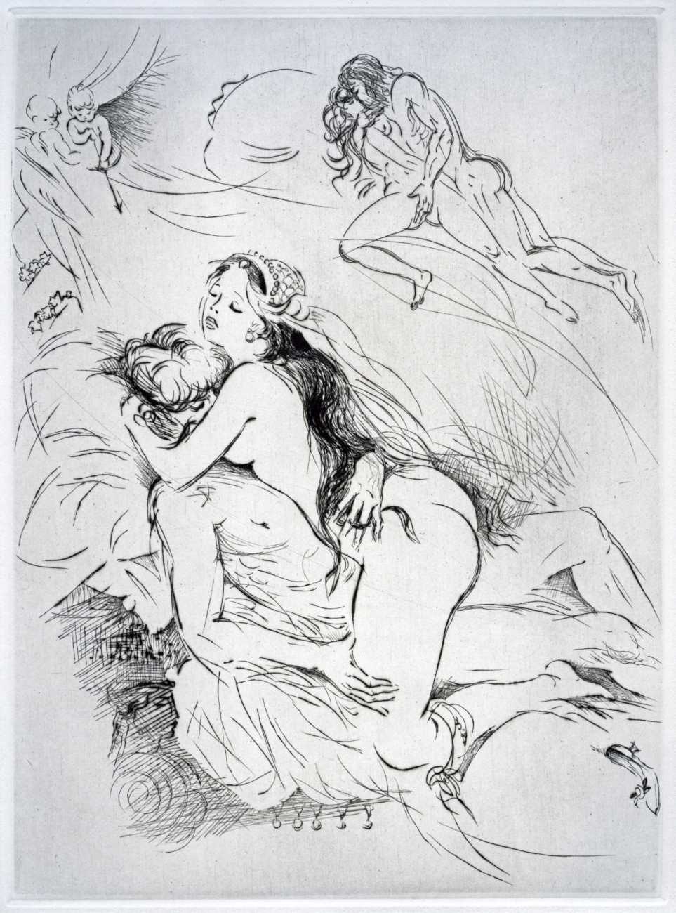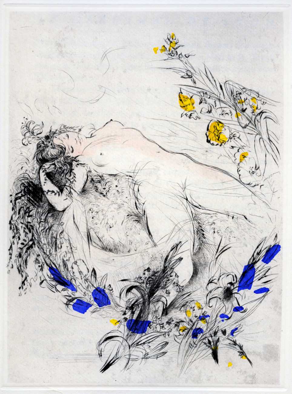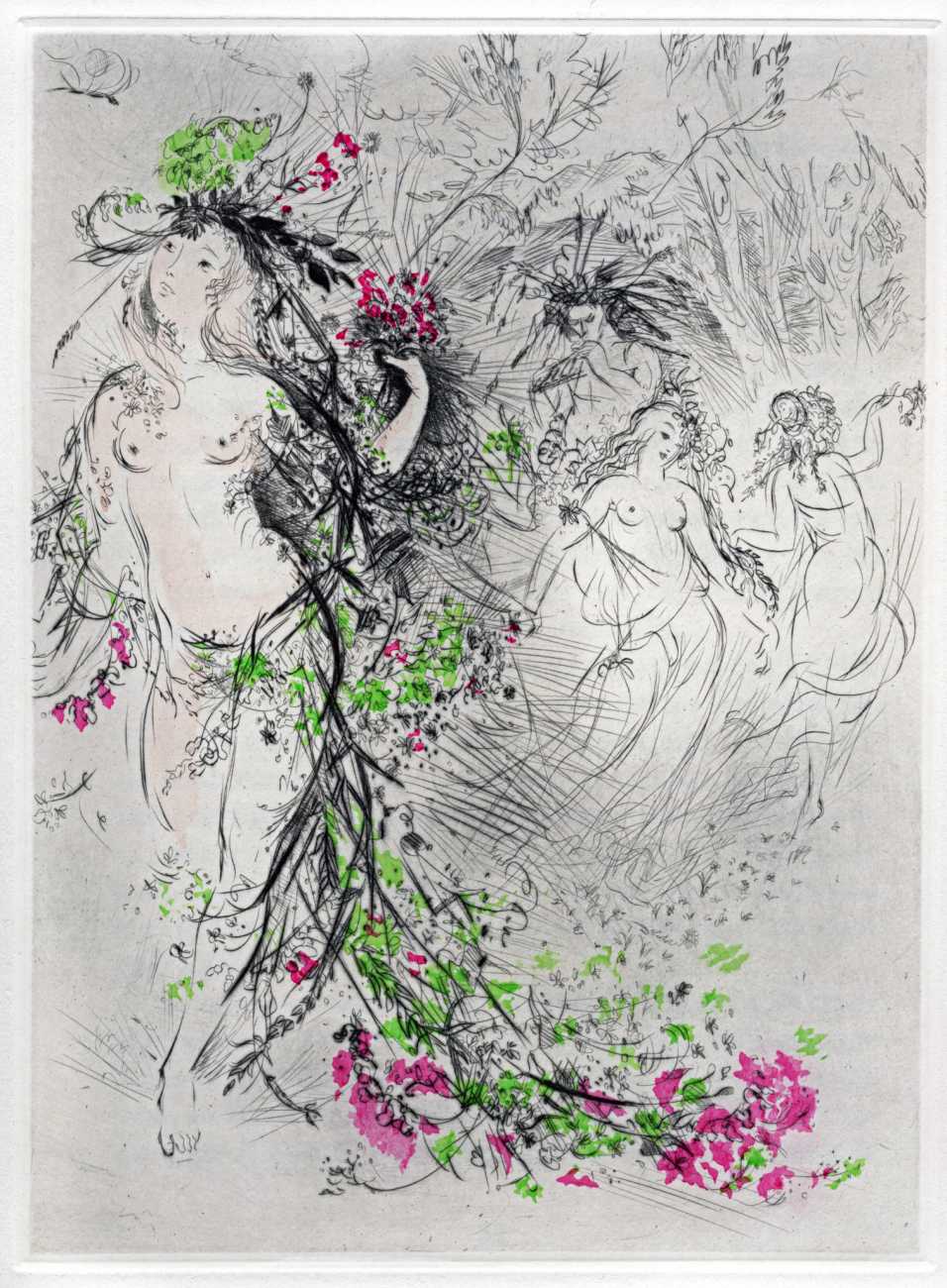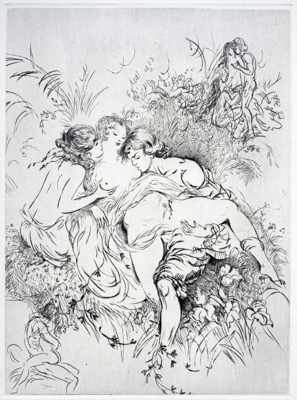 Not wanting to embarrass her family, she chose the pseudonym ‘Madame ***’ for her more explicit work, of which Florilège is by far the most original and daring. In addition to book illustrations she produced numerous watercolours, drawings and engravings which she exhibited regularly at the Salon d’Automne.
