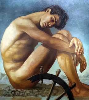 Undoubtedly gay himself, Soungouroff was known predominantly as an artist who dealt unabashedly with themes and images relating to gay life and culture. Though his prolific output included women and girls, and some religious images, he was predominantly a painter of beautiful boys, haunted by a particular type of young man with full lips and wistful eyes. As he wrote of his subjects, ‘My sailors, my fishermen, my gypsies, my legionnaires, my St Sebastians, are all to some extent absent and distant, but they are all beautiful’.