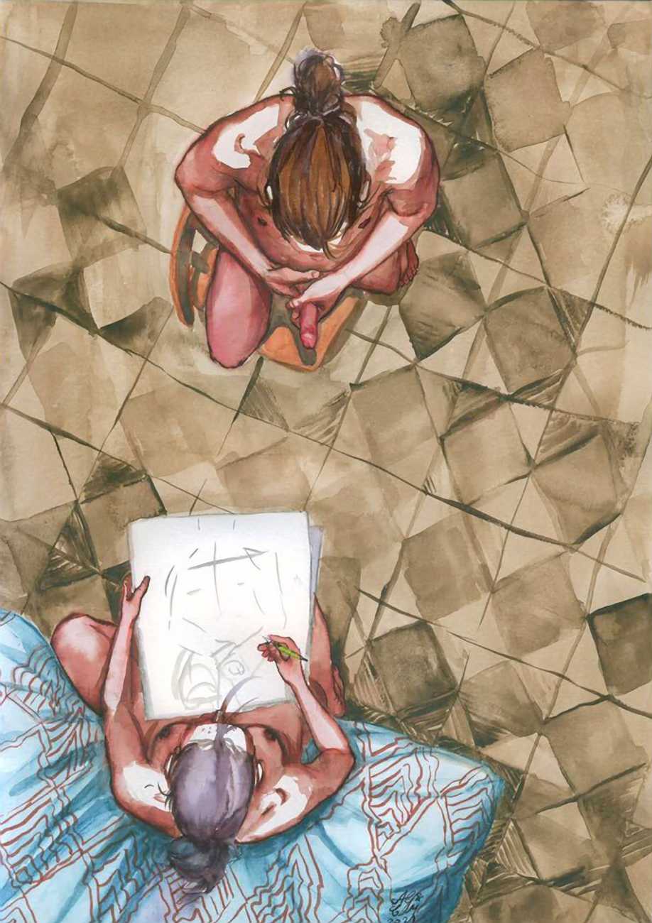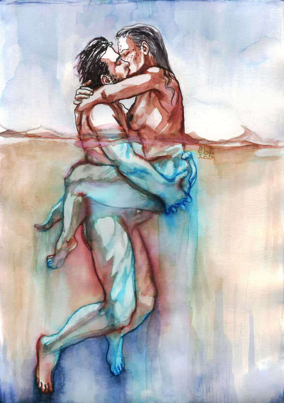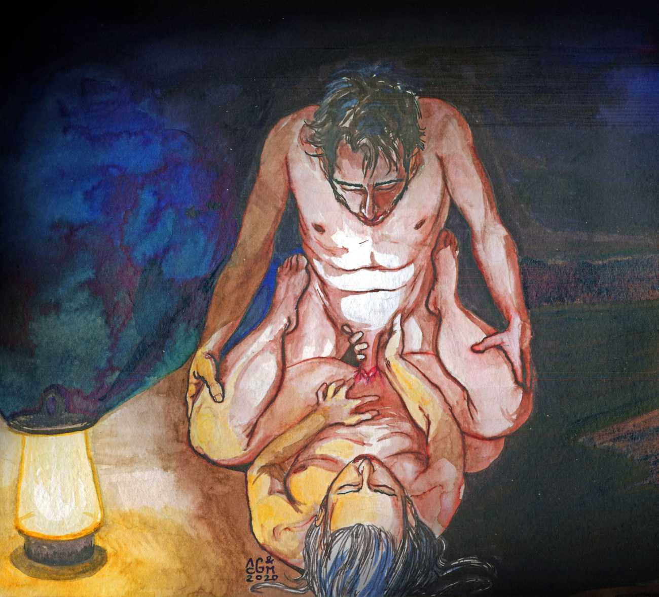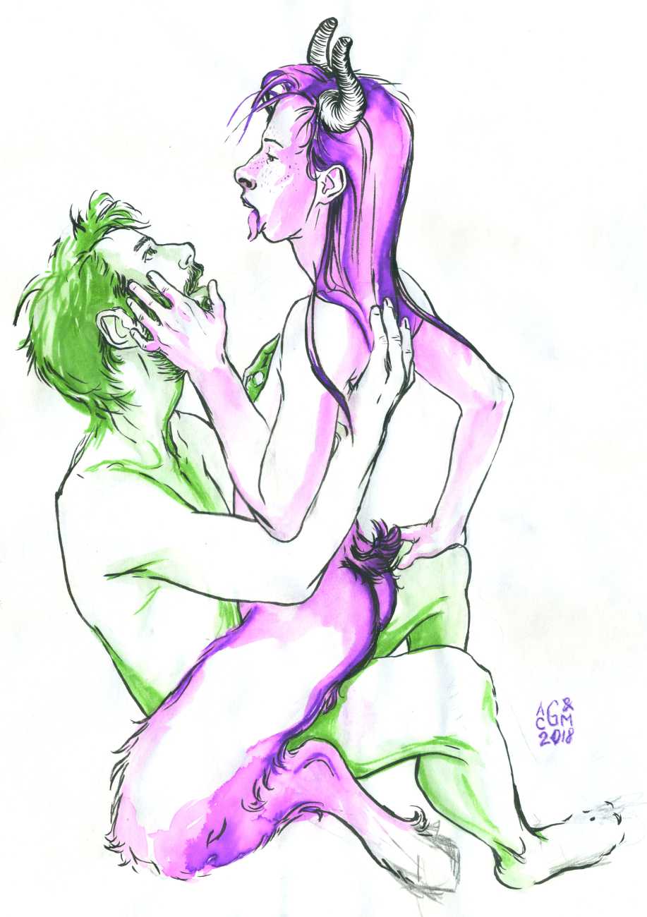 She became involved in computer graphics before it was part of the university curriculum, which helped her find work in advertising and gaming graphics. While she continues to work mostly in commercial art, she has branched out into comic book illustration, including both historic and social subjects, and whenever possible making time to explore her new passion, erotic illustration. Her interest in erotic art, and in exploring a variety of media in which to interpret it, coincided with a move in 2018 to Timișoara, where she finally met up with her artist muse ‘Faun’ having been online friends for a couple of years.