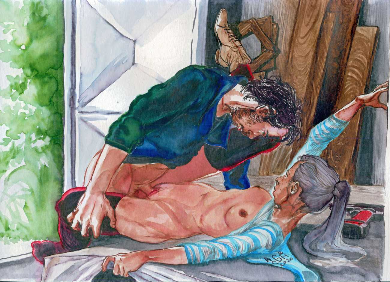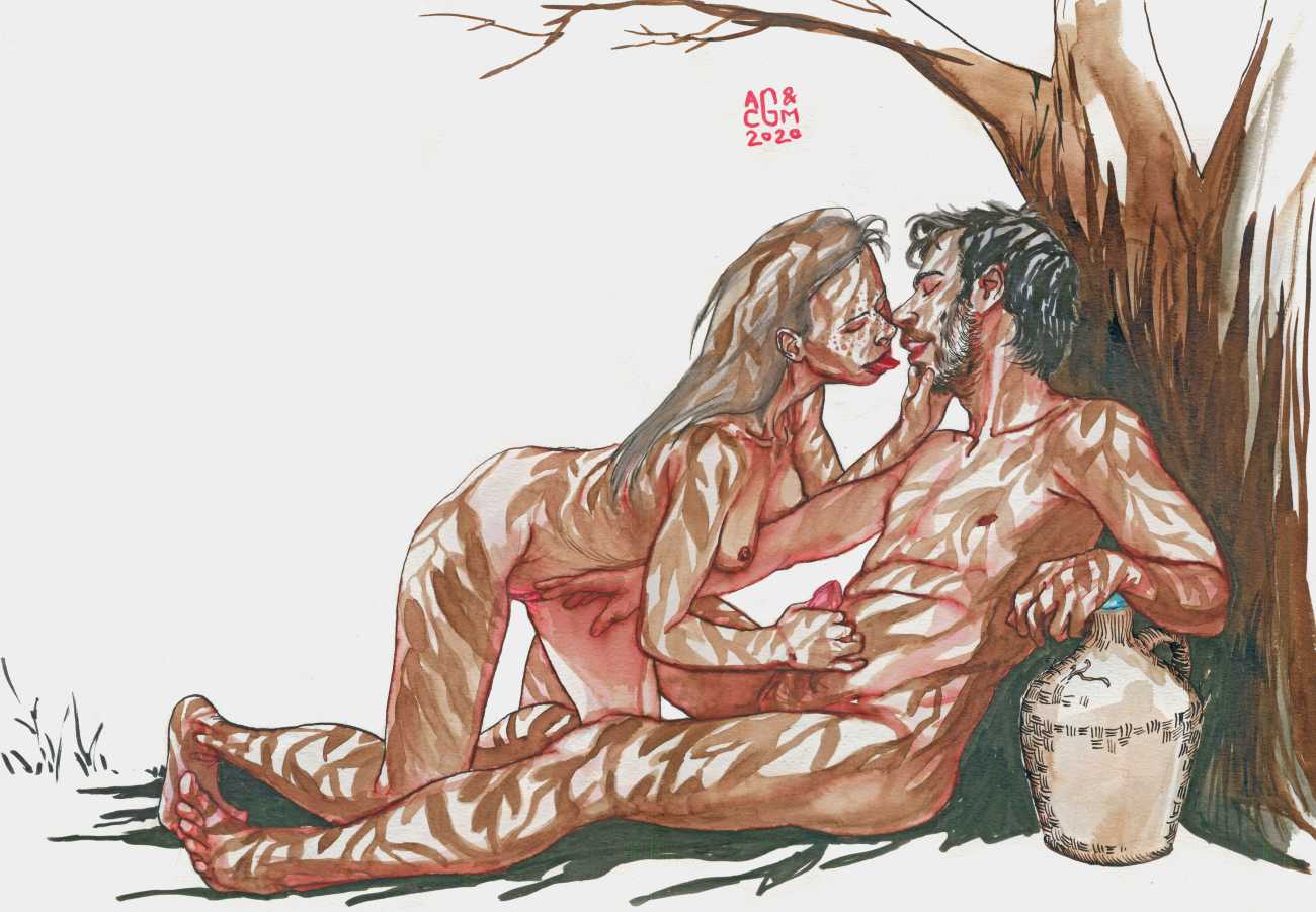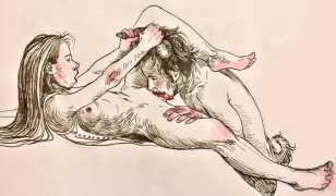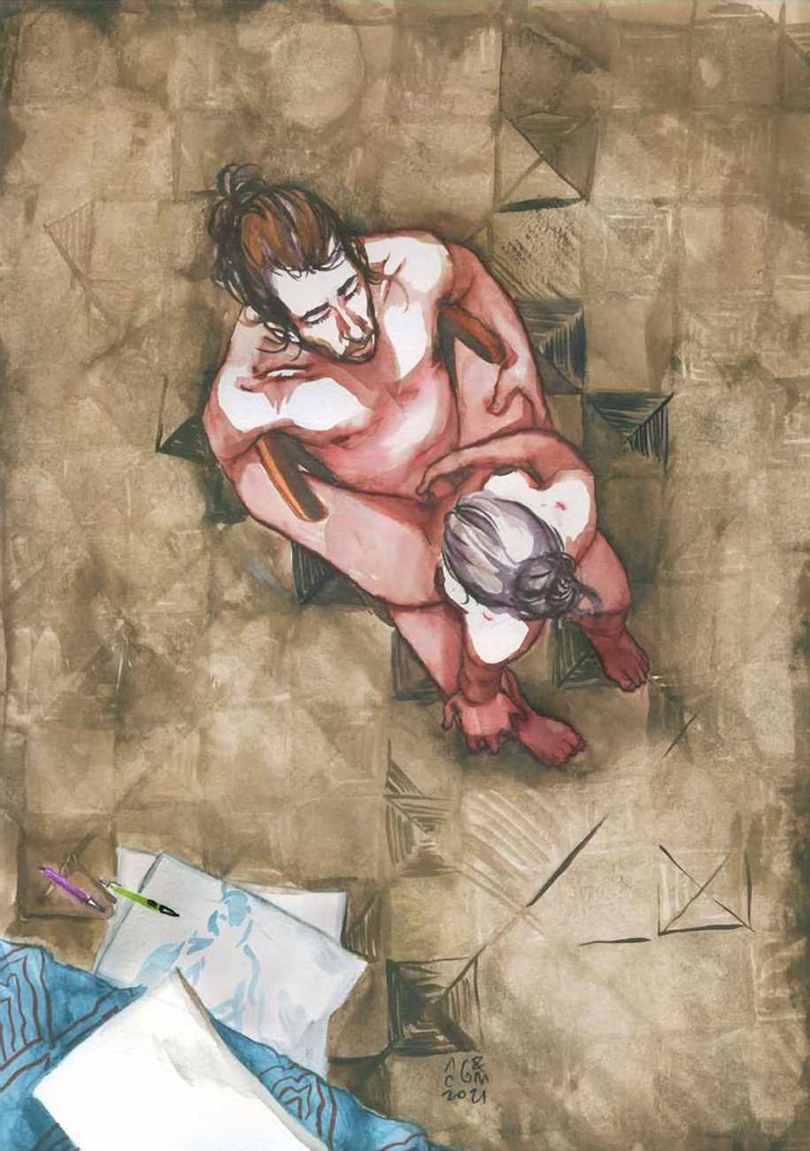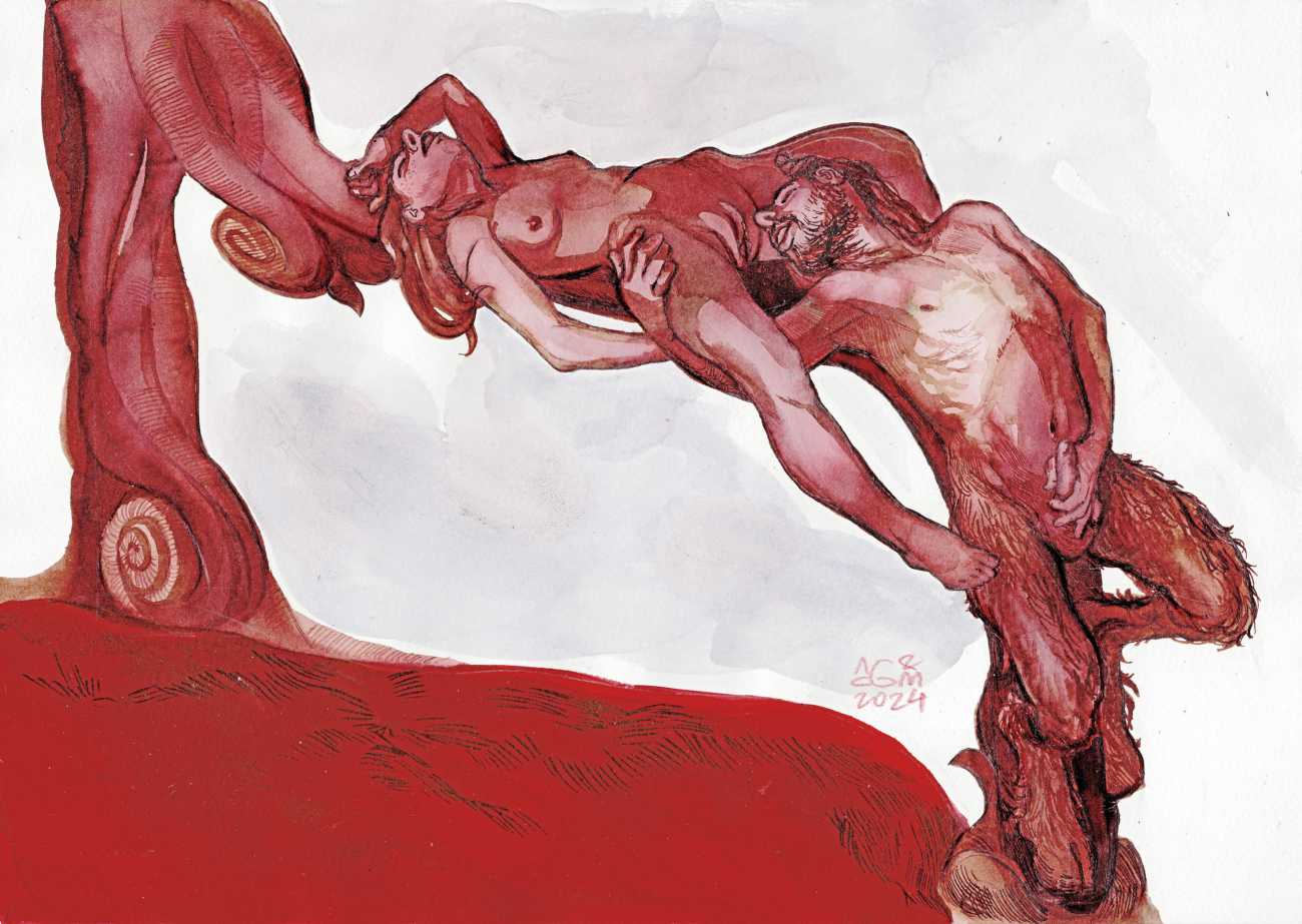 She became involved in computer graphics before it was part of the university curriculum, which helped her find work in advertising and gaming graphics. While she continues to work mostly in commercial art, she has branched out into comic book illustration, including both historic and social subjects, and whenever possible making time to explore her new passion, erotic illustration. Her interest in erotic art, and in exploring a variety of media in which to interpret it, coincided with a move in 2018 to Timișoara, where she finally met up with her artist muse ‘Faun’ having been online friends for a couple of years.