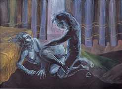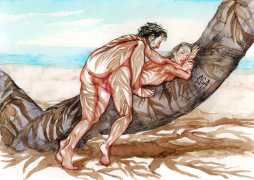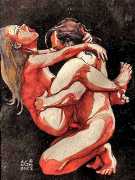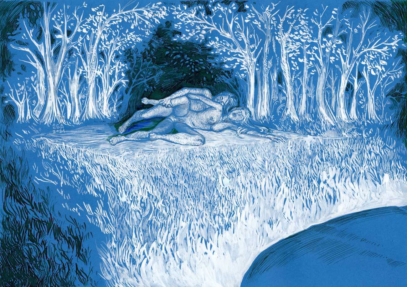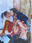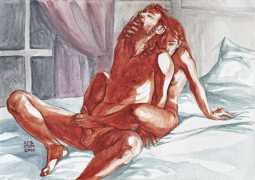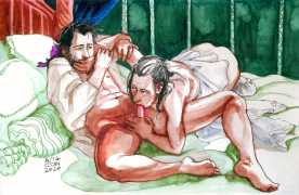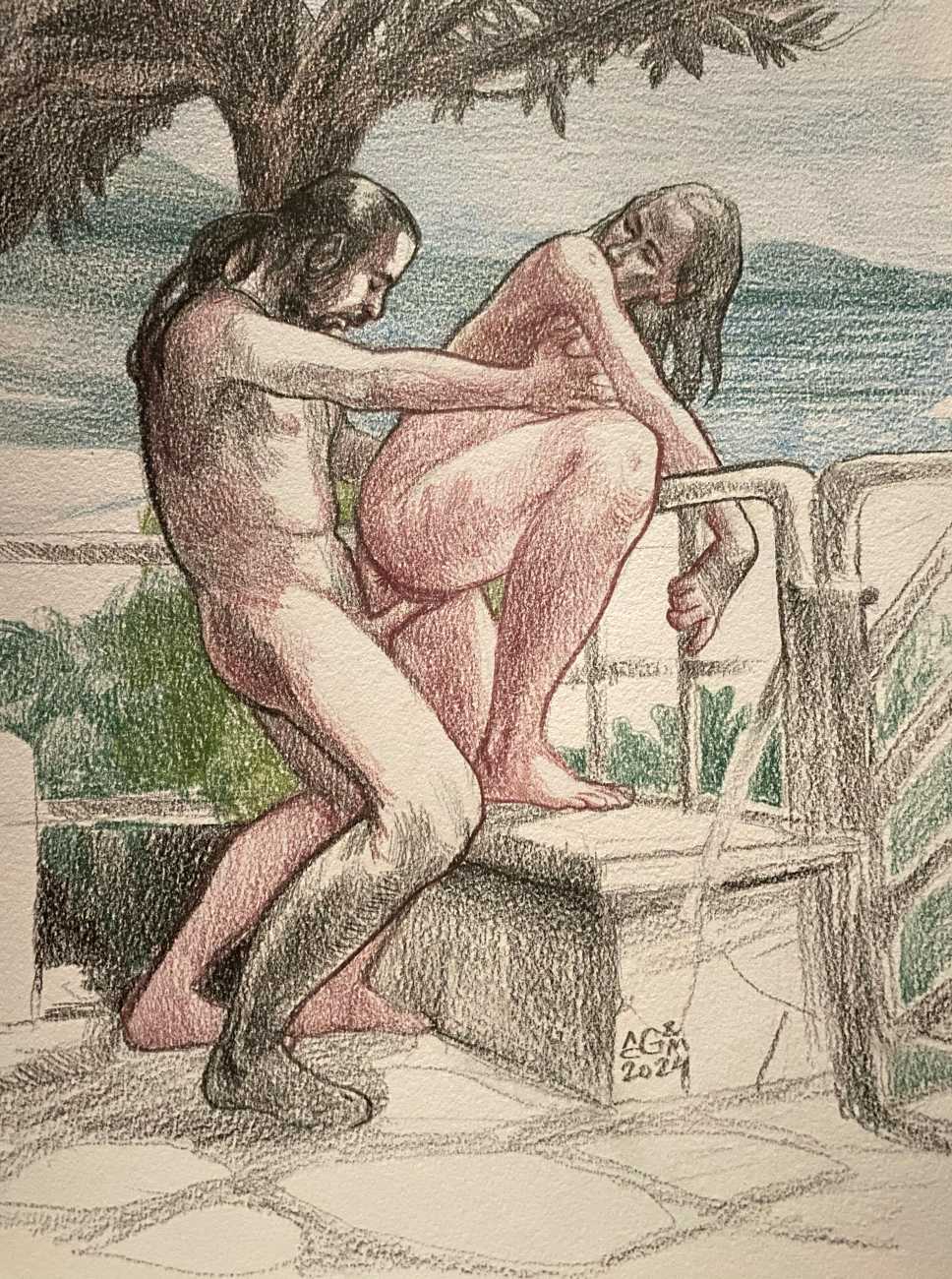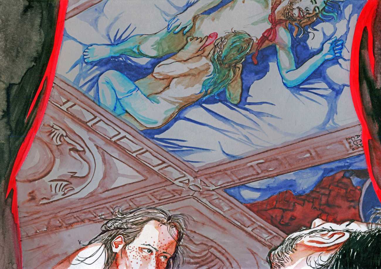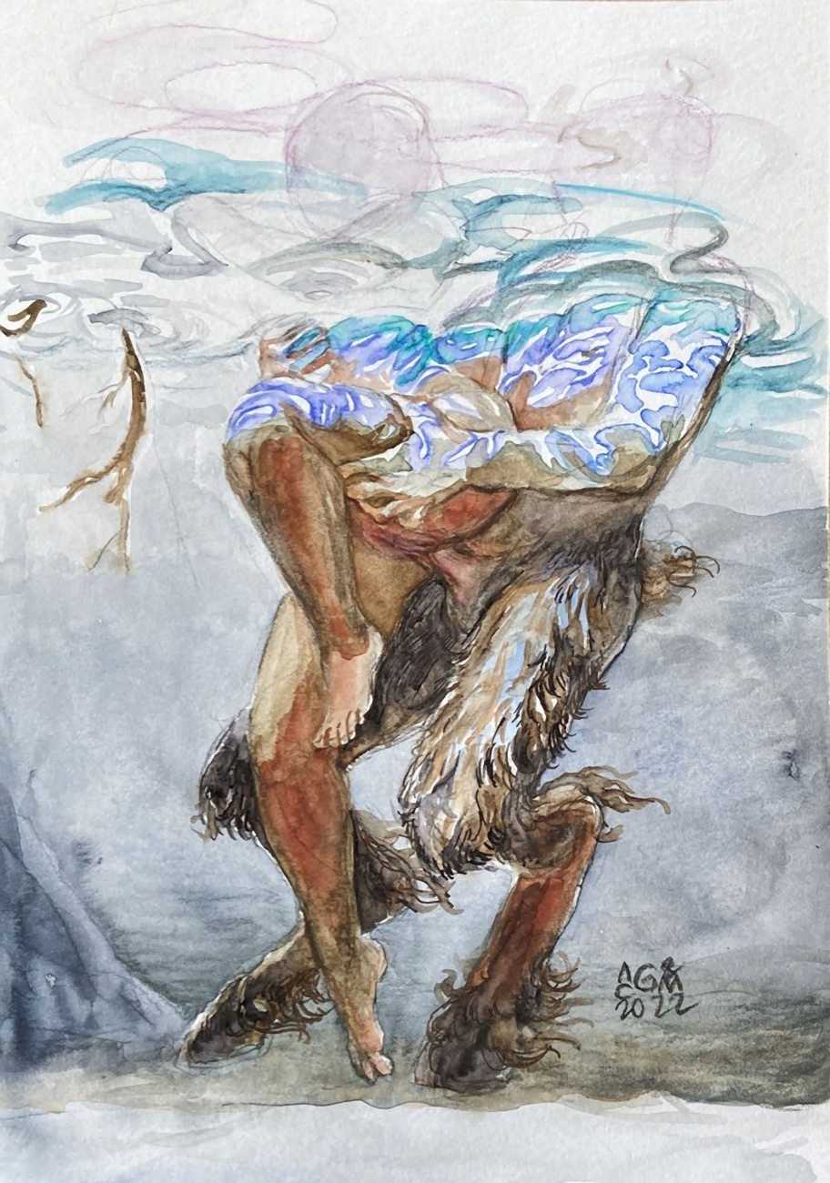 She became involved in computer graphics before it was part of the university curriculum, which helped her find work in advertising and gaming graphics. While she continues to work mostly in commercial art, she has branched out into comic book illustration, including both historic and social subjects, and whenever possible making time to explore her new passion, erotic illustration. Her interest in erotic art, and in exploring a variety of media in which to interpret it, coincided with a move in 2018 to Timișoara, where she finally met up with her artist muse ‘Faun’ having been online friends for a couple of years.