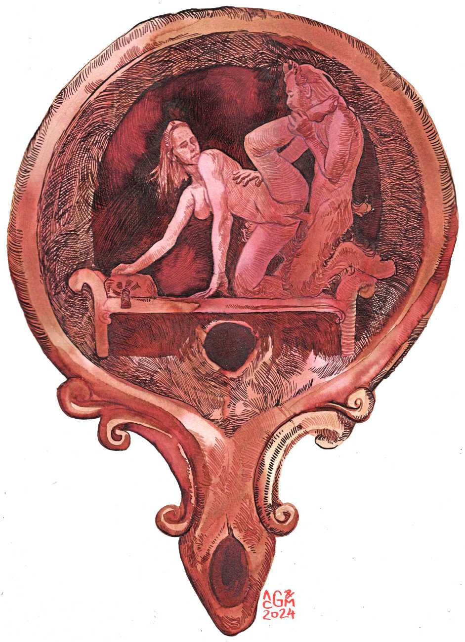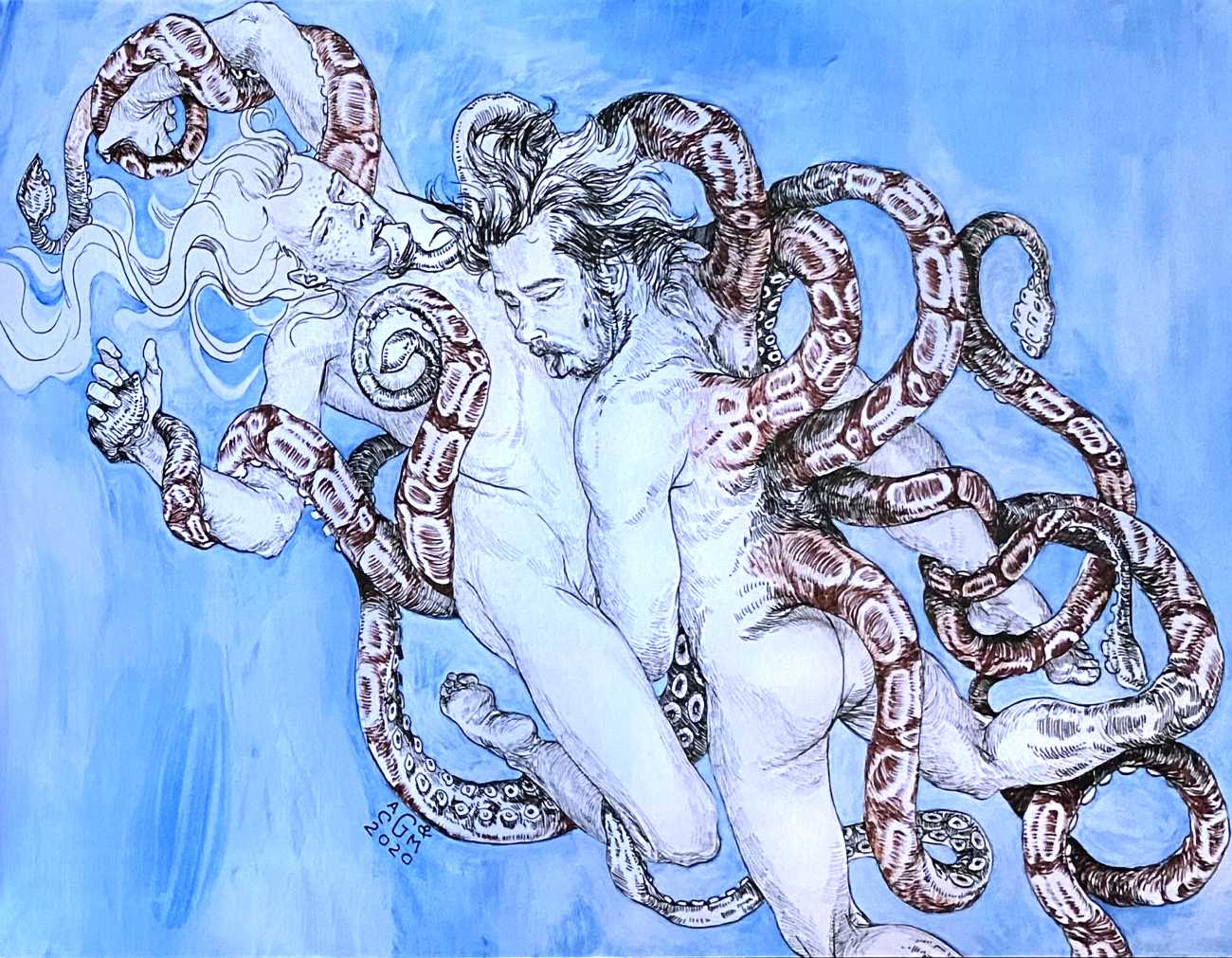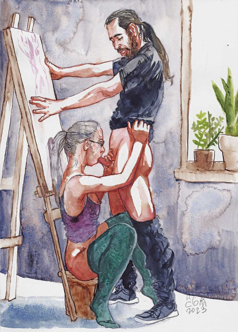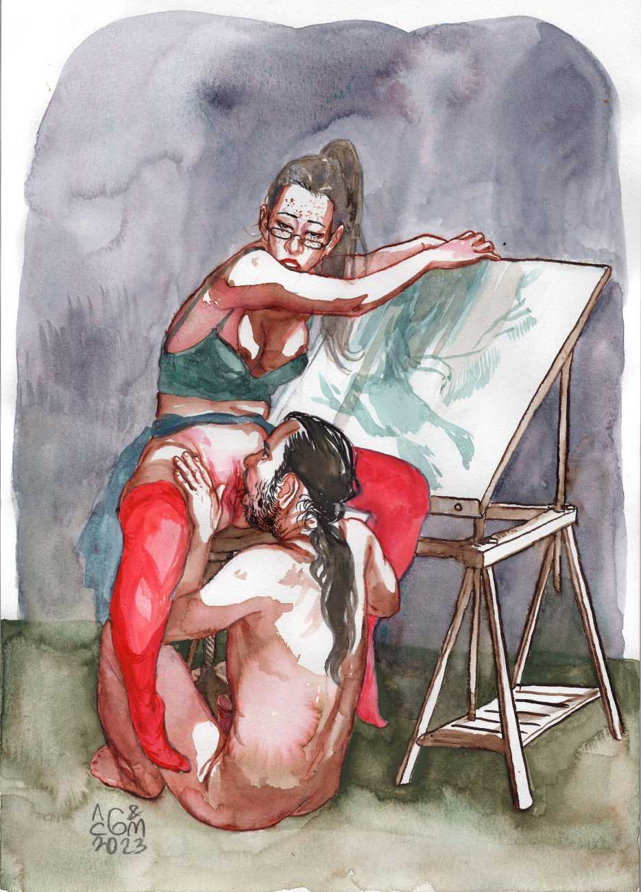 Like many erotic artists, Anca Georgescu has faced the challenges of finding platforms for her work, especially online. She started posting on Instagram in 2019, but lost all her followers when Meta cancelled her accounts; she then met with the same fate on Twitter, and now shows her work online at Art Provocateur. She has, however, exhibited at the Seattle Erotic Art Festival, DirtyShow Detroit, Tucson Erotica, and the London Erotic Art Exhibition.
