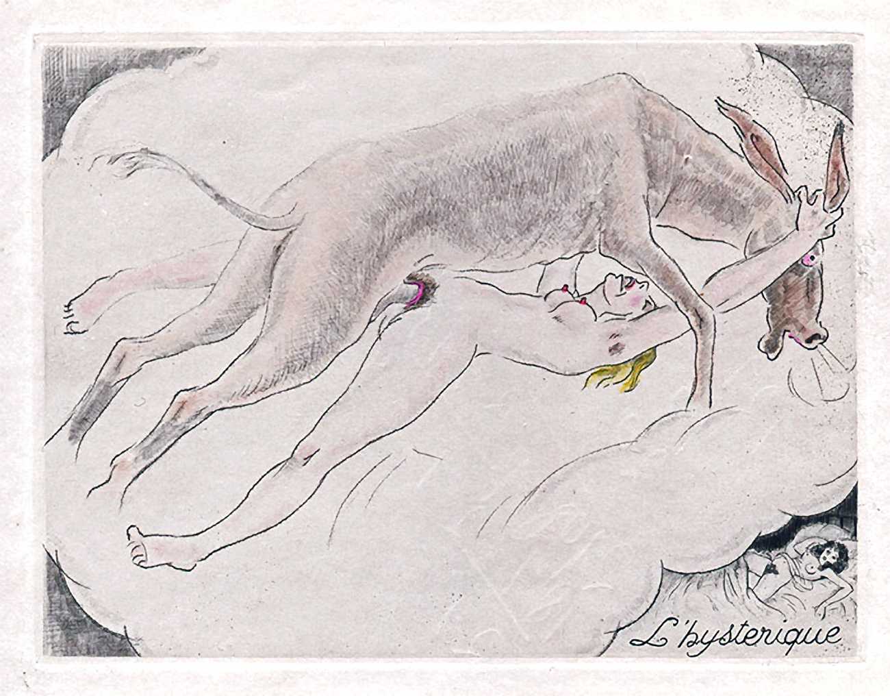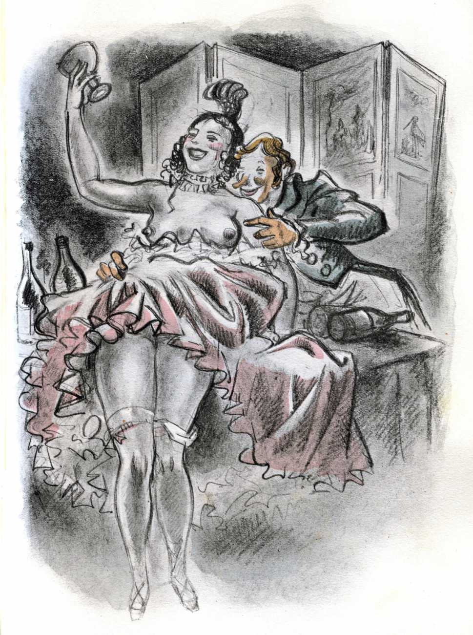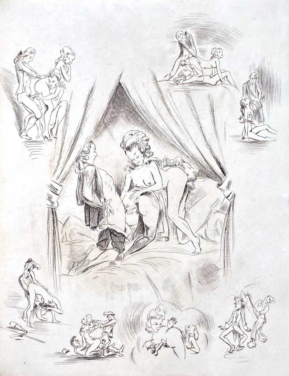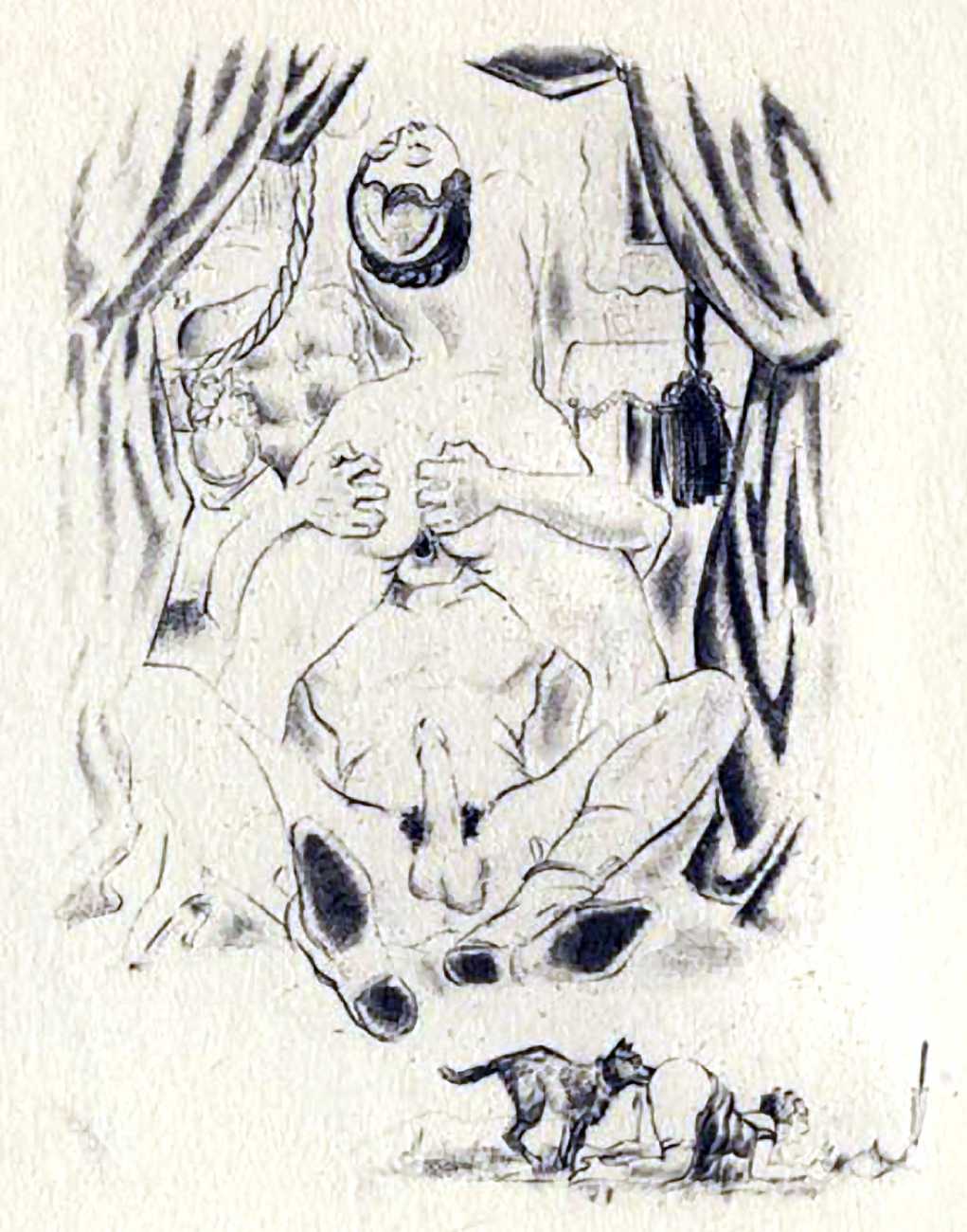 The prolific, original and innovative illustrator André Collot grew up in Montigny-le-Roi in eastern France, moving to Paris in the early 1920s where he studied painting and drawing, and made the acquaintance of the writer and fellow illustrator Pascal Pia (1903–79). Pia, whose real name was the more prosaic Pierre Durand, was already well known for erotic works including Les Princesses de Cythère (1922) and the poetry collection La muse en rut (The Muse on Heat), and he introduced Collot to his publishing circle.