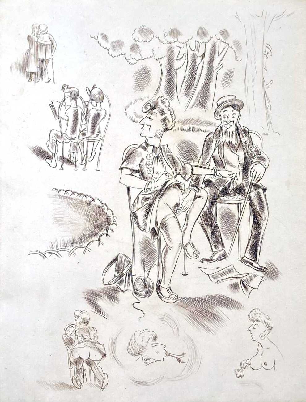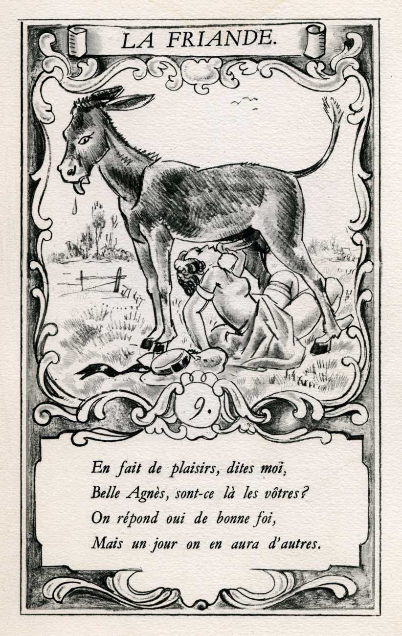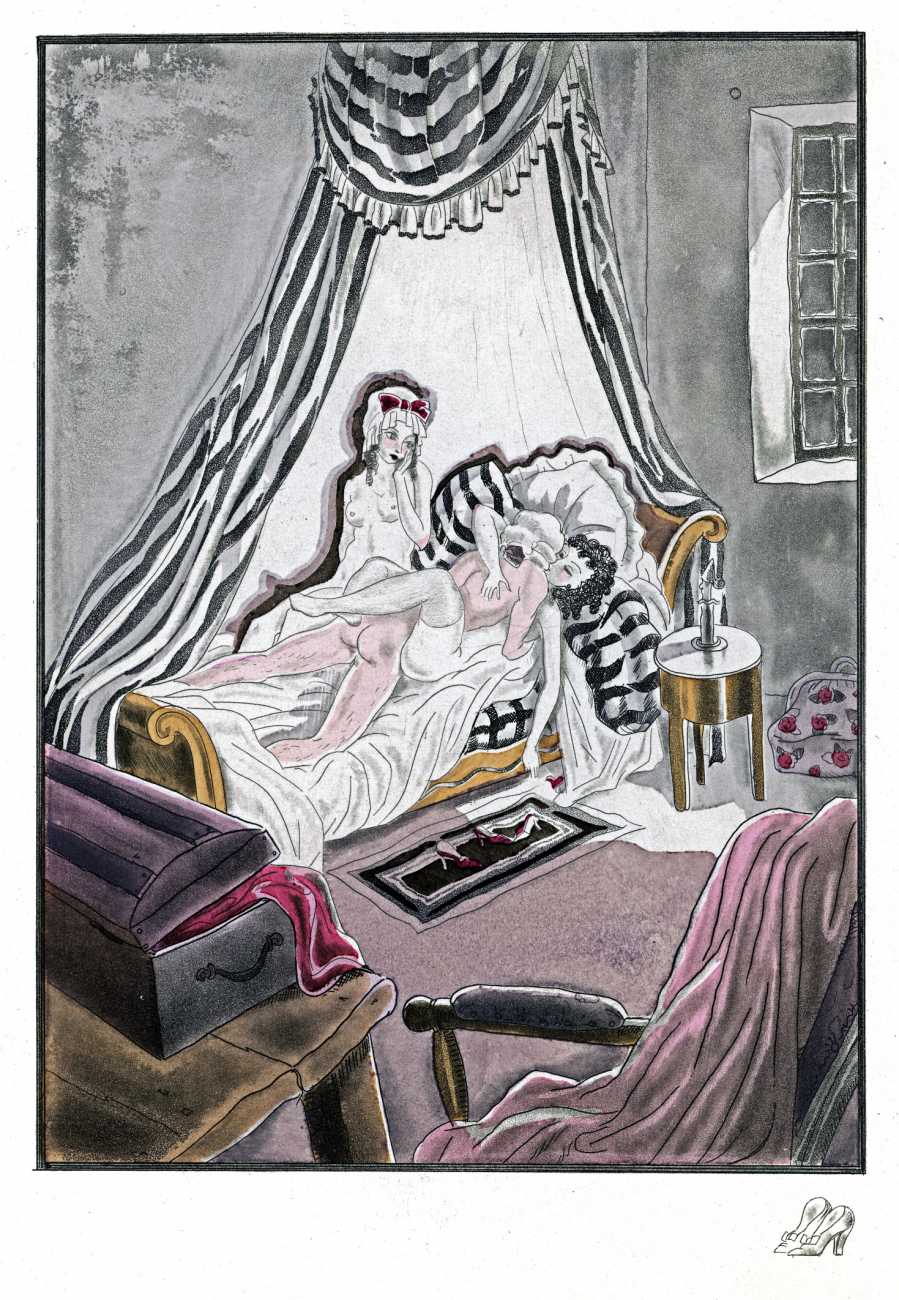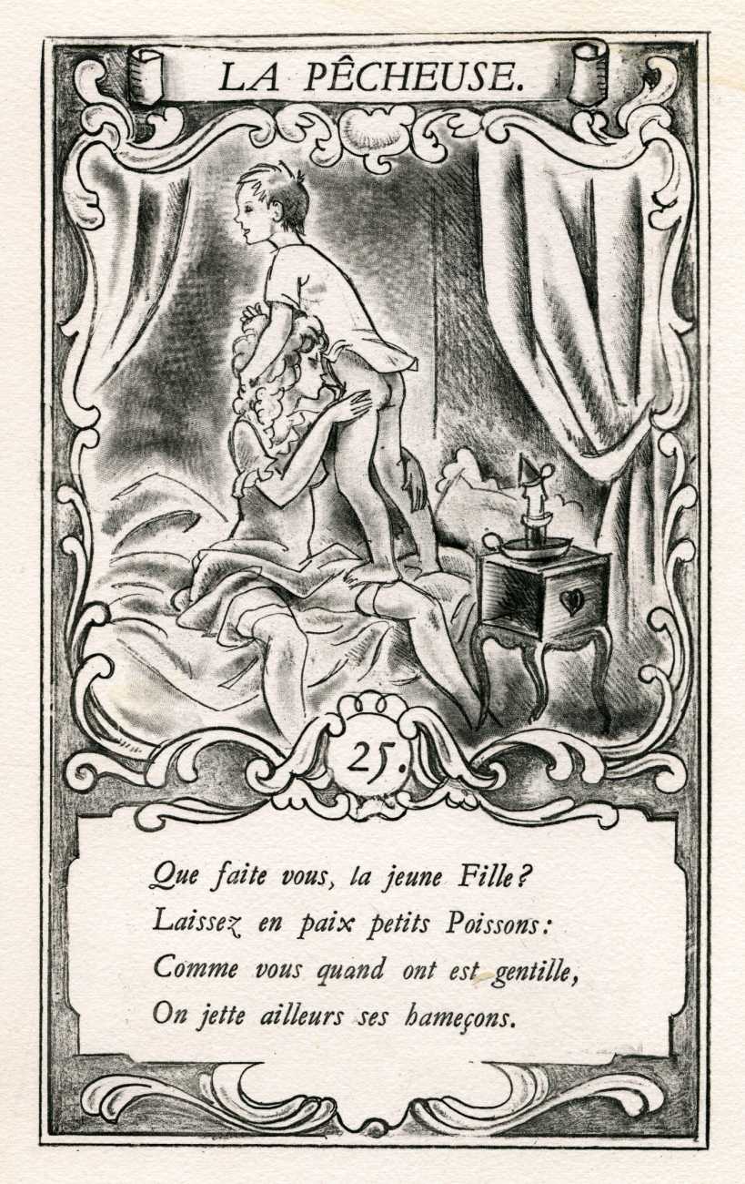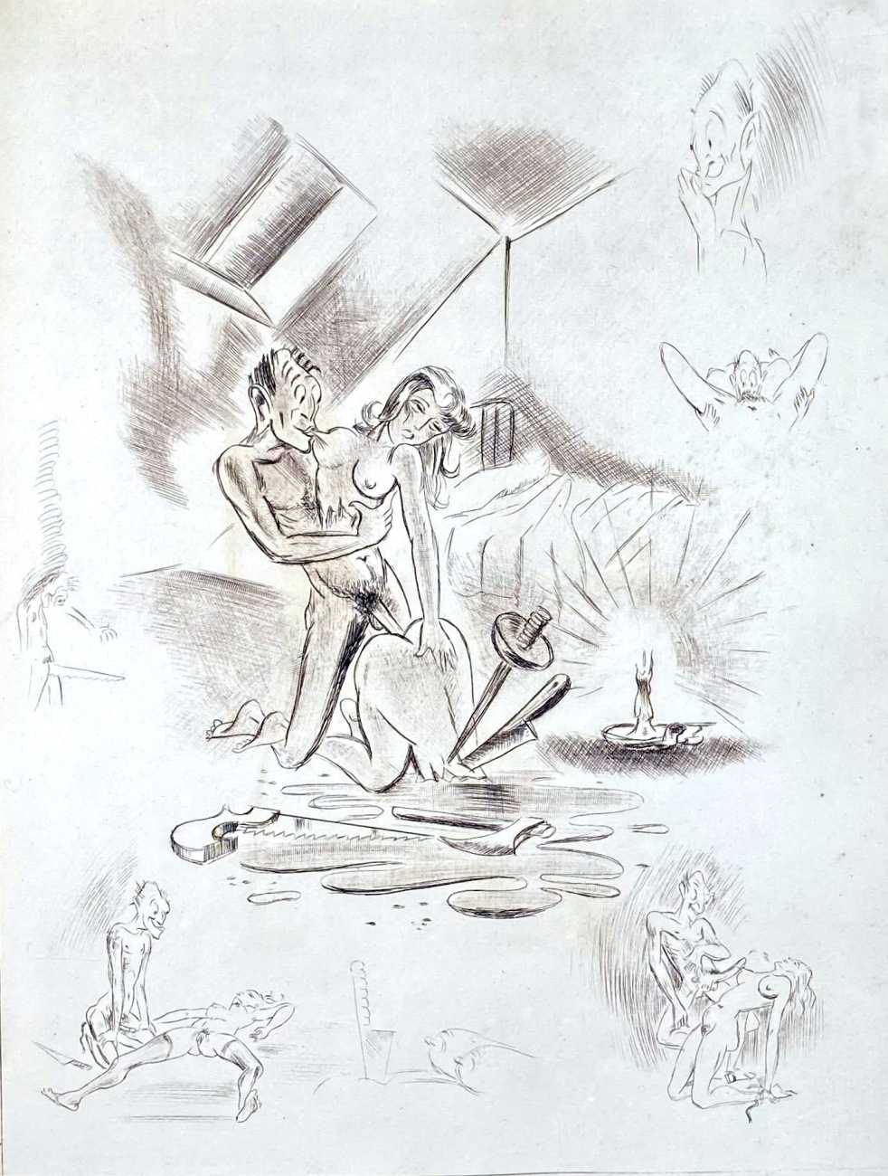 The prolific, original and innovative illustrator André Collot grew up in Montigny-le-Roi in eastern France, moving to Paris in the early 1920s where he studied painting and drawing, and made the acquaintance of the writer and fellow illustrator Pascal Pia (1903–79). Pia, whose real name was the more prosaic Pierre Durand, was already well known for erotic works including Les Princesses de Cythère (1922) and the poetry collection La muse en rut (The Muse on Heat), and he introduced Collot to his publishing circle.