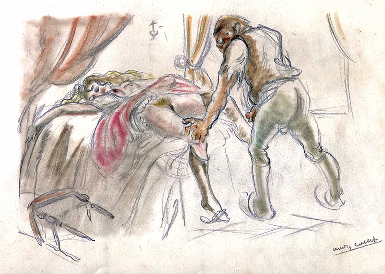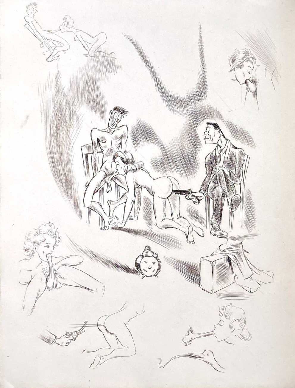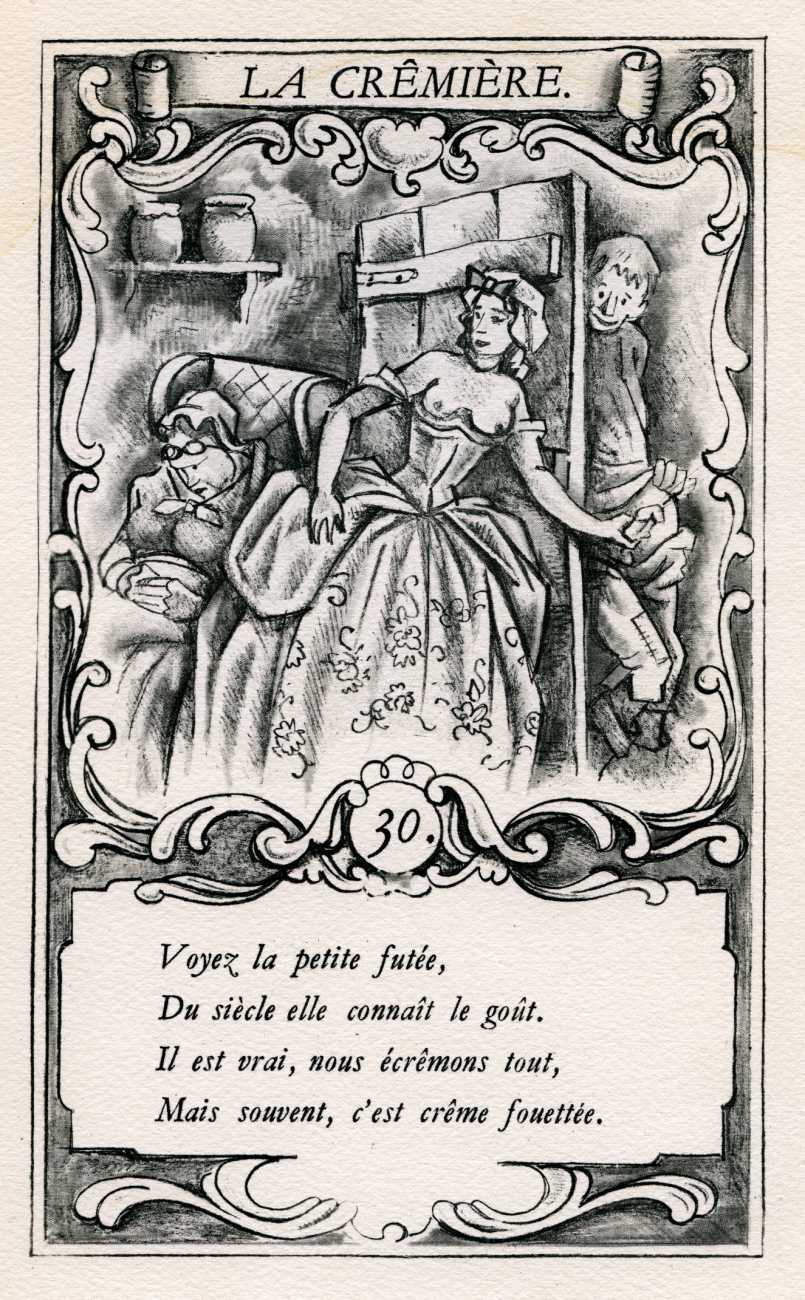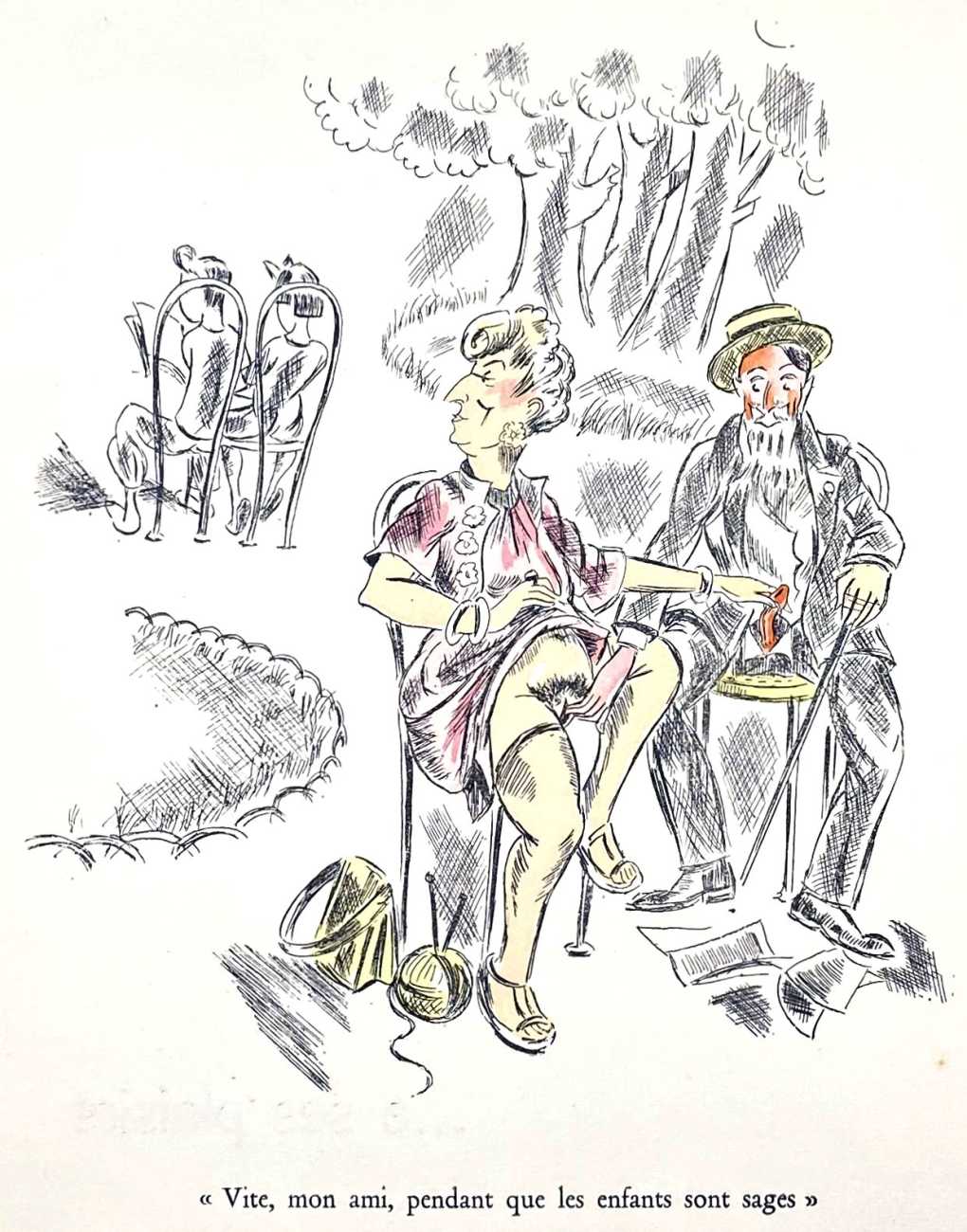 The prolific, original and innovative illustrator André Collot grew up in Montigny-le-Roi in eastern France, moving to Paris in the early 1920s where he studied painting and drawing, and made the acquaintance of the writer and fellow illustrator Pascal Pia (1903–79). Pia, whose real name was the more prosaic Pierre Durand, was already well known for erotic works including Les Princesses de Cythère (1922) and the poetry collection La muse en rut (The Muse on Heat), and he introduced Collot to his publishing circle.
